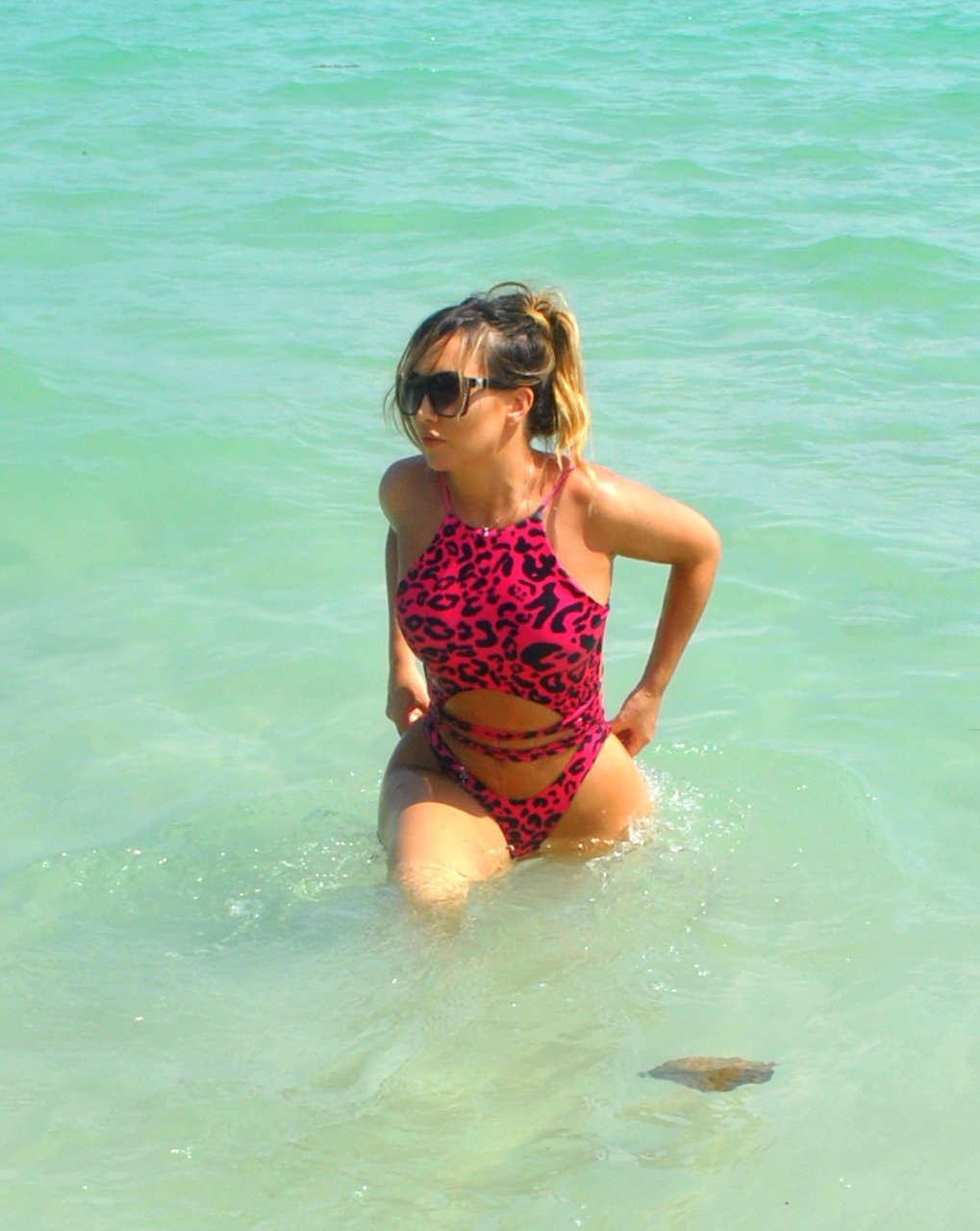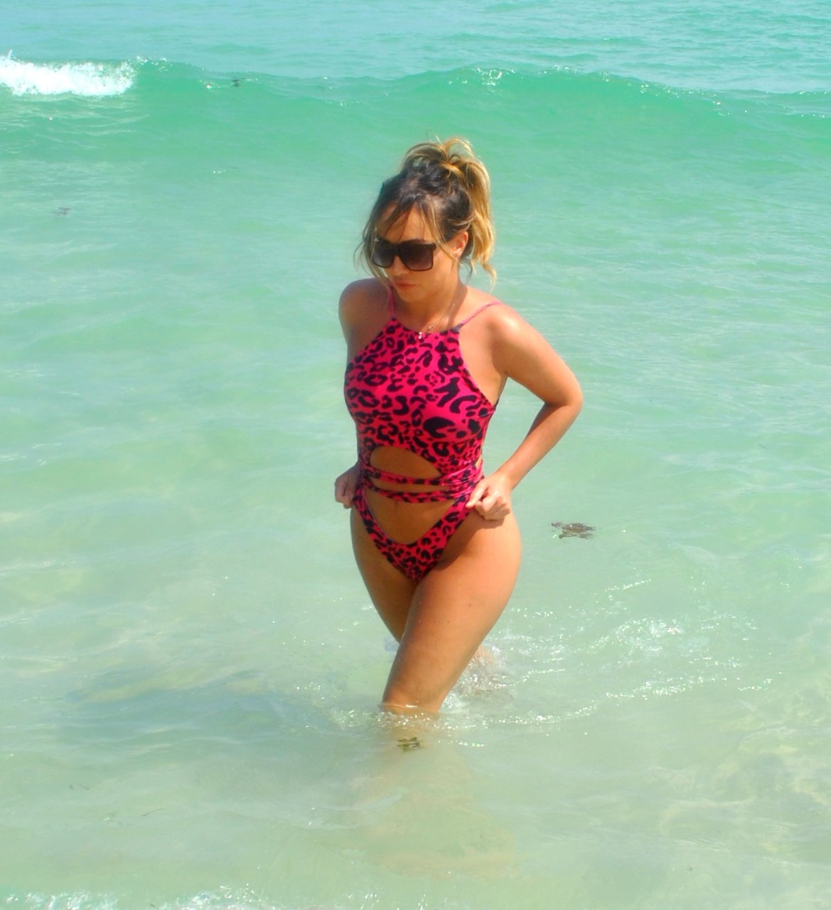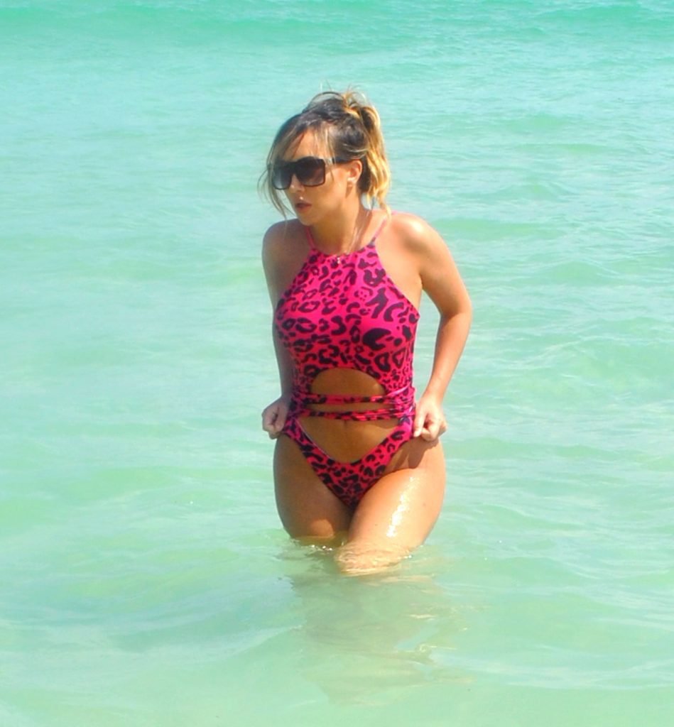 Modella e personaggio televisivo Lauryn Goodman è ritratta mentre si rilassa sulla spiaggia a Capo Verde, 03/05/2018.