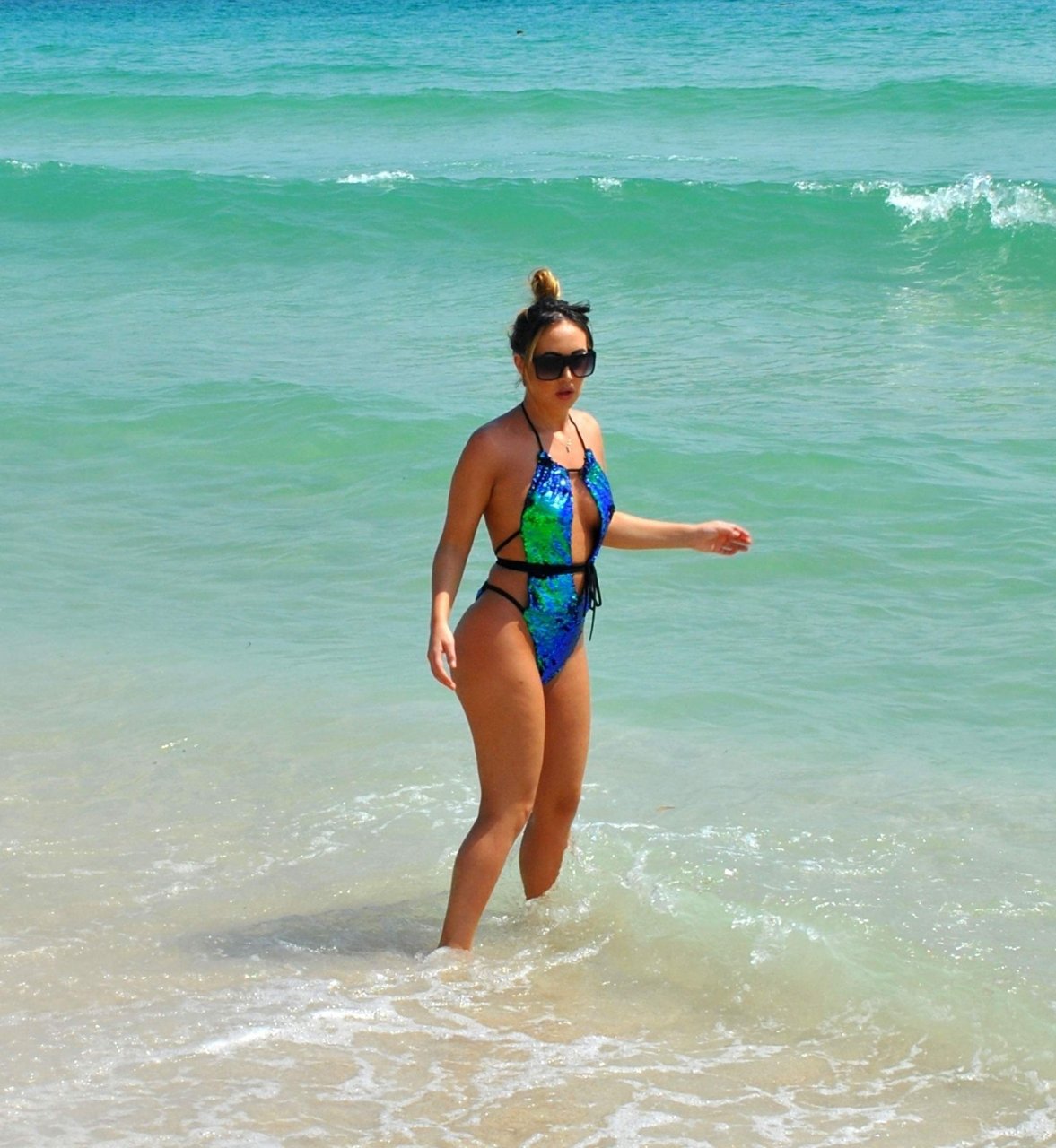 La star della TV Lauryn Goodman si gode la sua vacanza sulla spiaggia a Capo Verde, 02/03/2018.