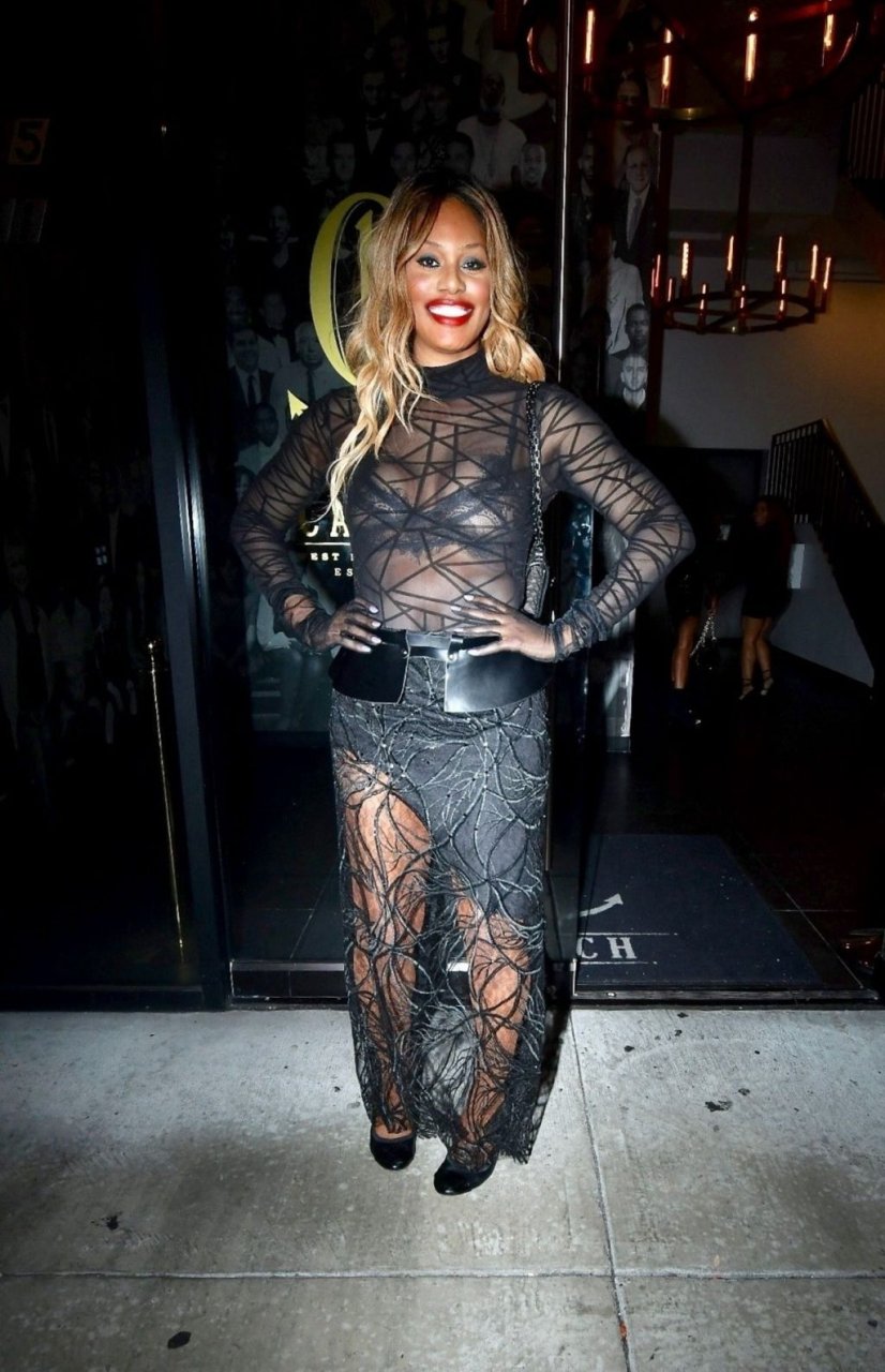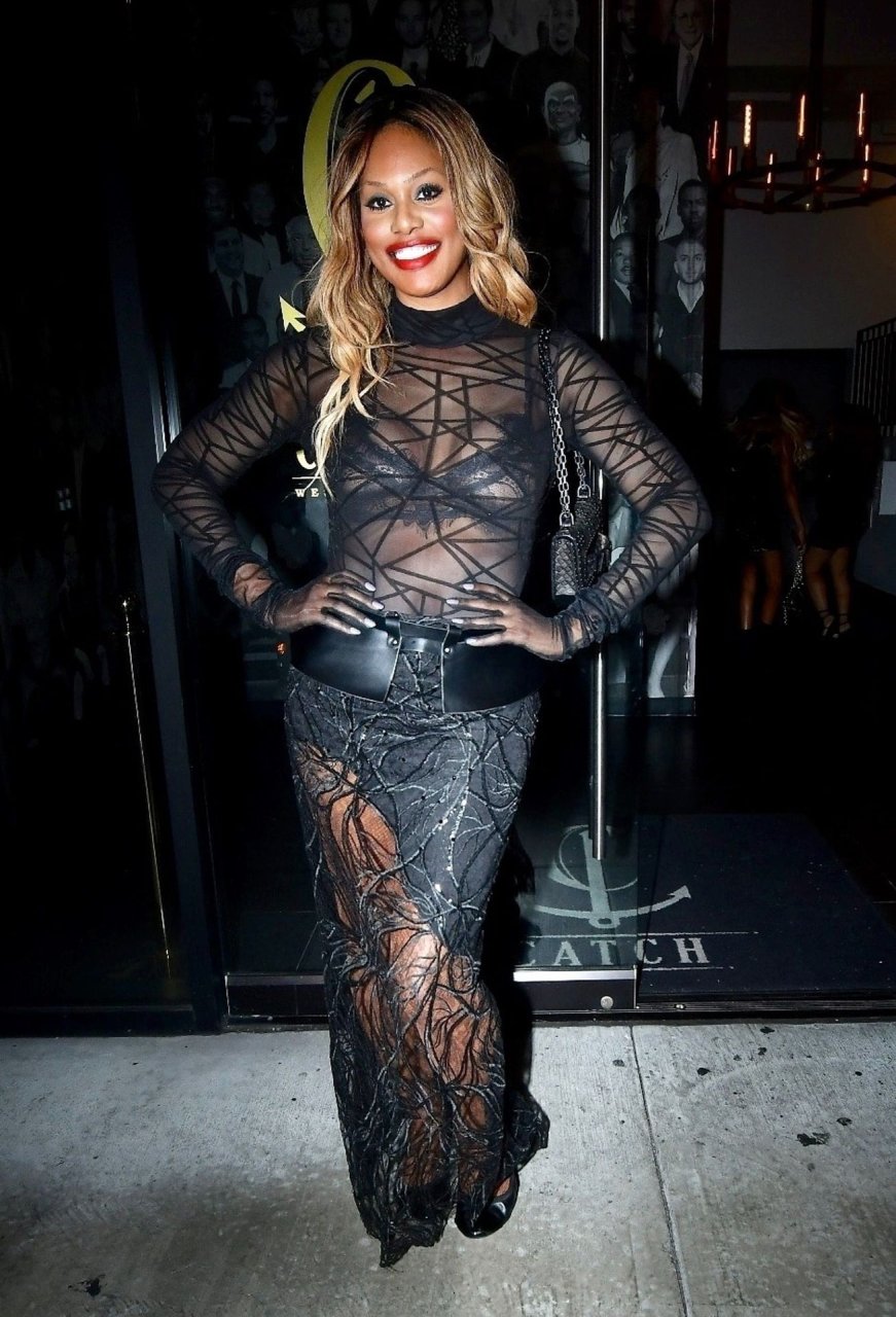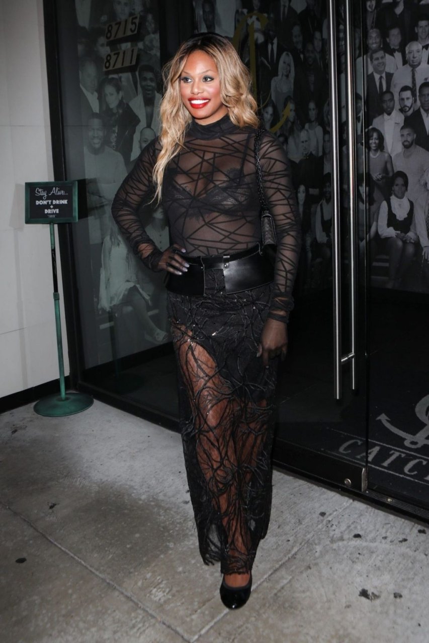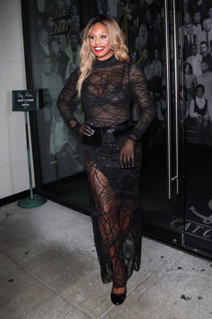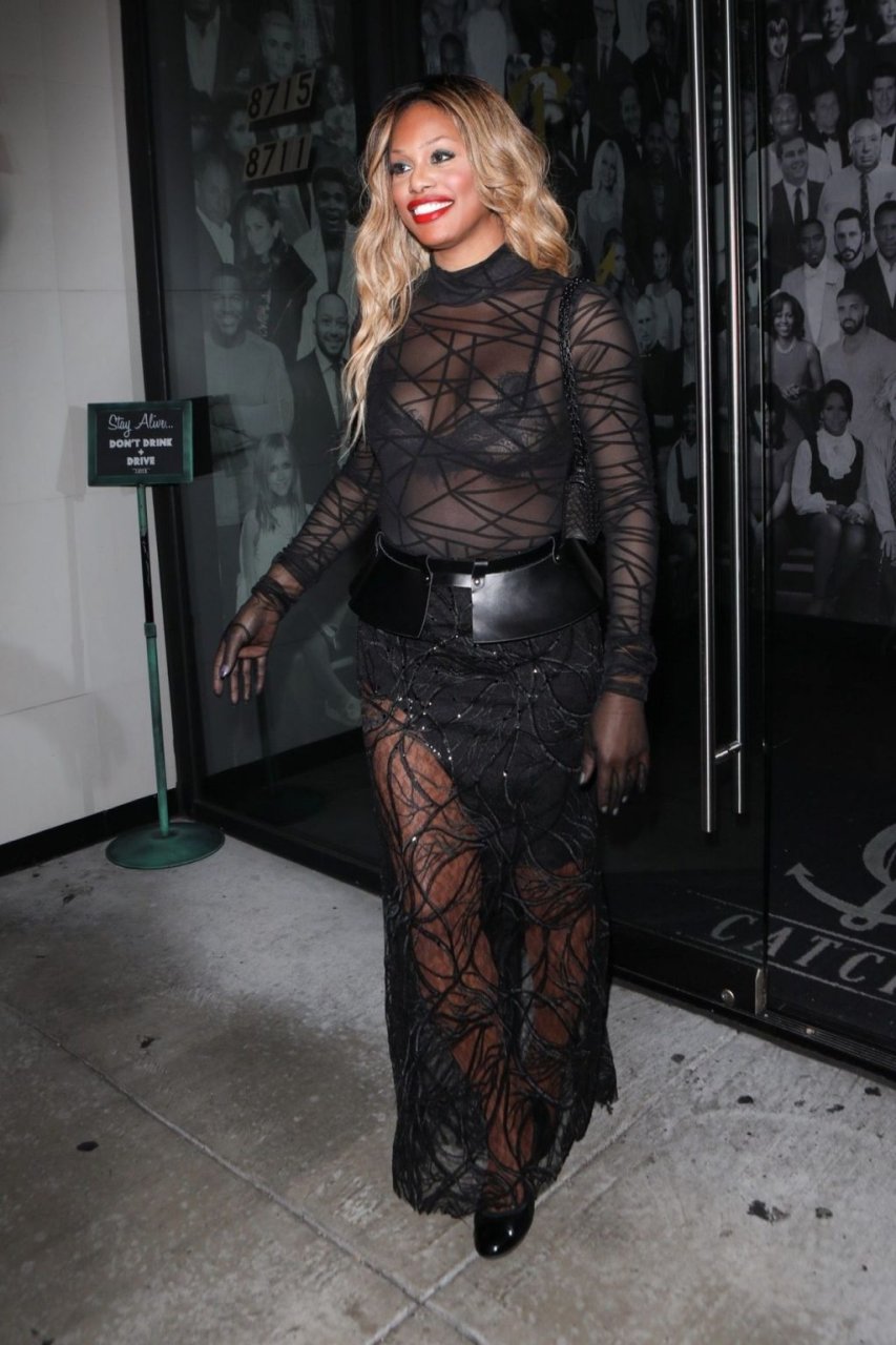 Laverne Cox posa a Catch LA, 22/12/2018. La star di “Orange is the New Black” appare affascinante mentre esce dal locale di WeHo dopo una serata in un outfit nero trasparente.