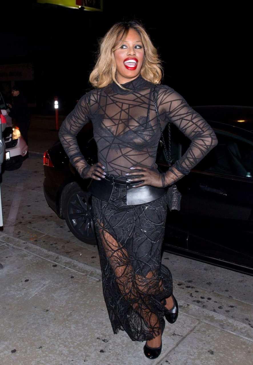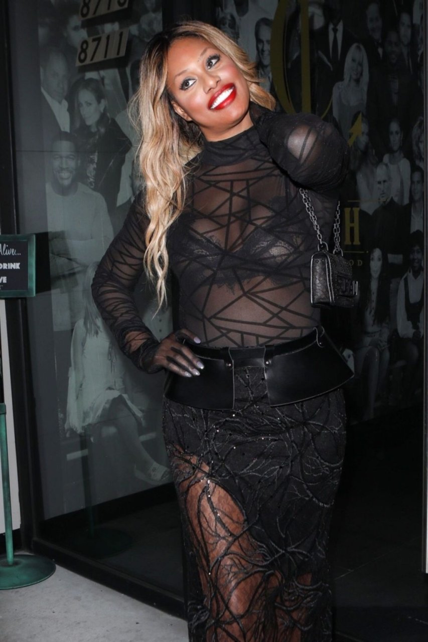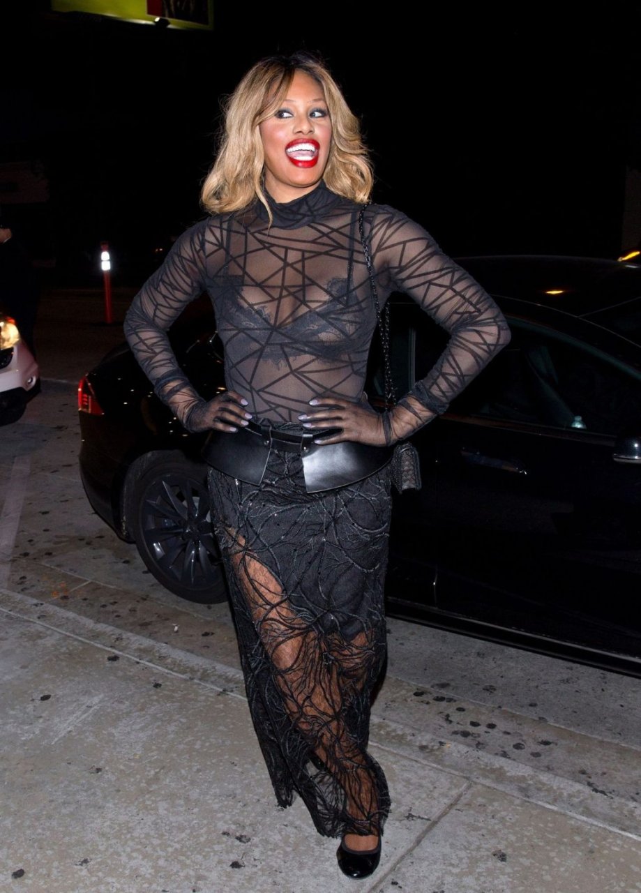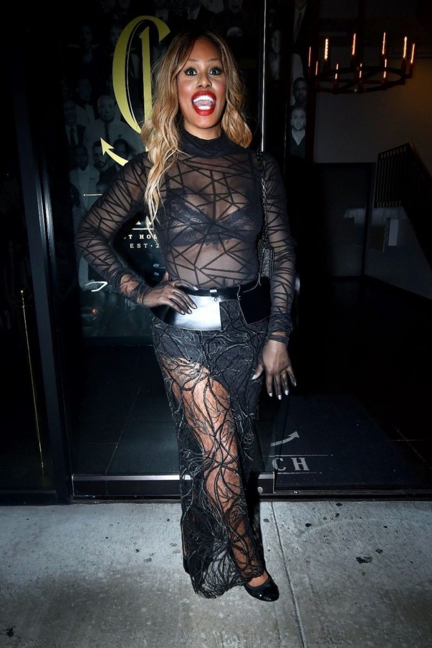 Laverne Cox posa a Catch LA, 22/12/2018. La star di “Orange is the New Black” appare affascinante mentre esce dal locale di WeHo dopo una serata in un outfit nero trasparente.
