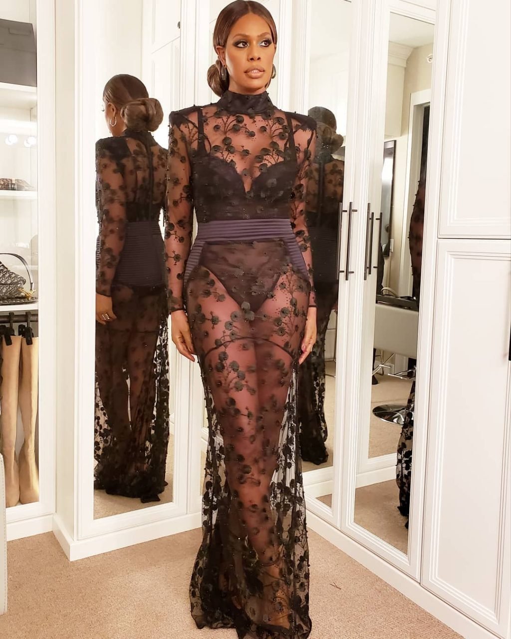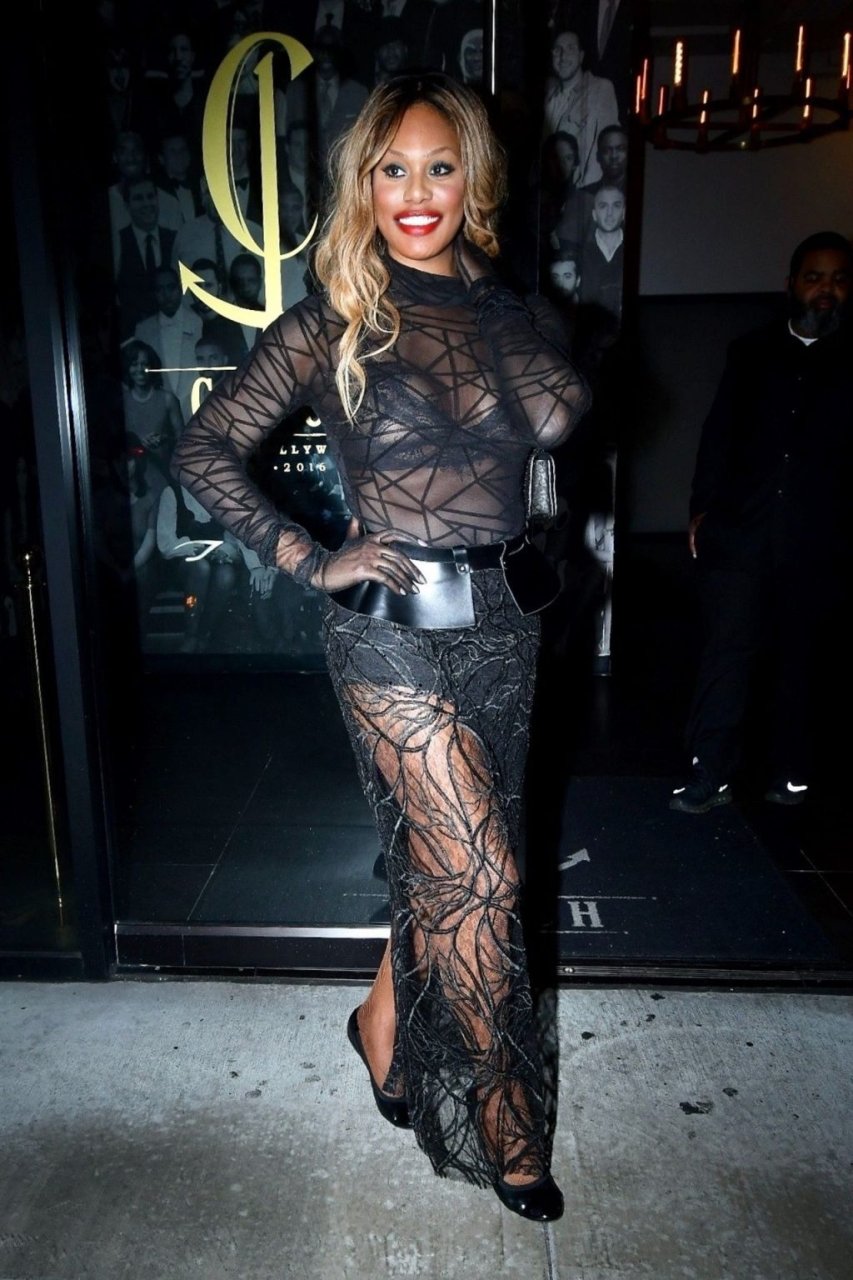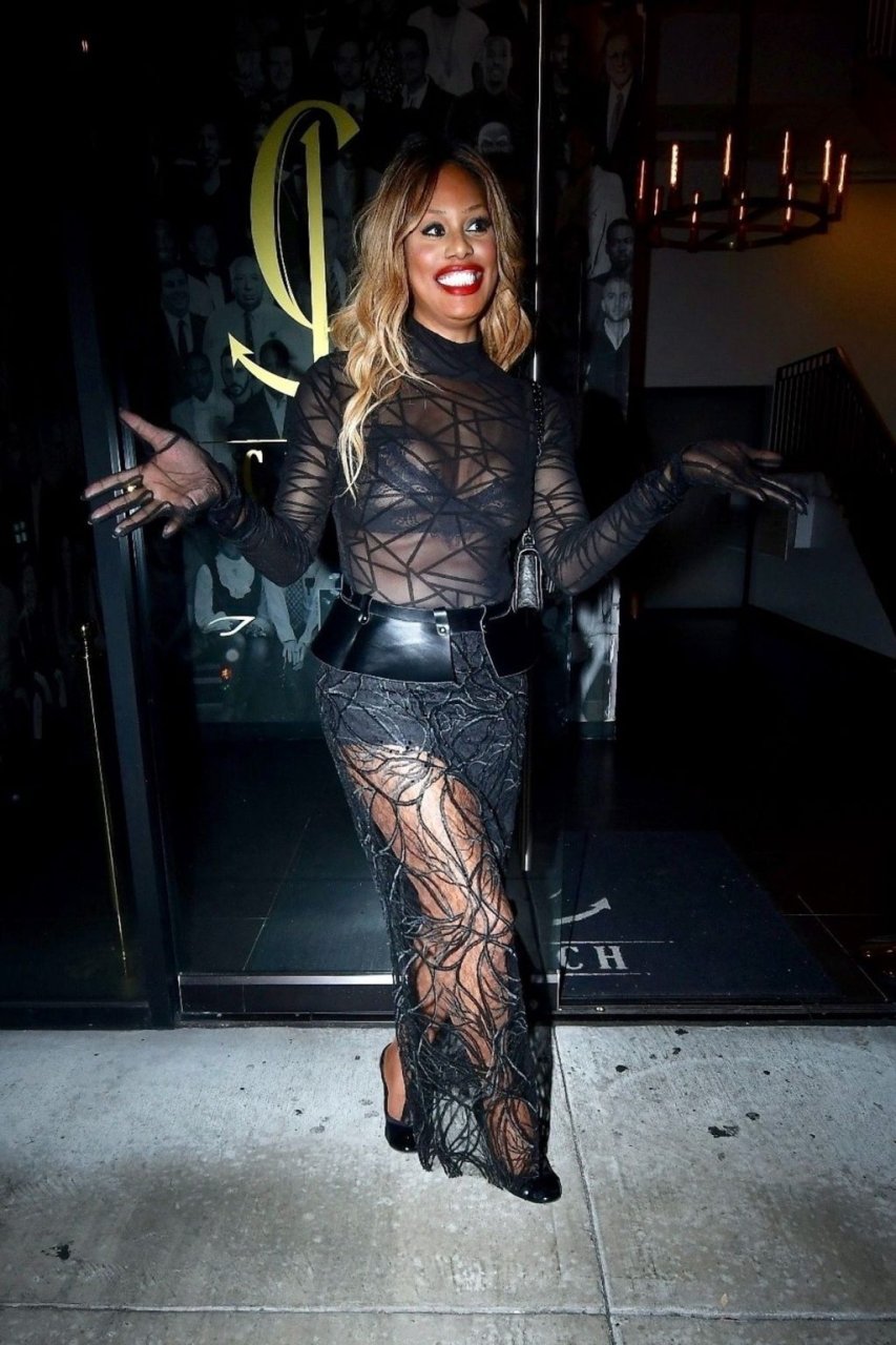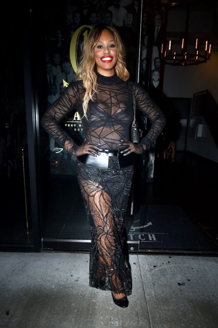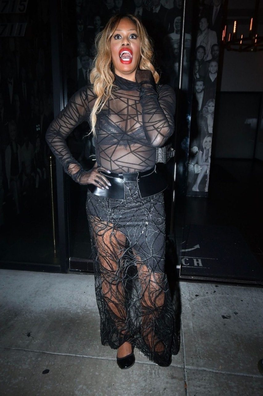 Laverne Cox posa a Catch LA, 22/12/2018. La star di “Orange is the New Black” appare affascinante mentre esce dal locale di WeHo dopo una serata in un outfit nero trasparente.