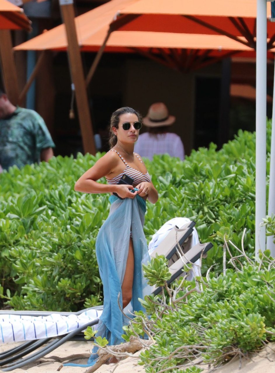 Lea Michele è stata vista mentre faceva una nuotata nell’oceano alle Hawaii, 07/08/2019. L’attrice di 32 anni ha poi goduto un po’ di sole indossando un cappello di paglia insieme a un bikini a due pezzi a righe arancioni e bianche.