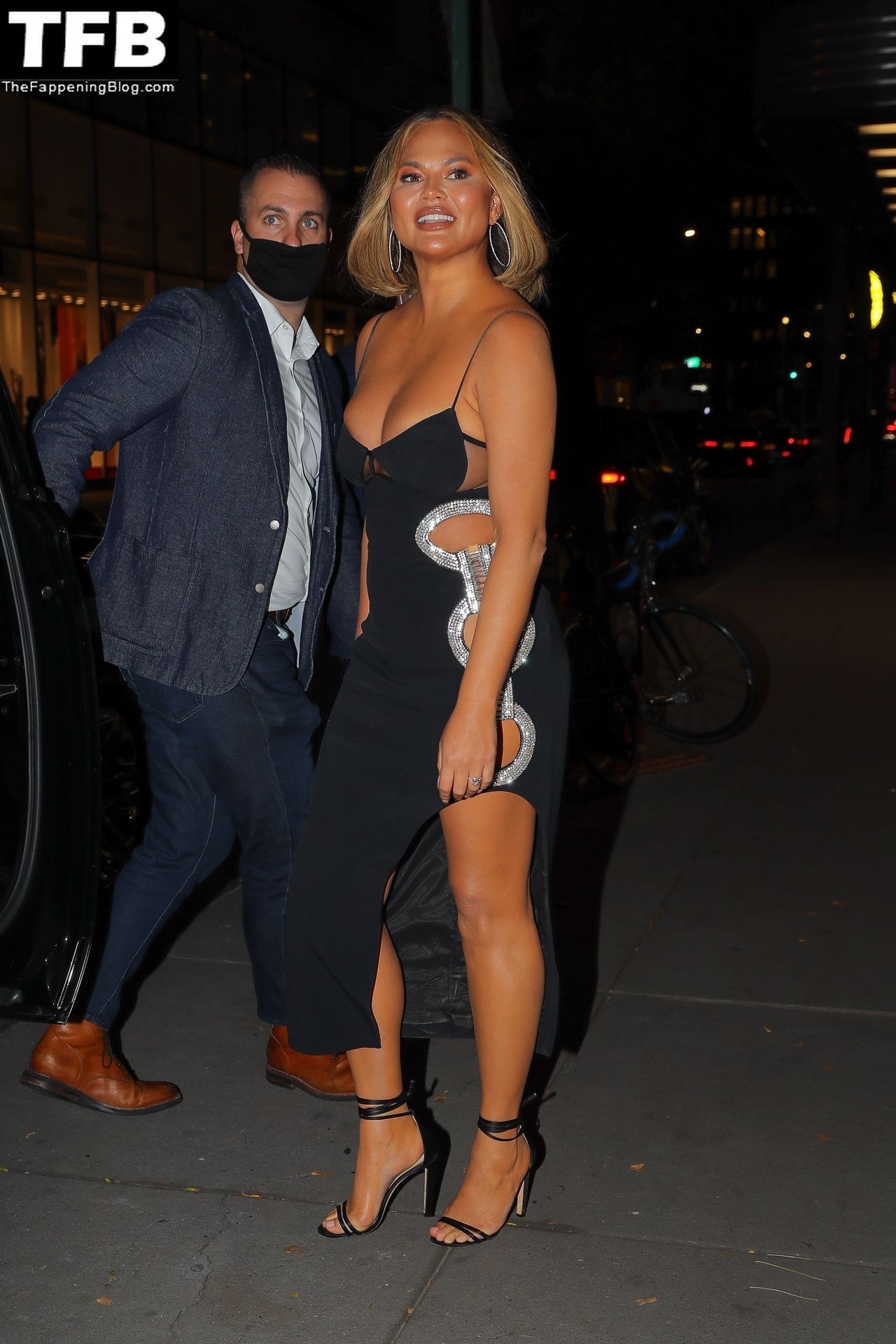 Chrissy Teigen, gambe lunghe e seno prosperoso, vista mentre lascia la cena con amici al ristorante Le Bernardin (57 foto)