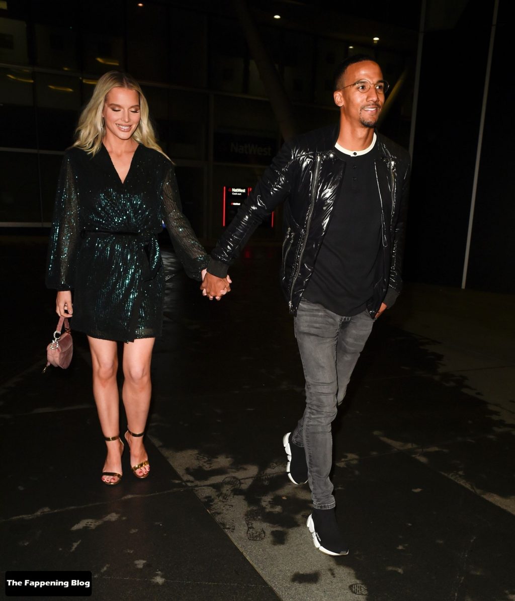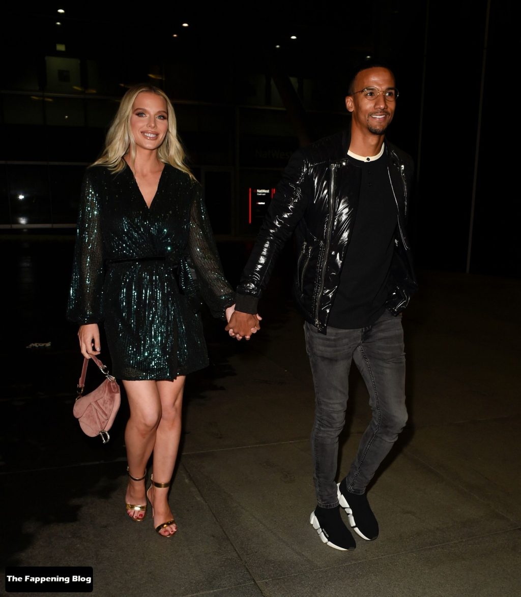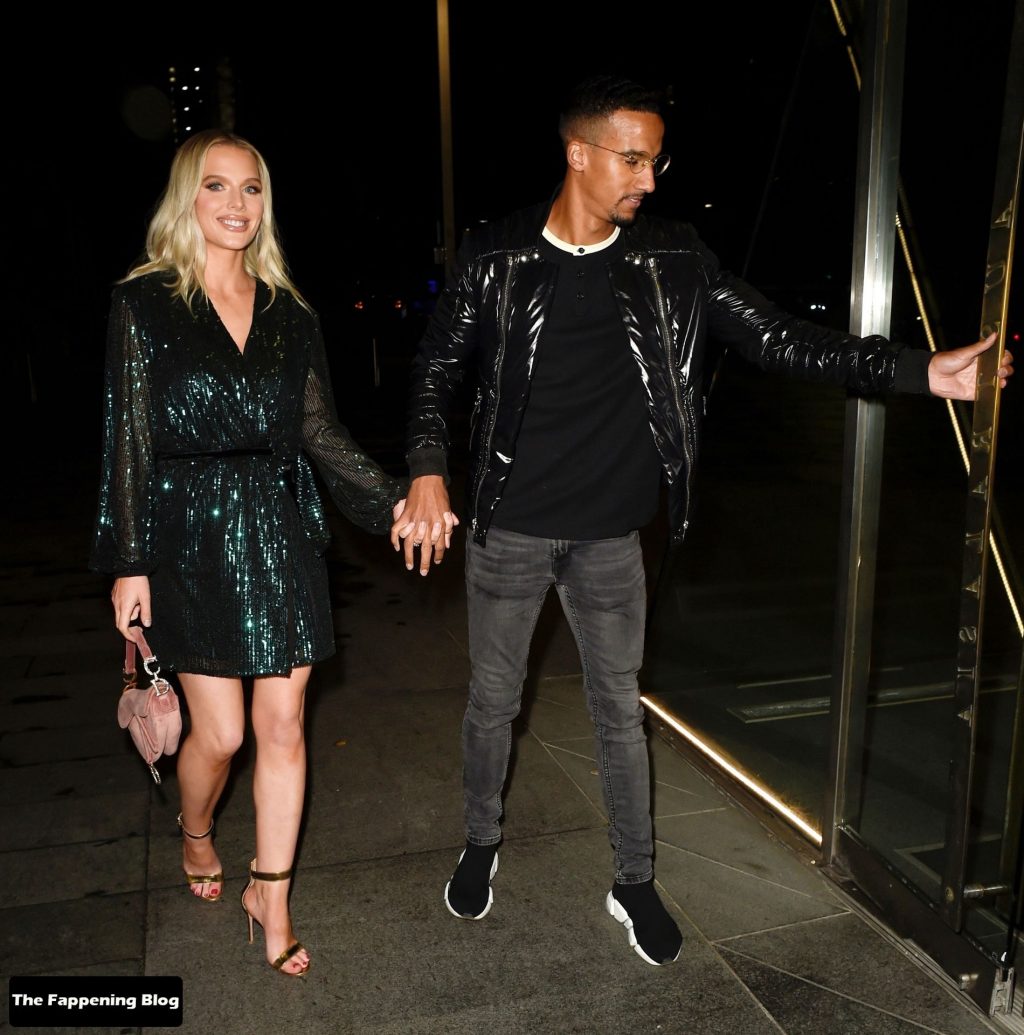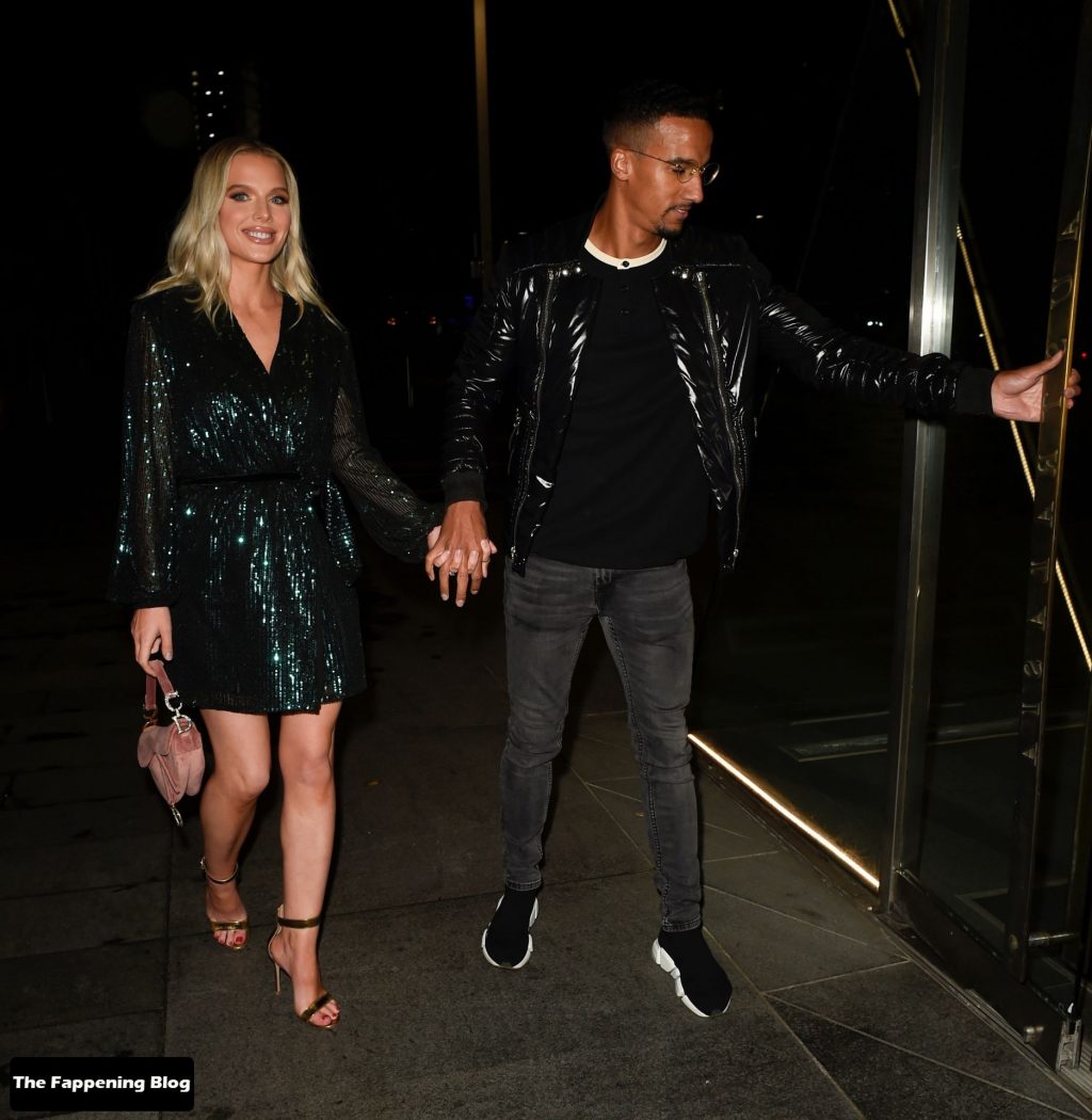 Helen Flanagan sfoggia le sue gambe lunghe mentre si gode una serata romantica con il suo fidanzato, il calciatore Scott Sinclair, all’Australasia di Manchester, 10/09/2021.