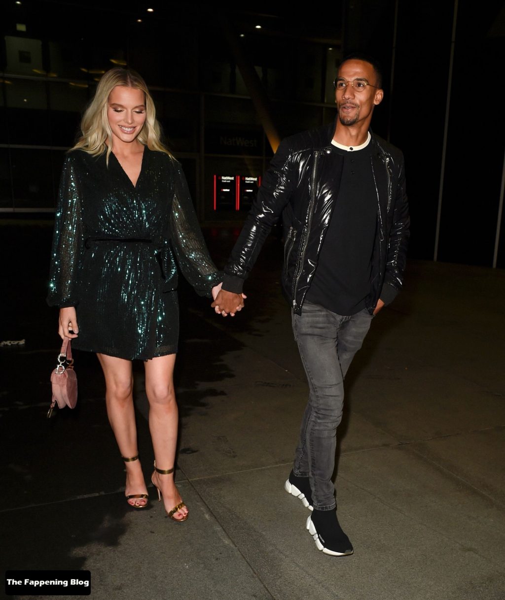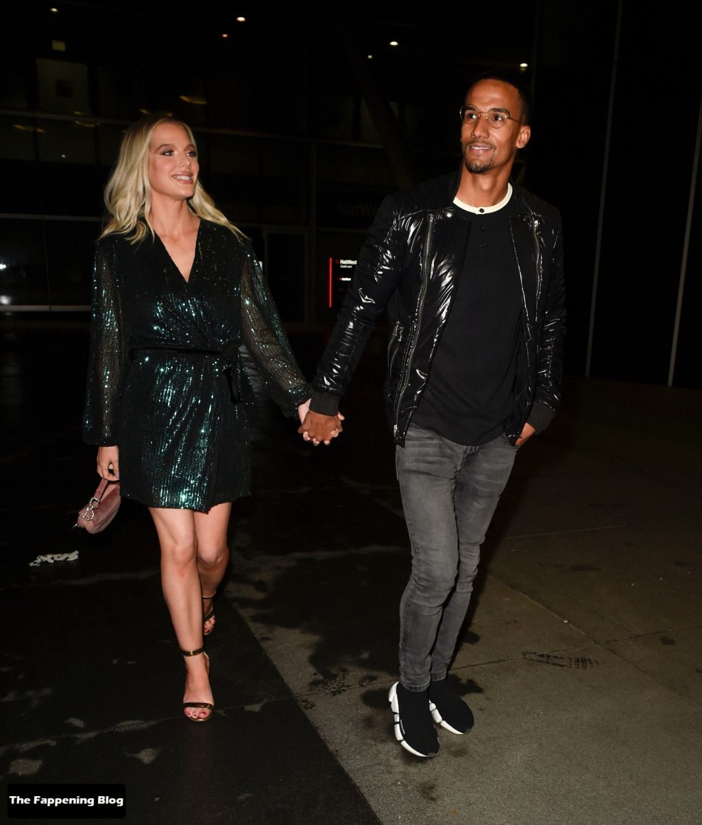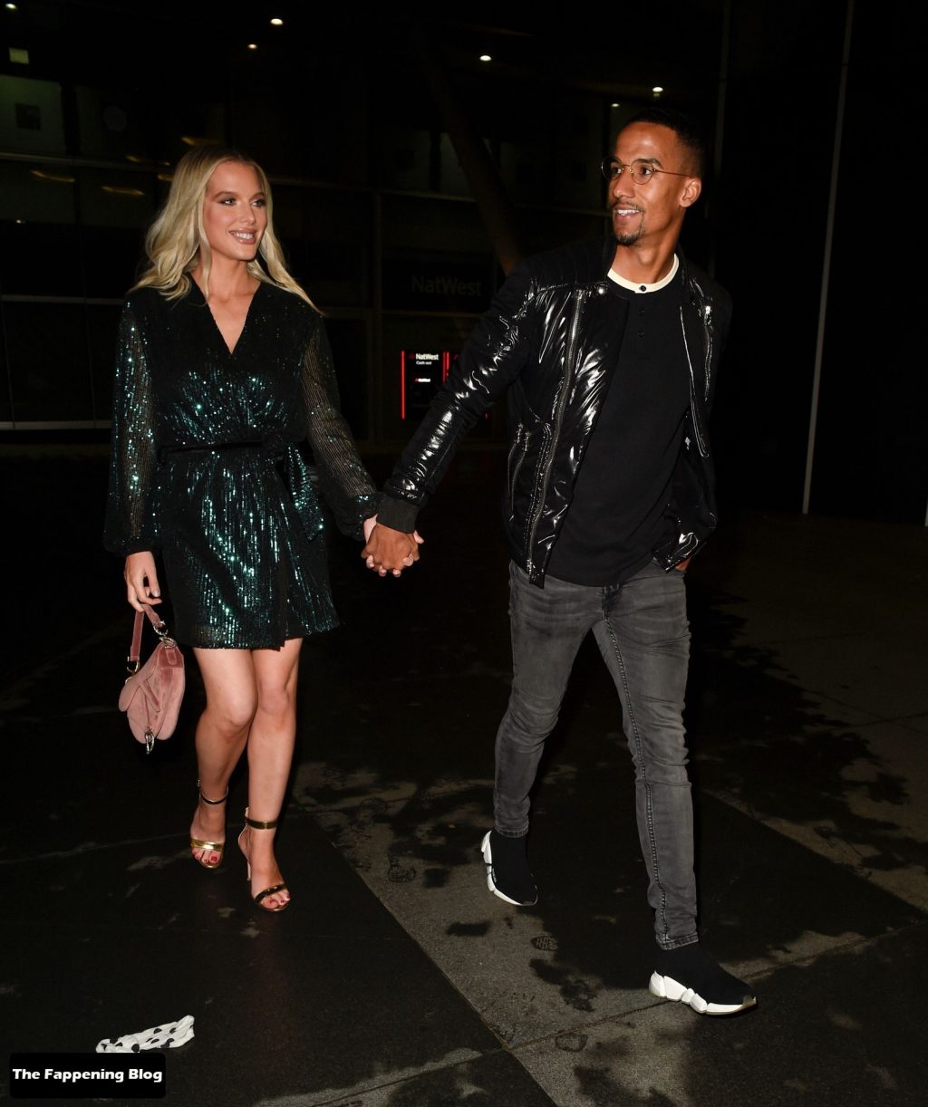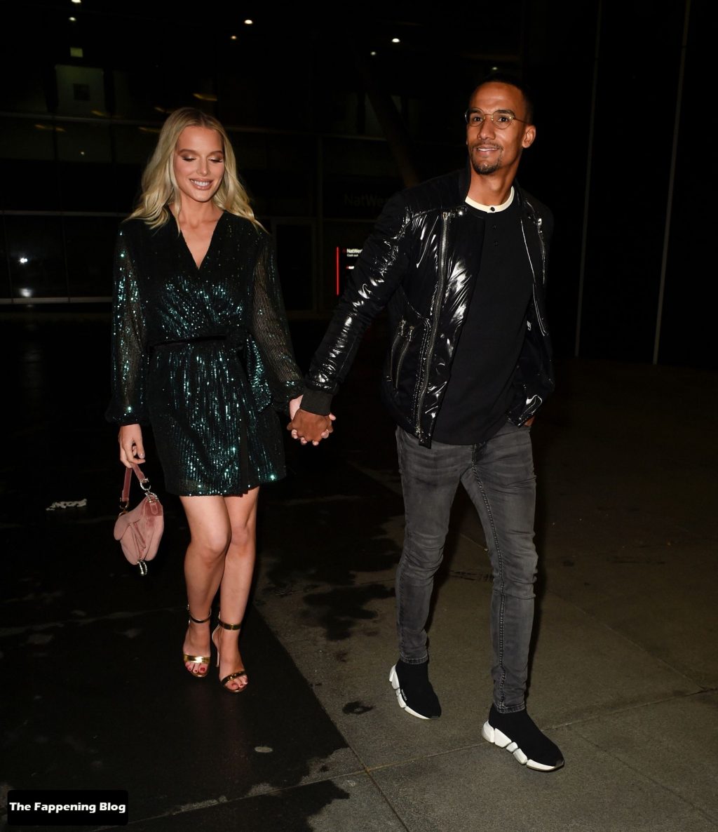 Helen Flanagan sfoggia le sue gambe lunghe mentre si gode una serata romantica con il suo fidanzato, il calciatore Scott Sinclair, all’Australasia di Manchester, 10/09/2021.