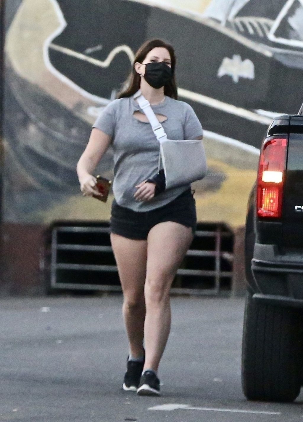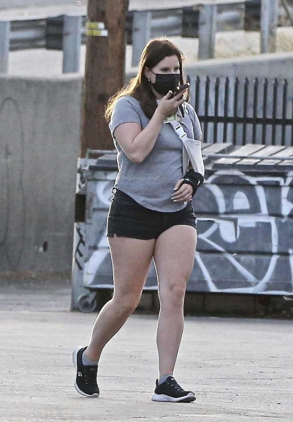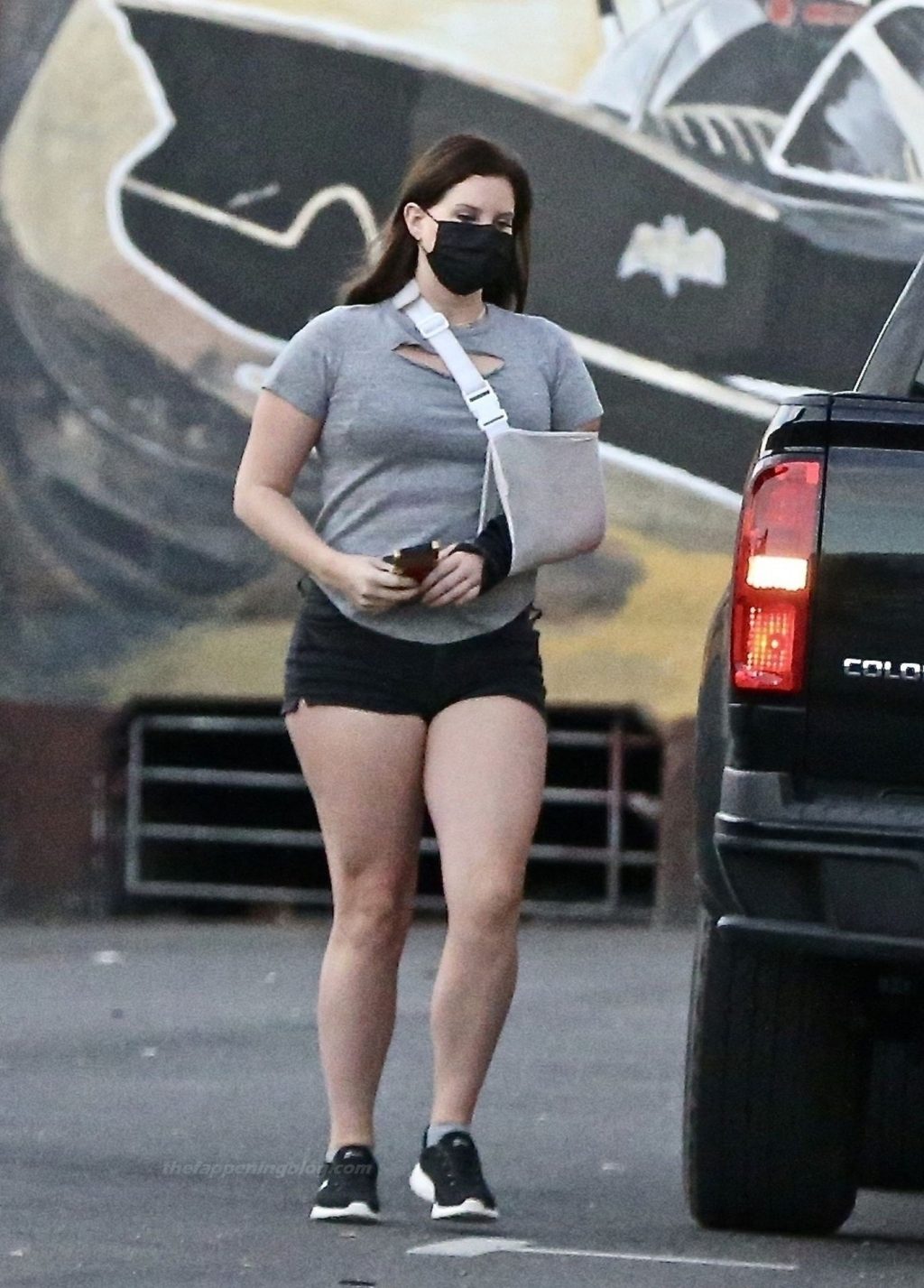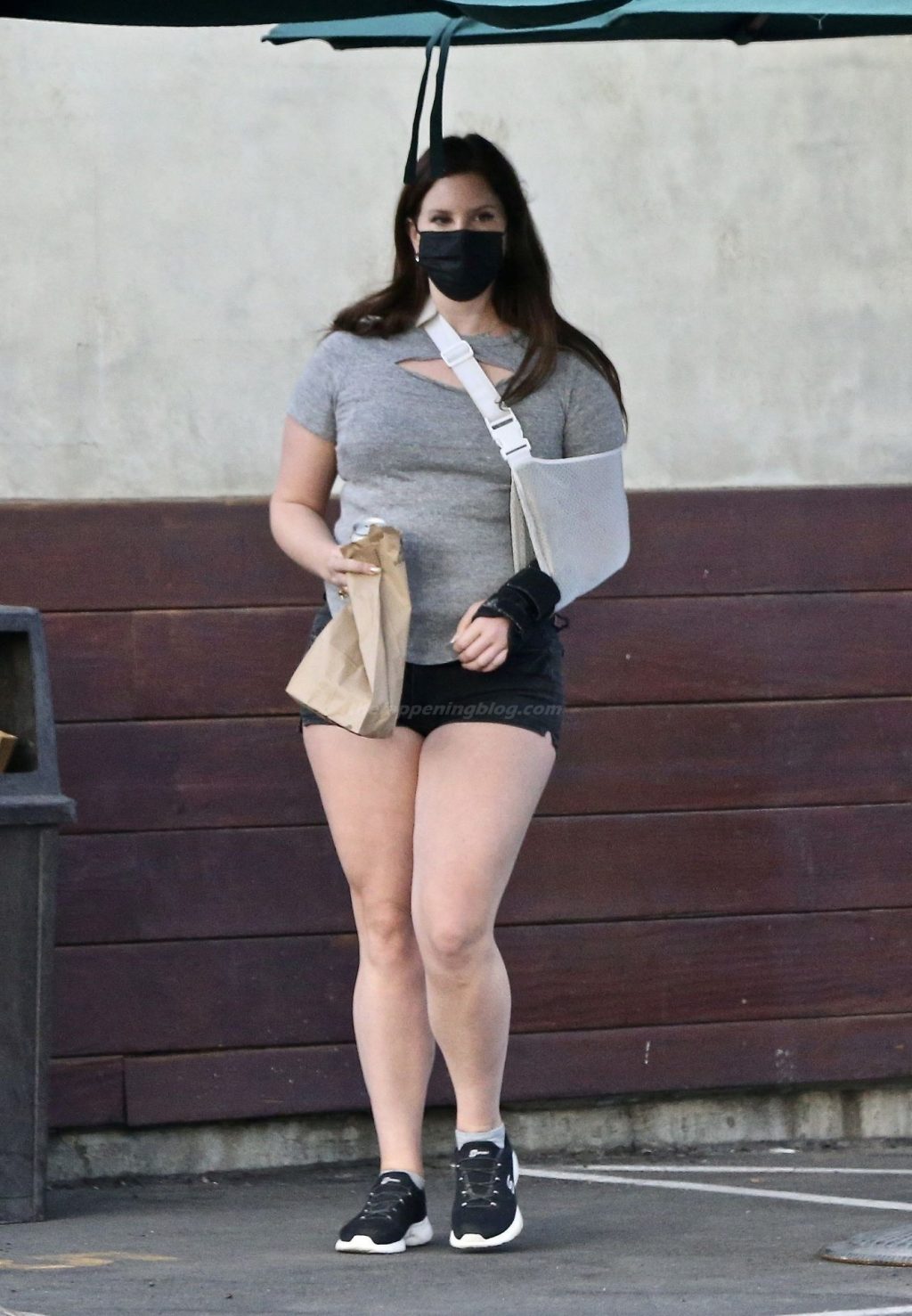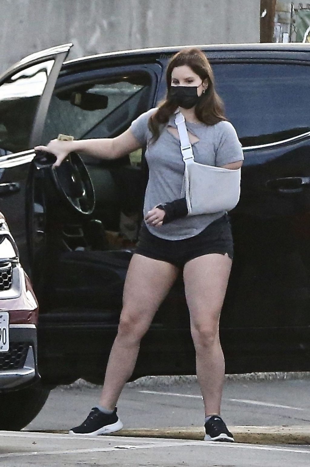 La cantante Lana Del Rey è stata vista fare una sosta da Hugo’s Tacos oggi per prendere un boccone prima di recarsi alla ProHealth Clinic per una visita, presumibilmente per prendersi cura del suo braccio infortunato con un tutore.