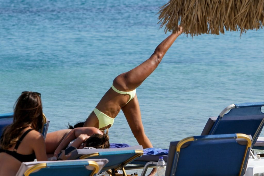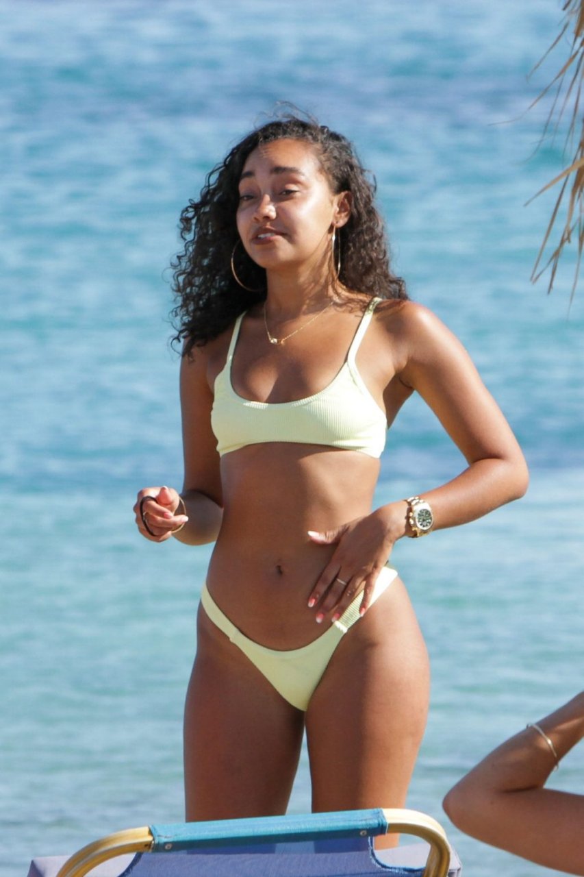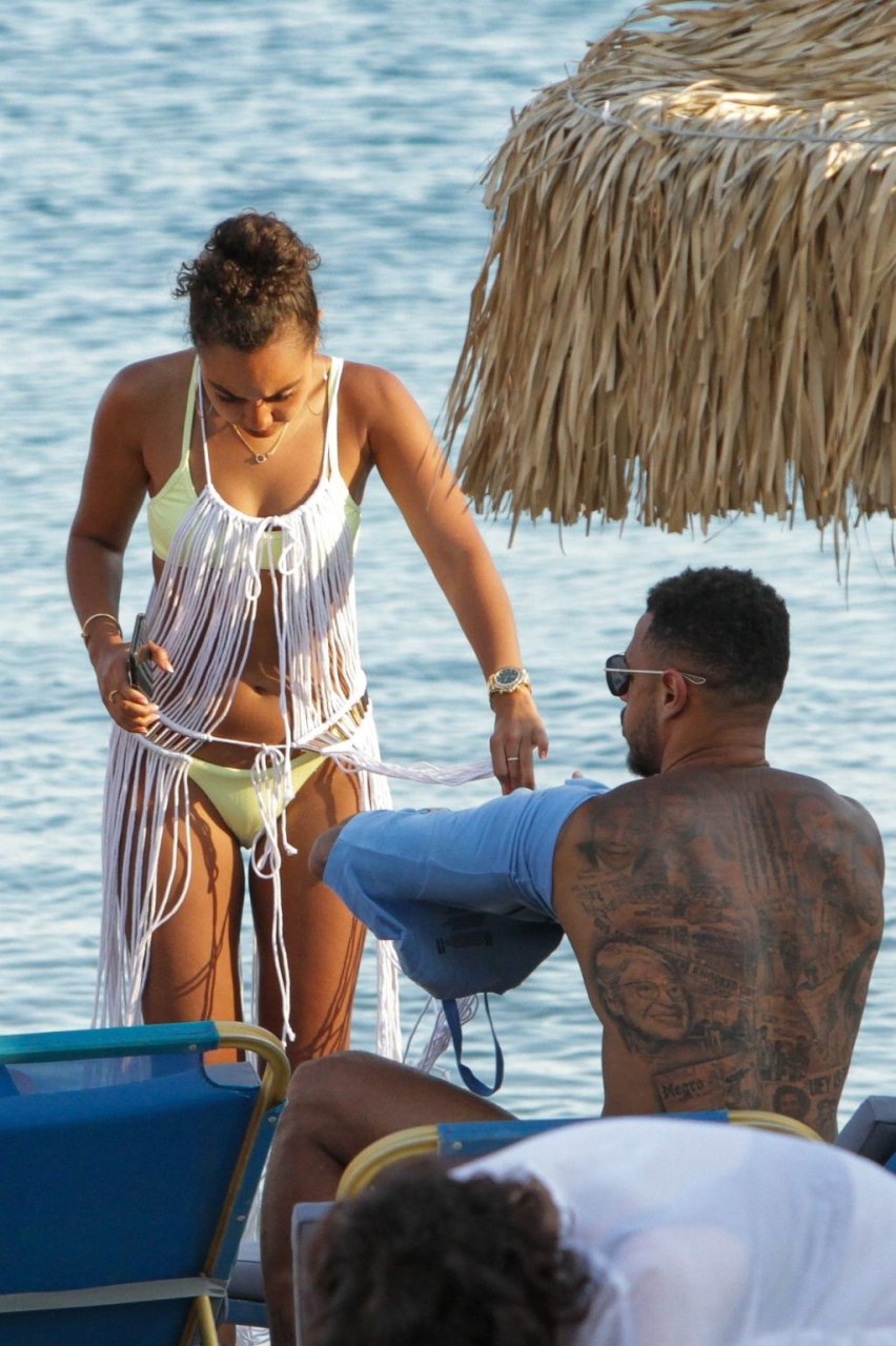 Leigh-Anne Pinnock è stata vista in bikini giallo con il fidanzato Andre Grey sulla spiaggia dell’isola di Mykonos, Grecia, 08/06/2019.