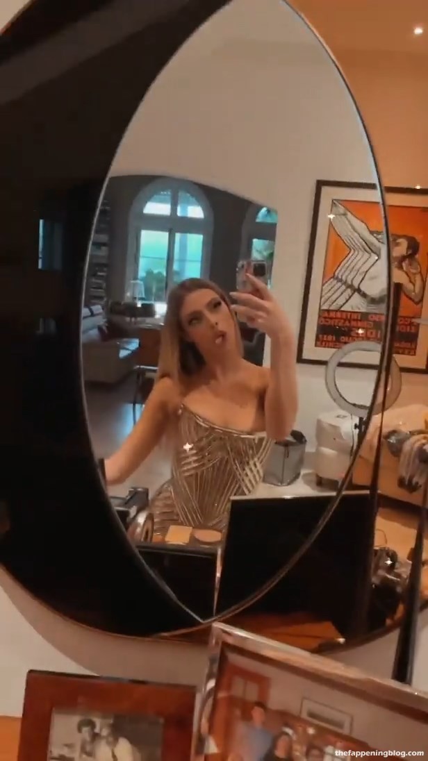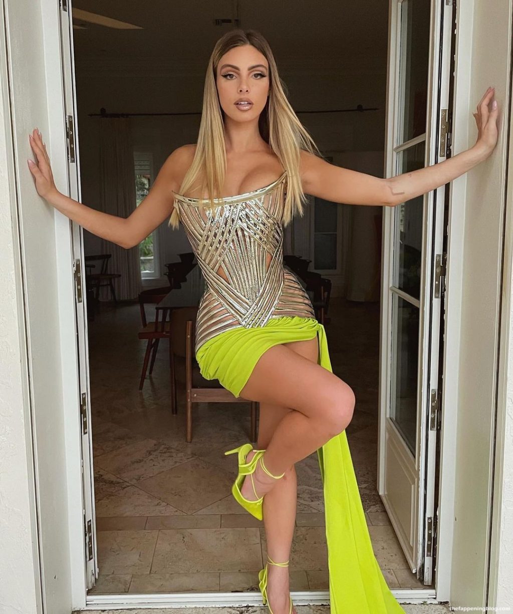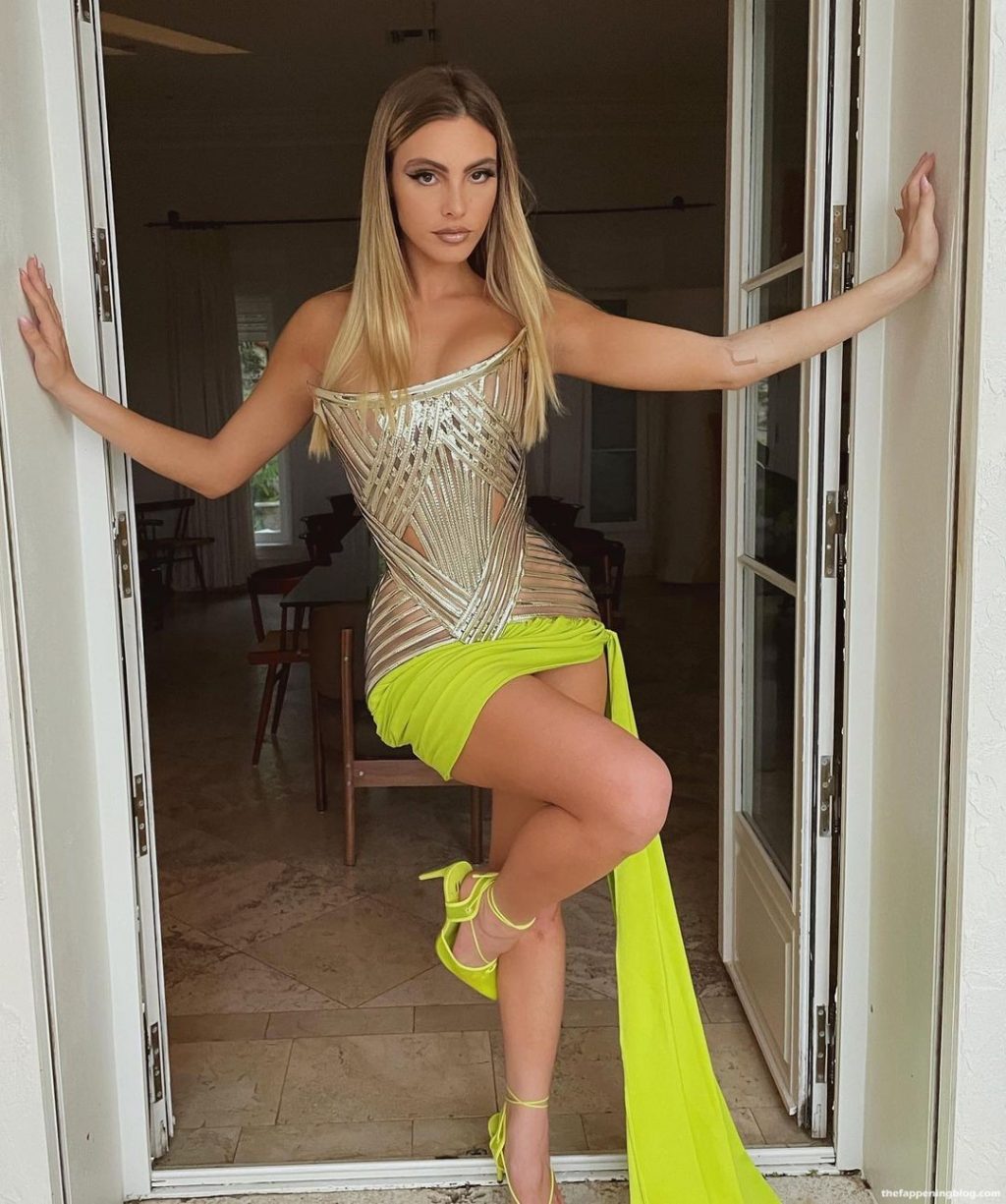 La star dei social media Lele Pons mostra un bel décolleté e capezzoli, indossando un bellissimo vestito di Lena Berisha – Instagram, 24/07/2021.