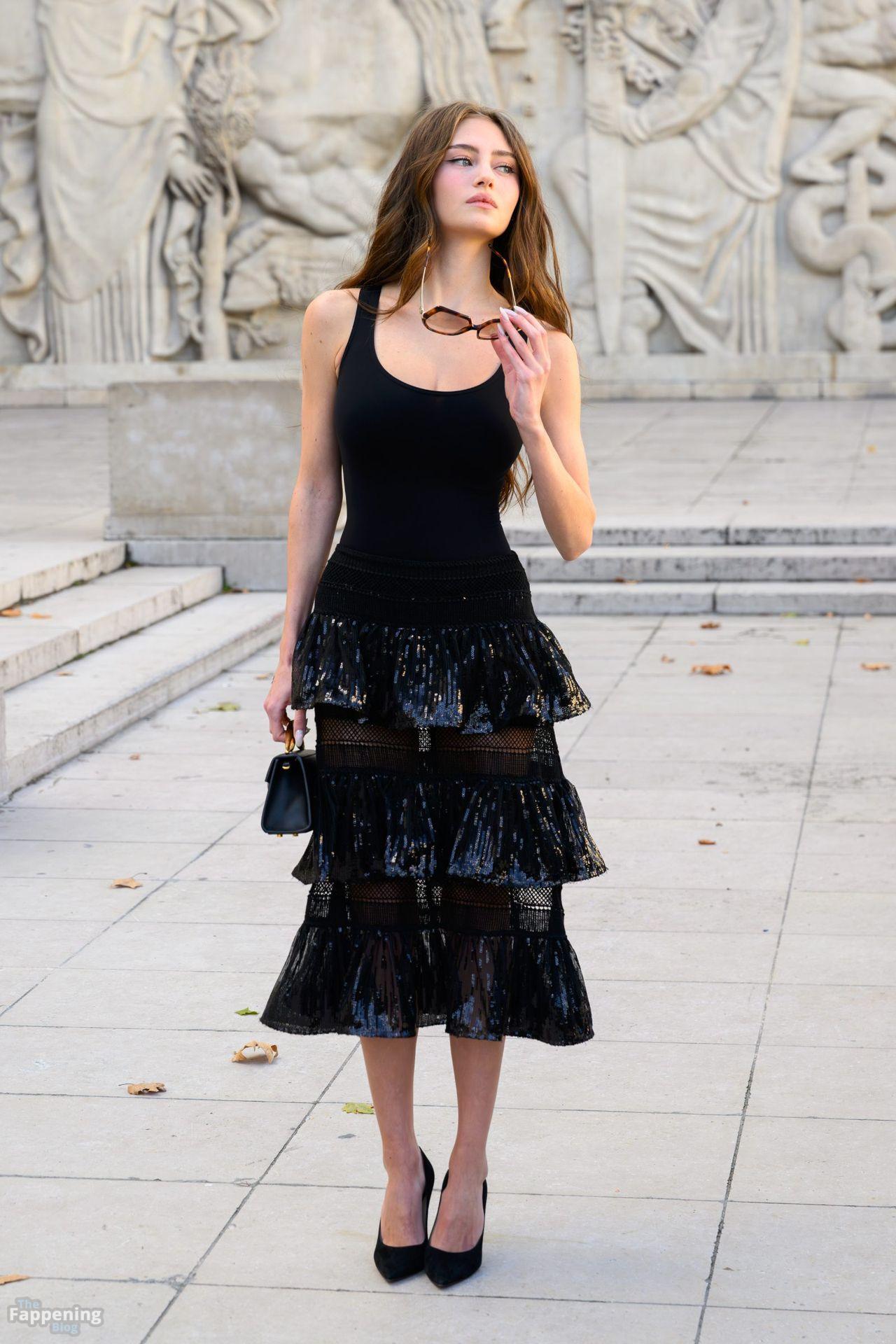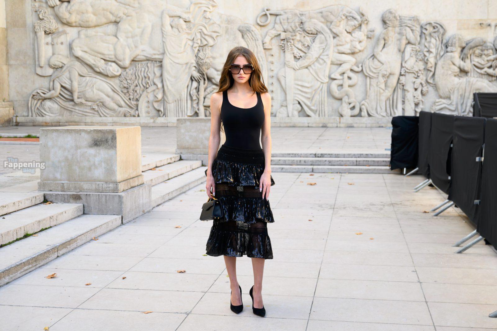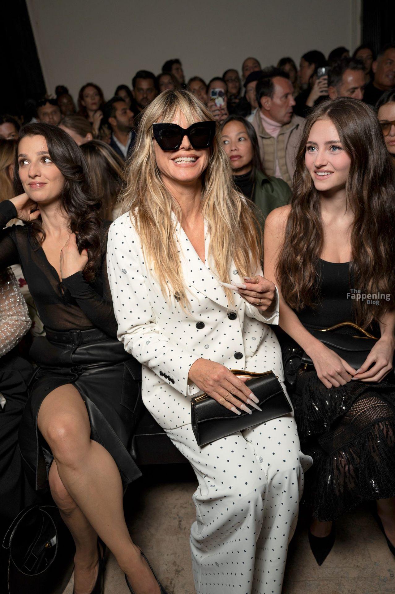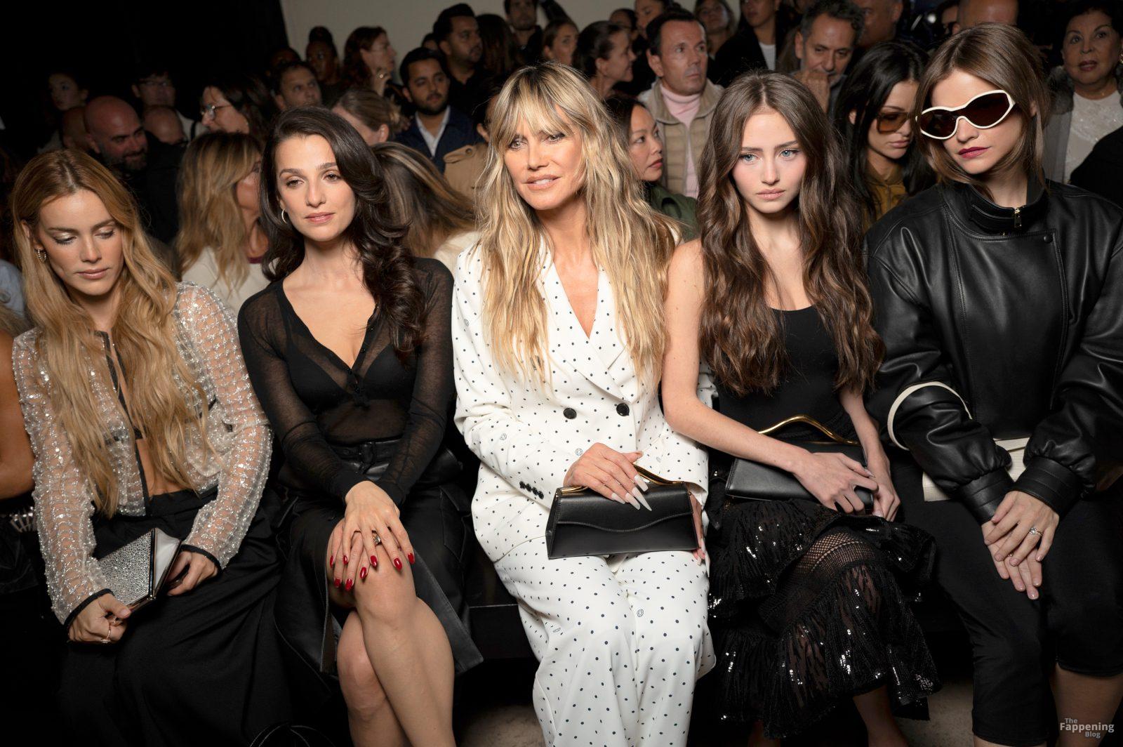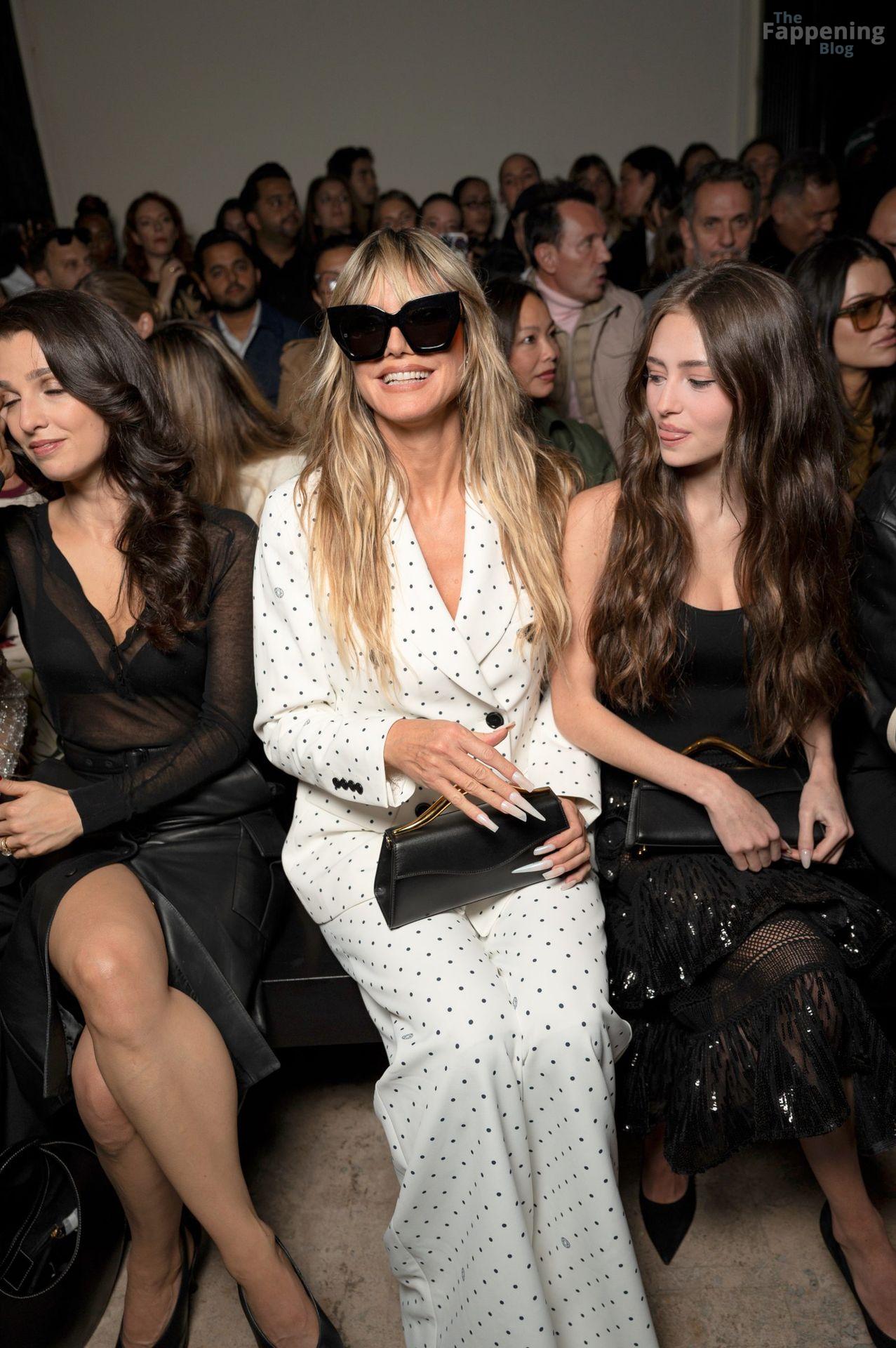 Leni Klum si è presentata alla sfilata di abbigliamento femminile primavera/estate 2026 di Elie Saab durante la Paris Fashion Week. Ha sfoggiato un body nero aderente e una gonna trasparente con paillettes, mostrando il suo décolleté e le gambe.