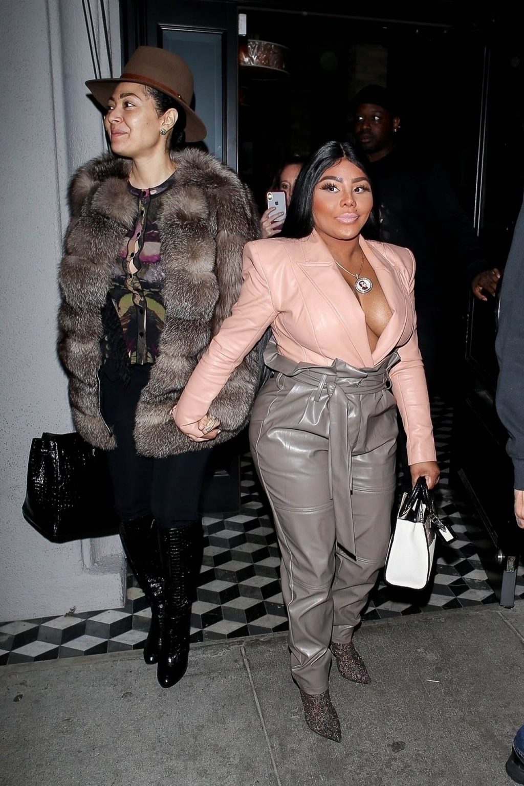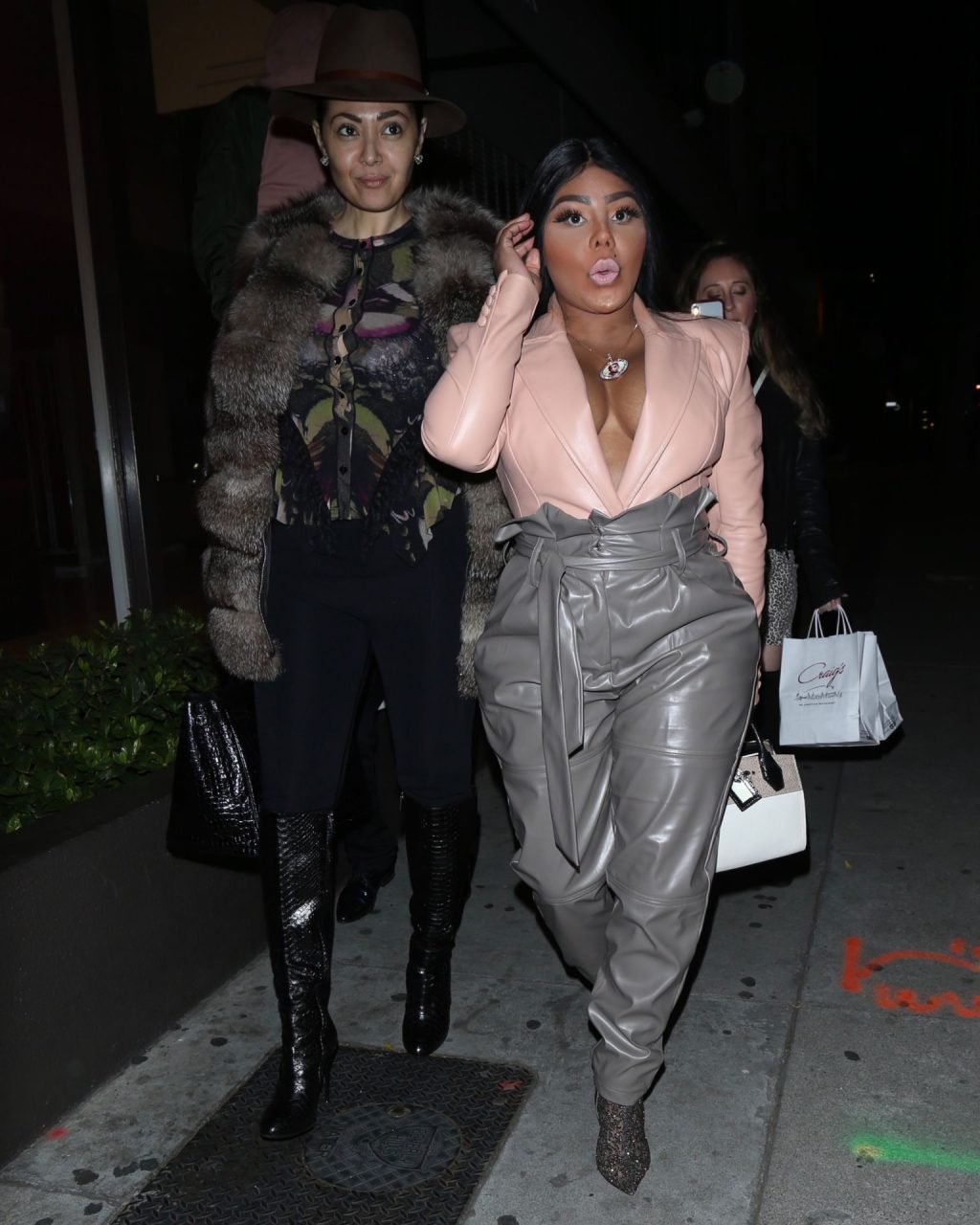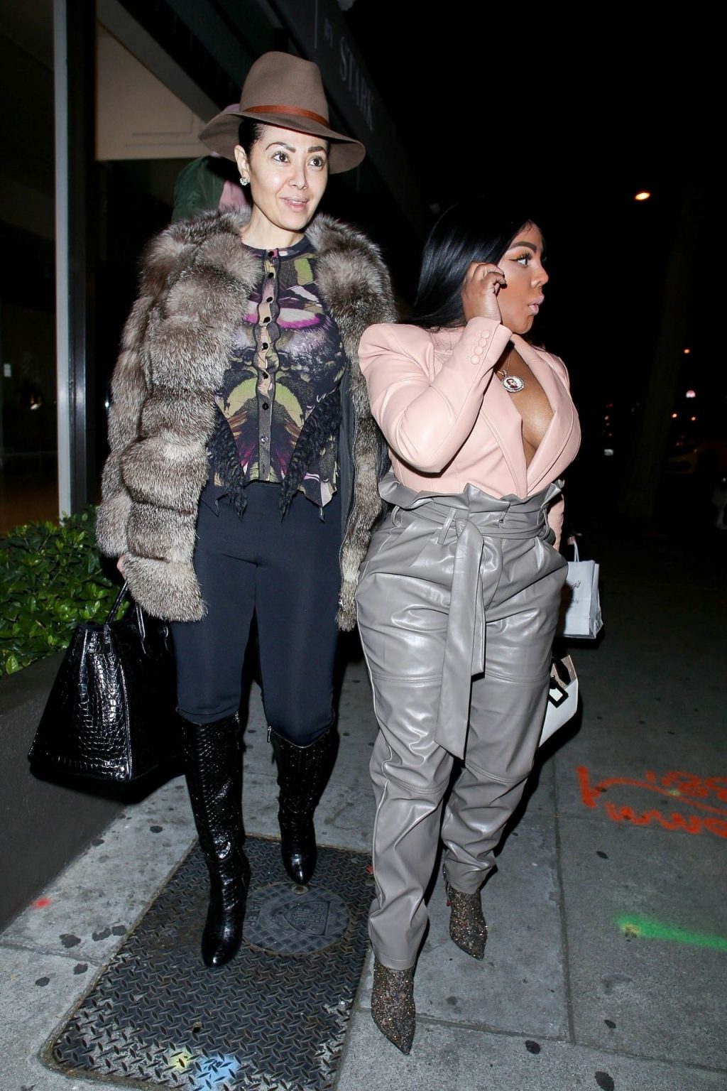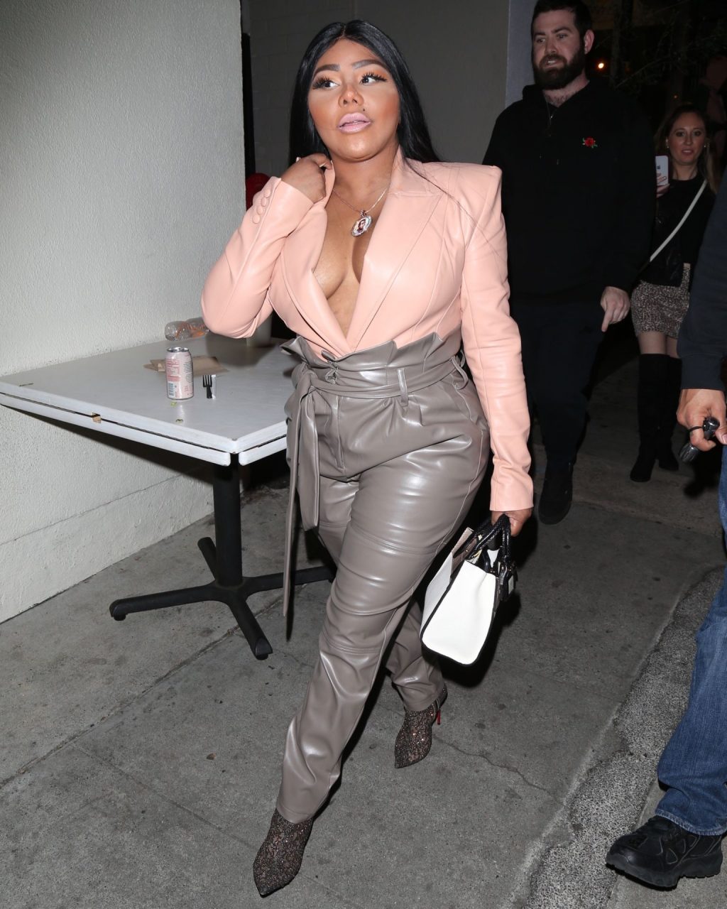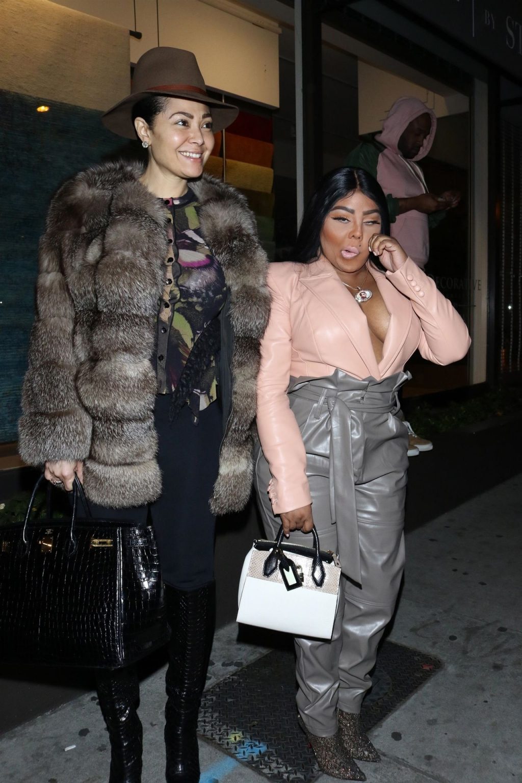 La rapper Lil’ Kim mostra il suo décolleté mentre viene vista uscire da cena con un’amica al ristorante Craig’s a West Hollywood, 27/02/2020. È alla moda con un top rosa rosa, pantaloni in pelle grigia e tacchi neri scintillanti di Louboutin.