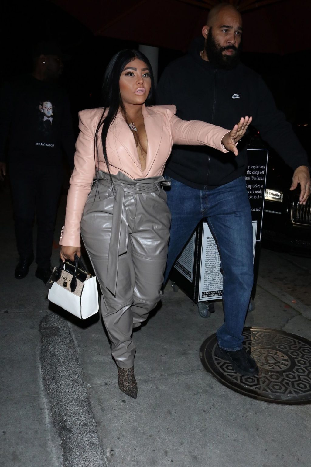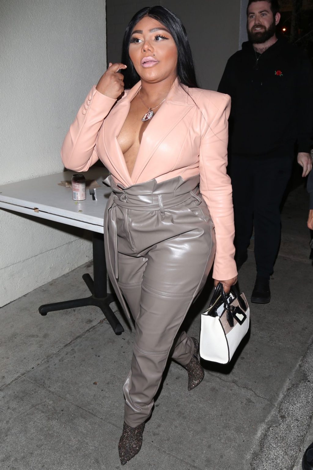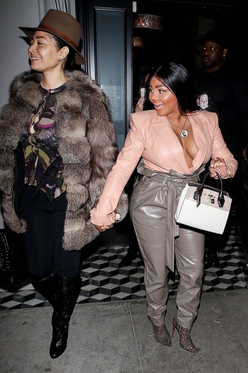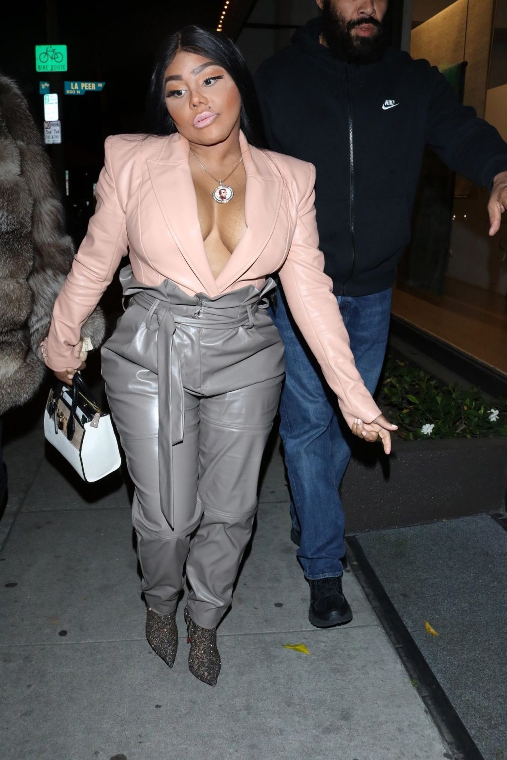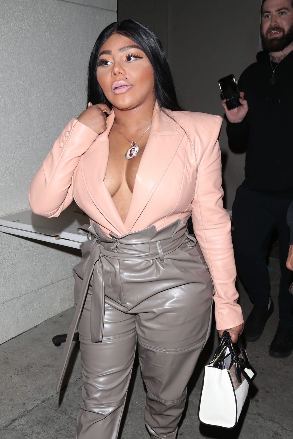 La rapper Lil’ Kim mostra il suo décolleté mentre viene vista uscire da cena con un’amica al ristorante Craig’s a West Hollywood, 27/02/2020. È alla moda con un top rosa rosa, pantaloni in pelle grigia e tacchi neri scintillanti di Louboutin.