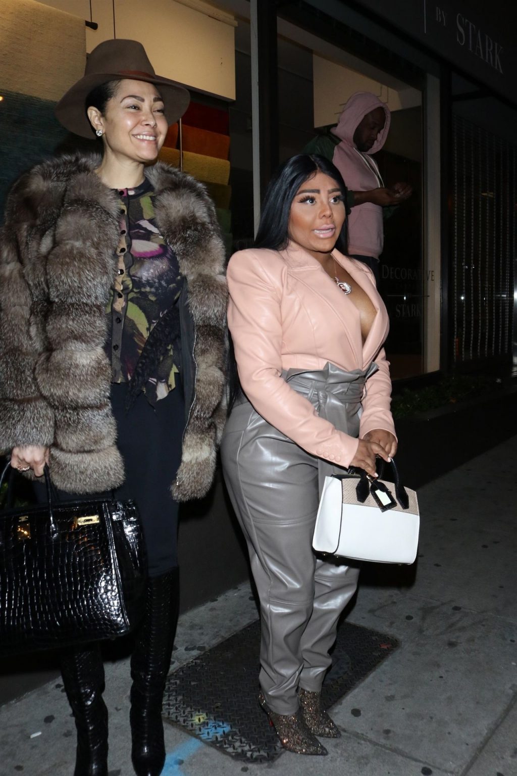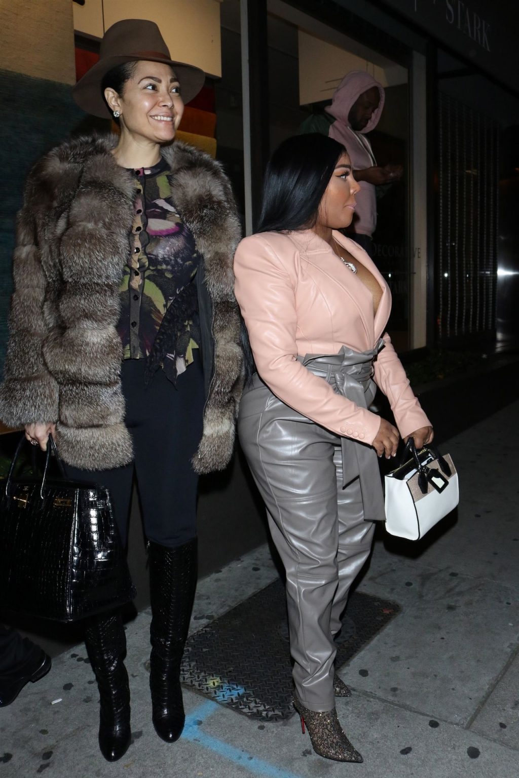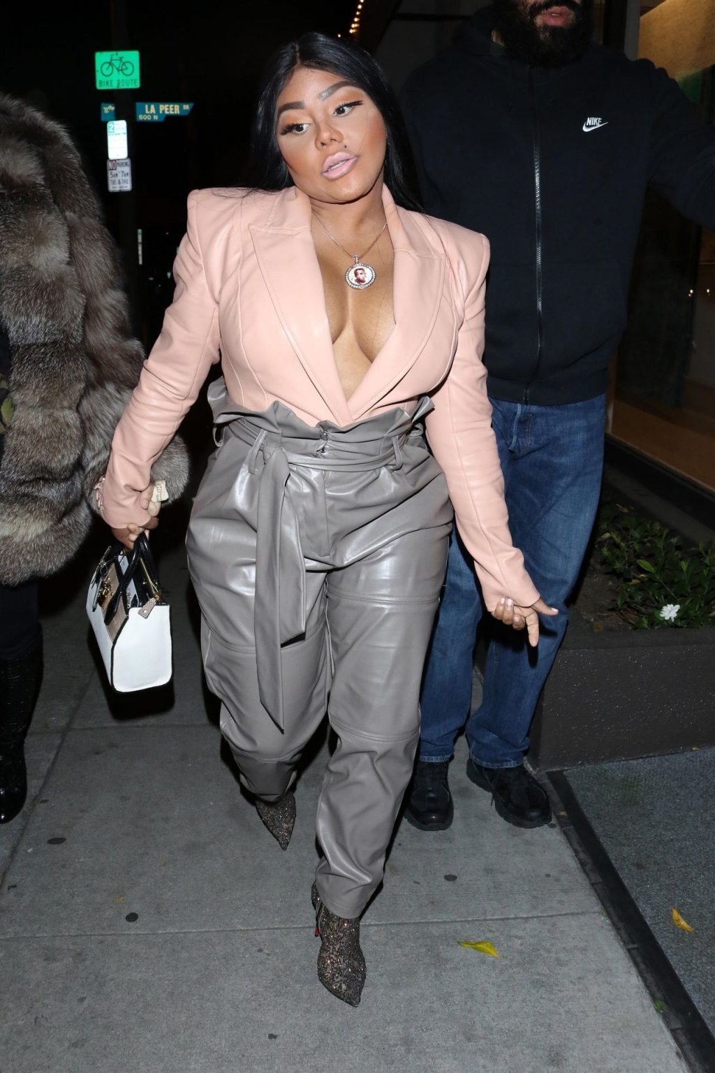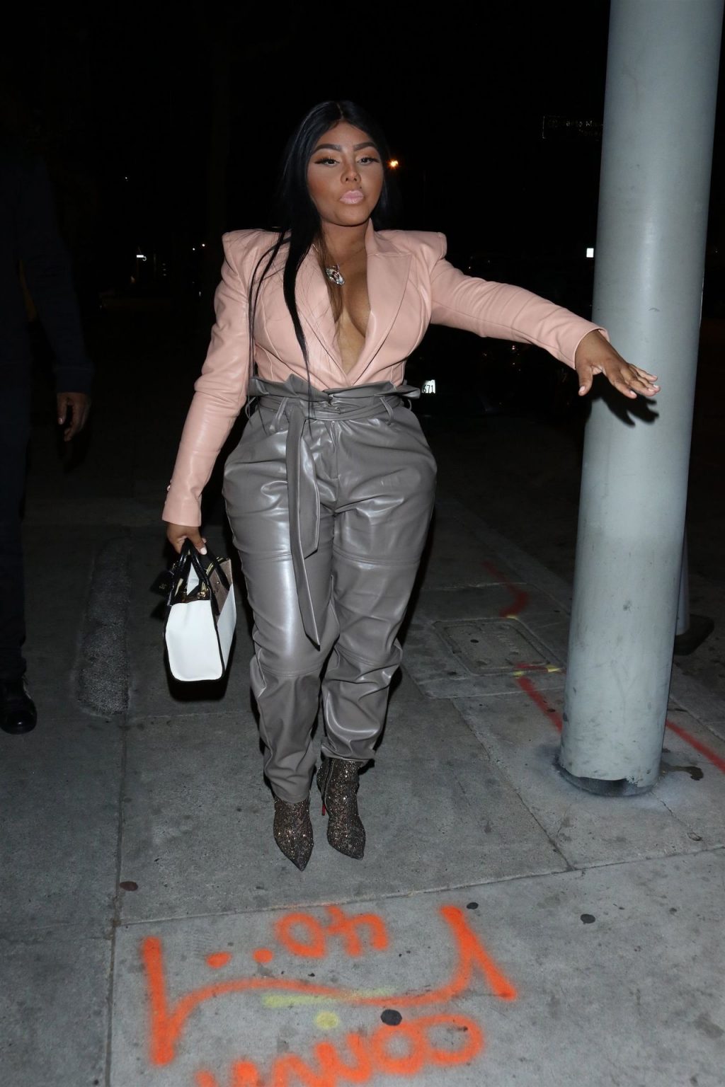 La rapper Lil’ Kim mostra il suo décolleté mentre viene vista uscire da cena con un’amica al ristorante Craig’s a West Hollywood, 27/02/2020. È alla moda con un top rosa rosa, pantaloni in pelle grigia e tacchi neri scintillanti di Louboutin.