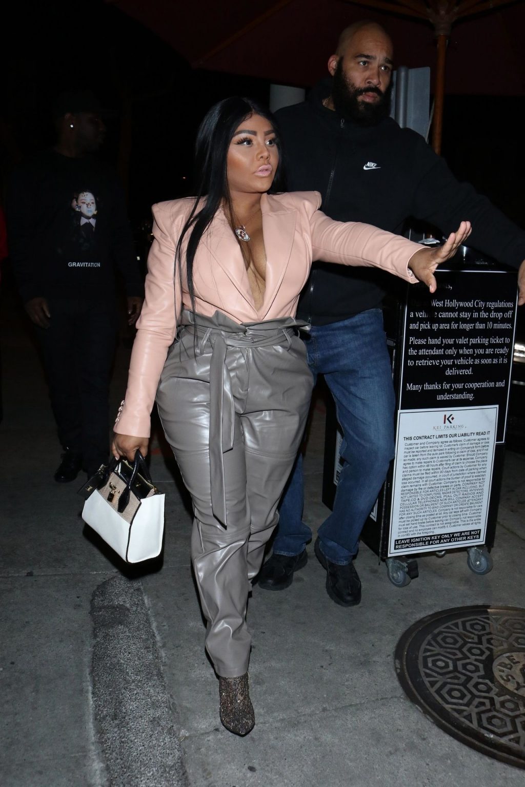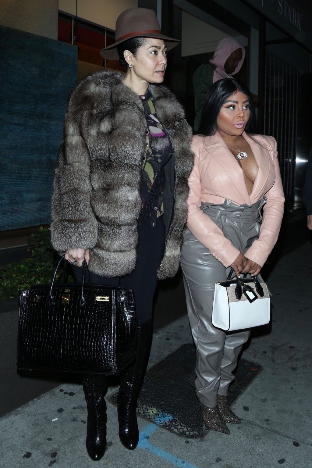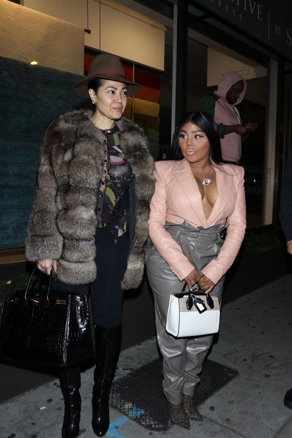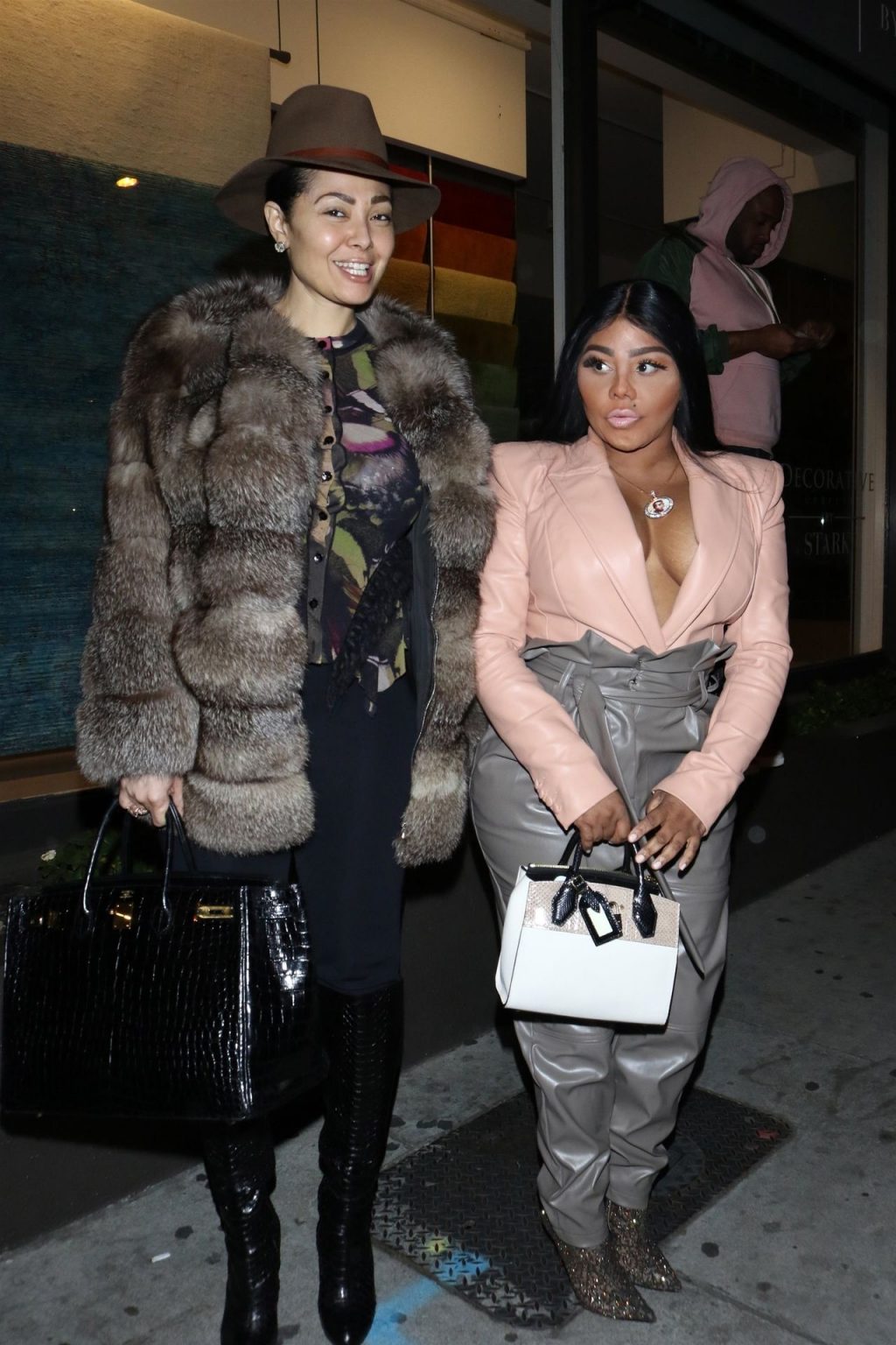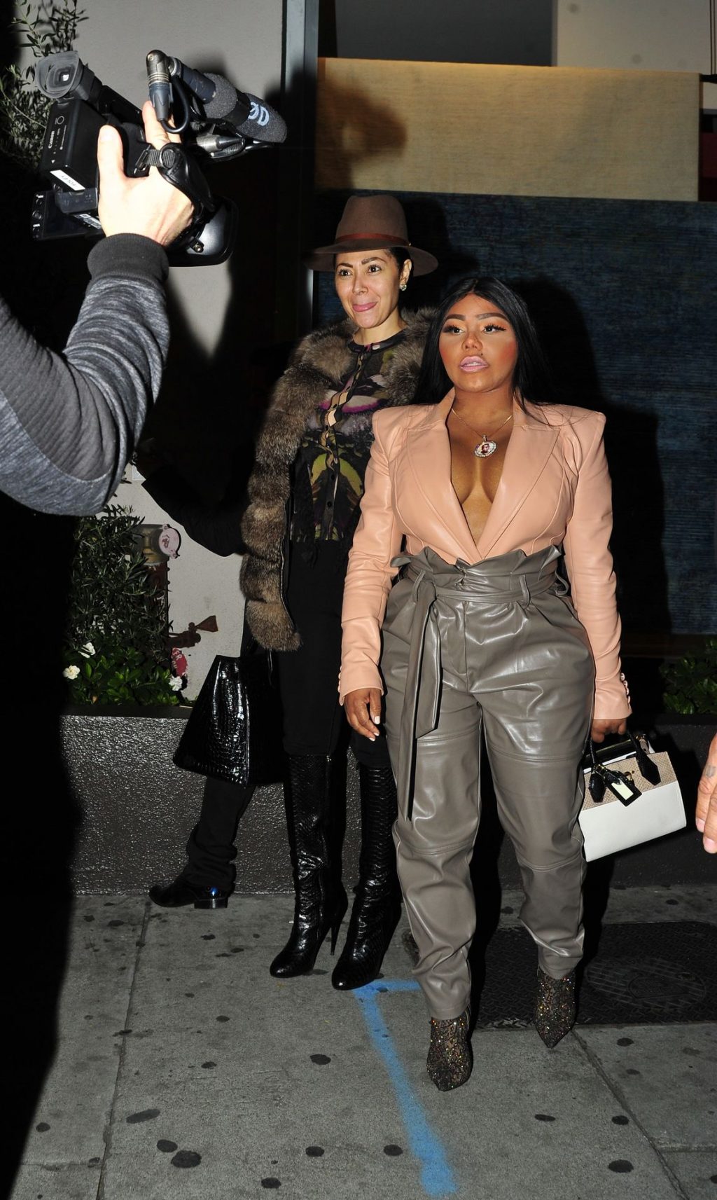 La rapper Lil’ Kim mostra il suo décolleté mentre viene vista uscire da cena con un’amica al ristorante Craig’s a West Hollywood, 27/02/2020. È alla moda con un top rosa rosa, pantaloni in pelle grigia e tacchi neri scintillanti di Louboutin.