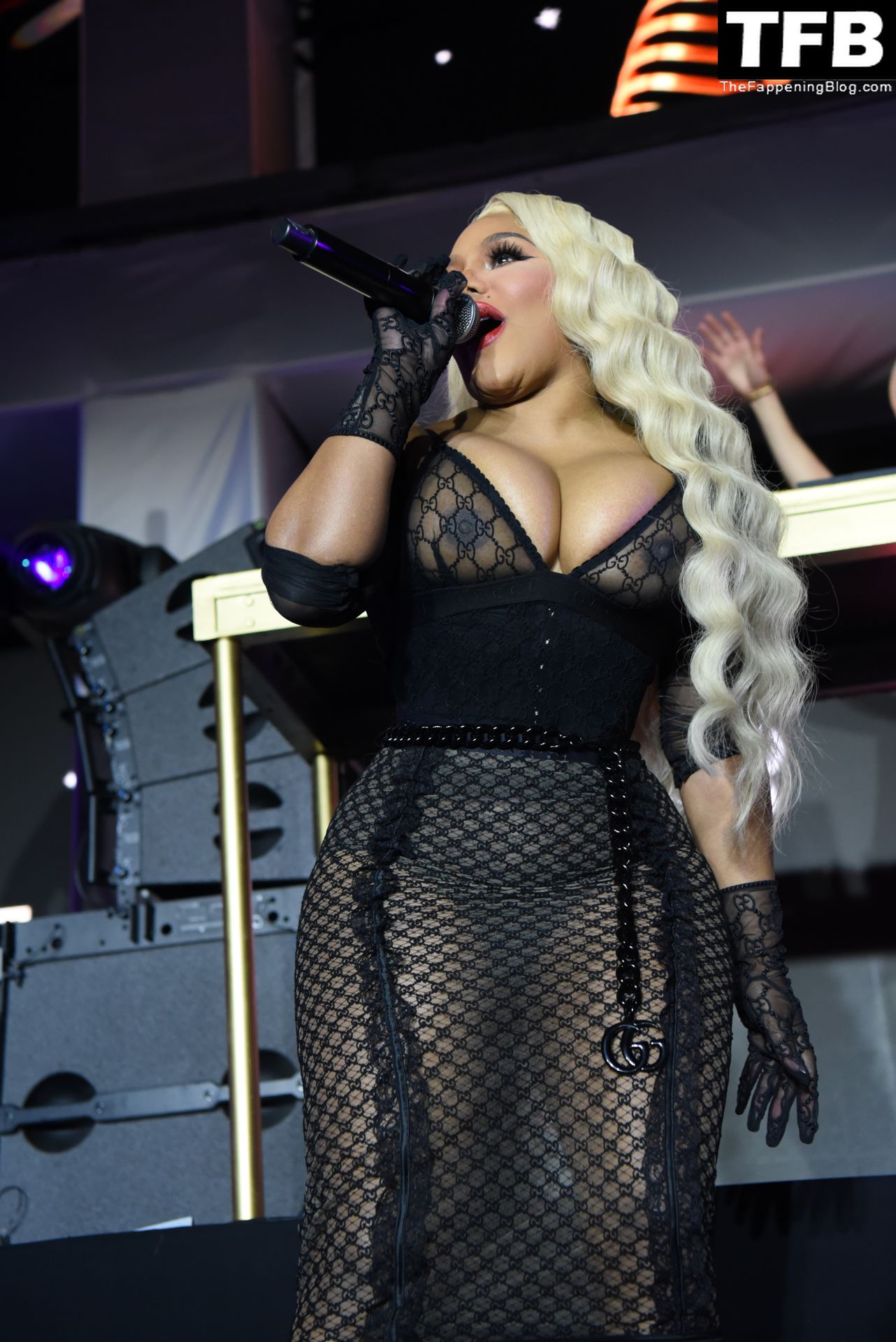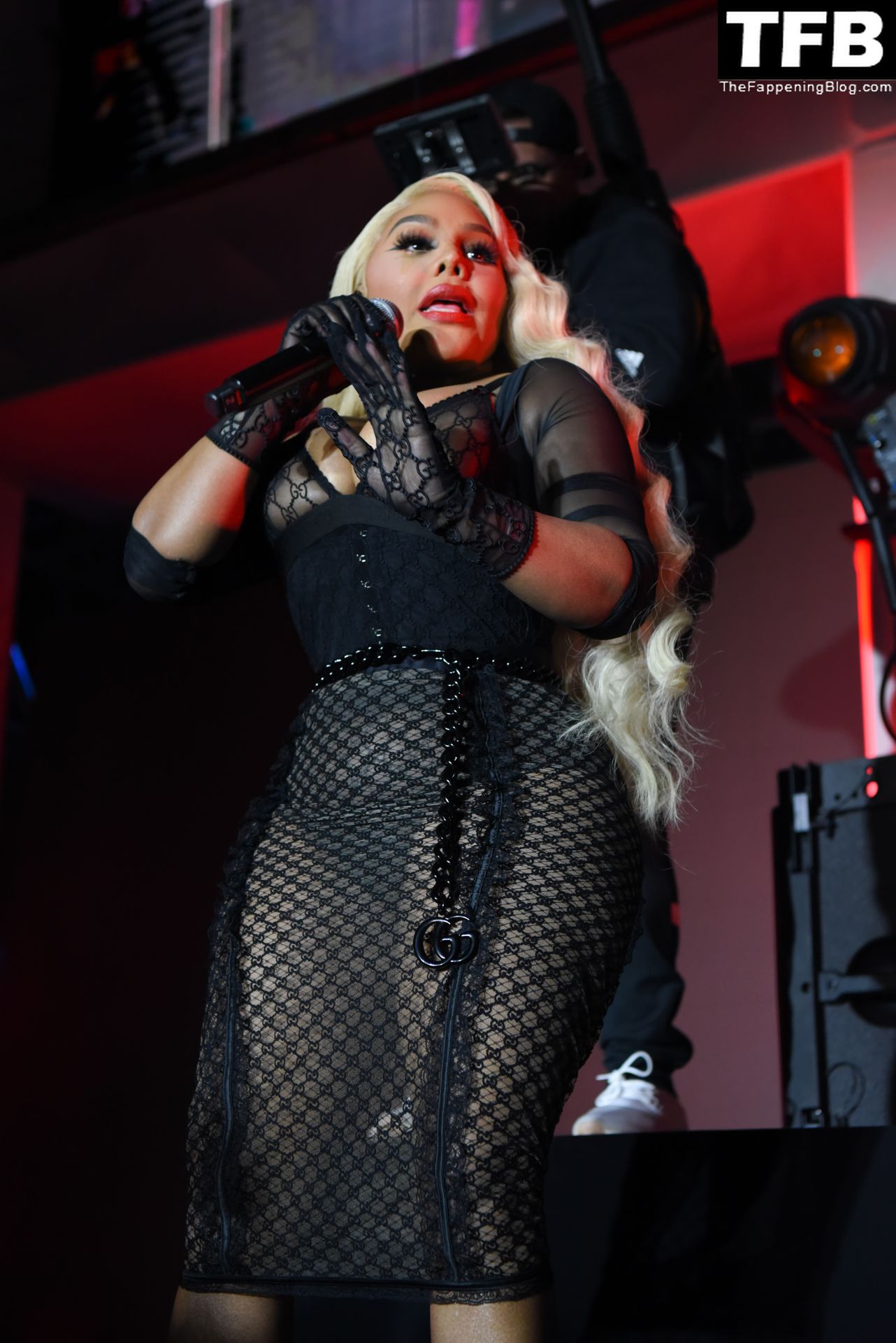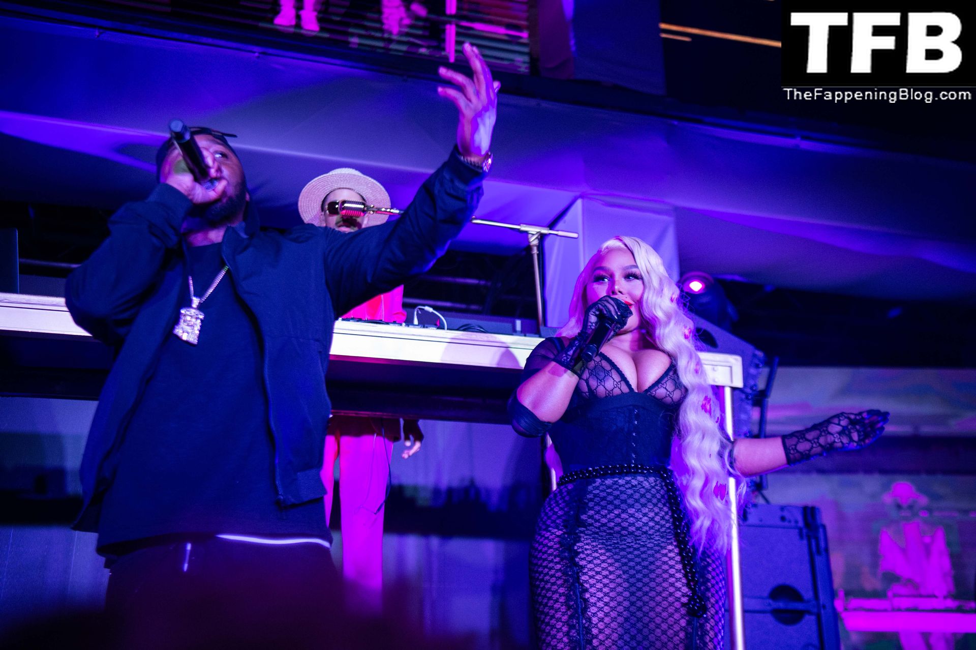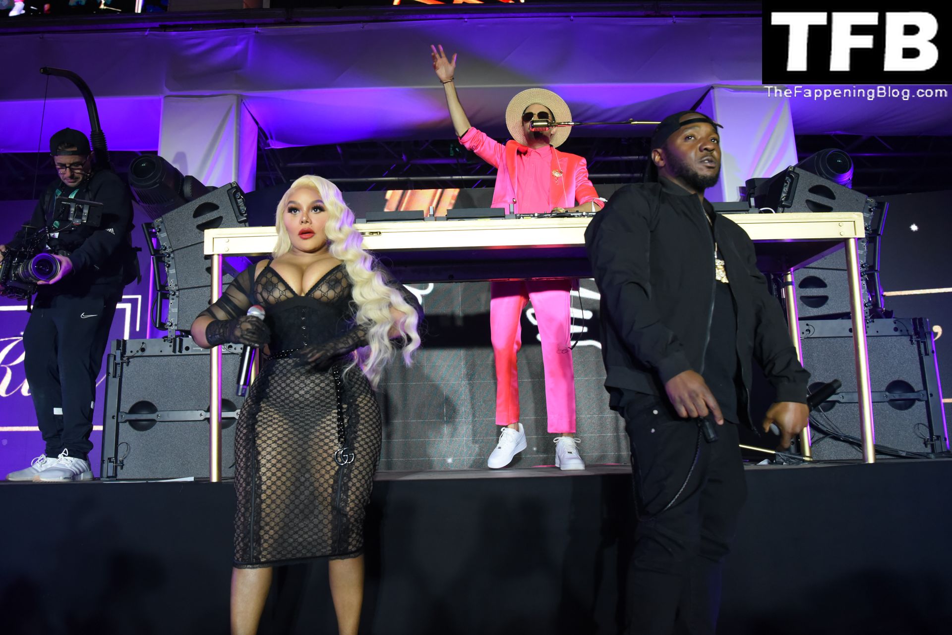 Kimberly Denise Jones, meglio conosciuta con il suo nome d’arte Lil Kim, si esibisce al Carousel Club durante il Pegasus World Cup 2022 a Gulfstream, Hallandale Beach, Florida, 29/01/2022.