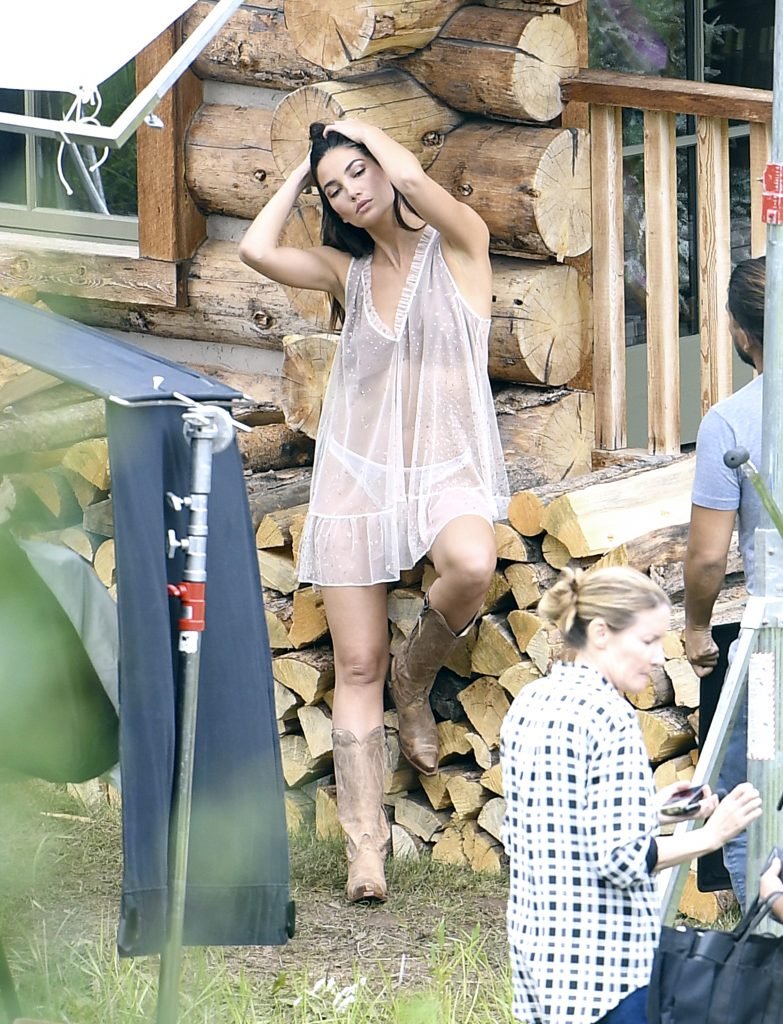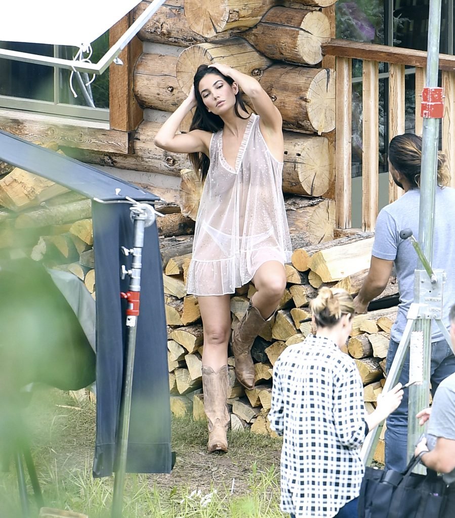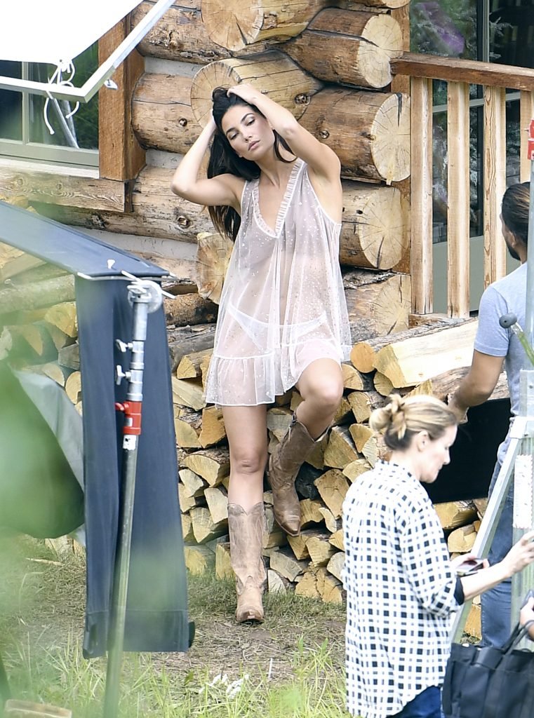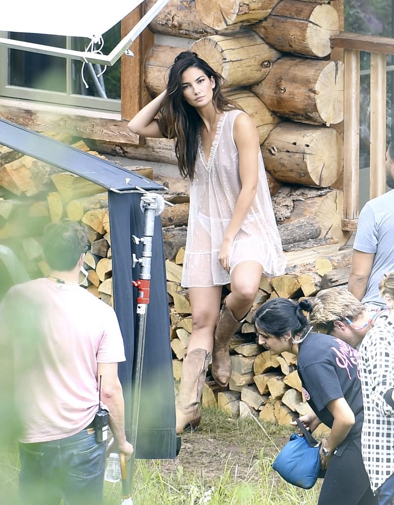 Model Lily Aldridge posa in sexy pigiama per il prossimo catalogo natalizio di Victoria Secret ad Aspen, 13/08/2017.