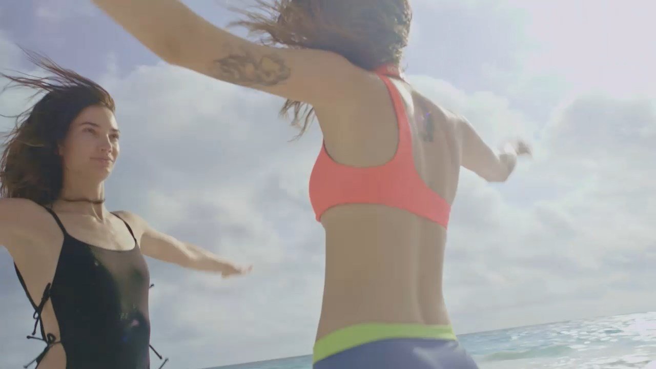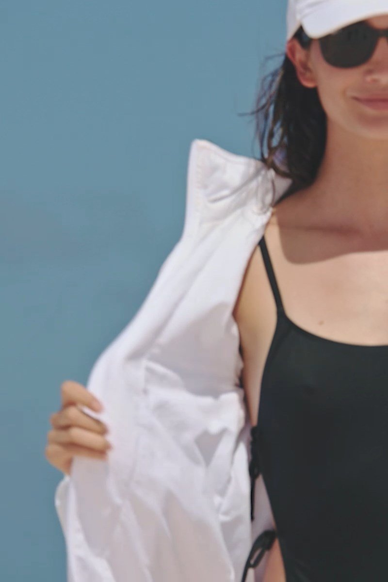 Modella Lily Aldridge, 32 anni, promuove il marchio di costumi da bagno Solid & Striped (2018).