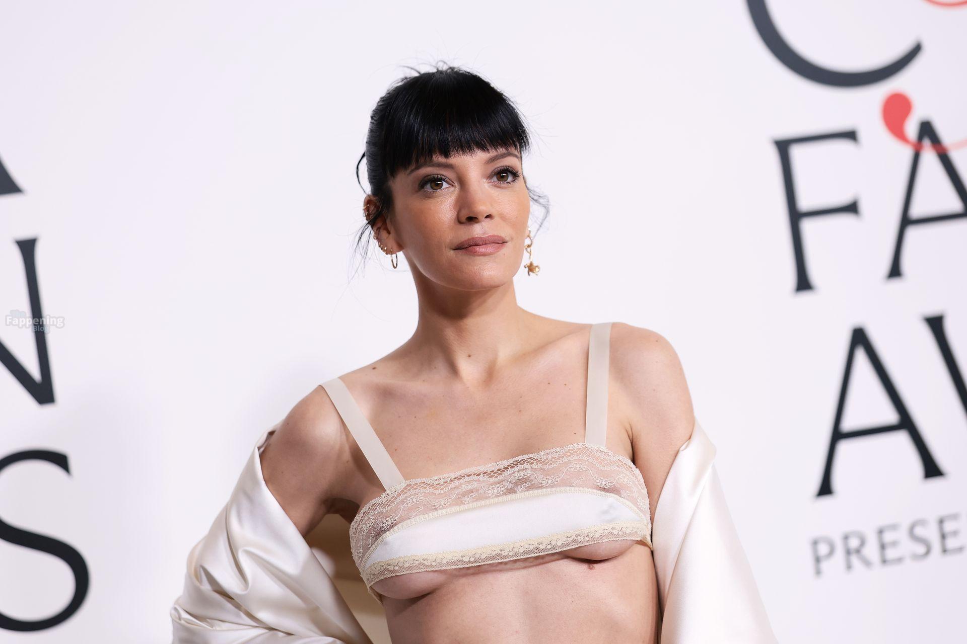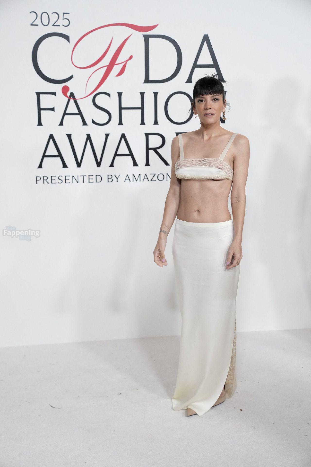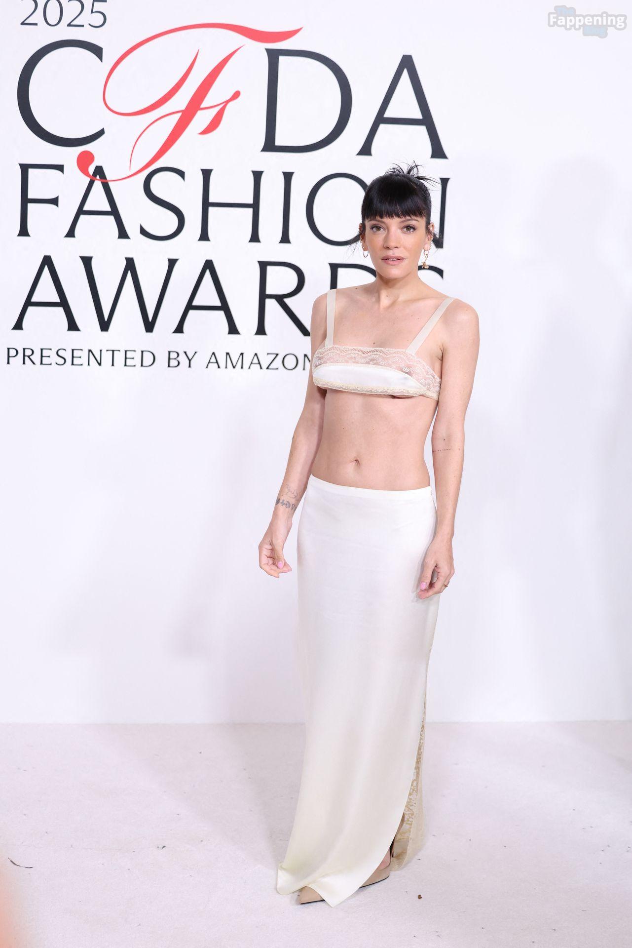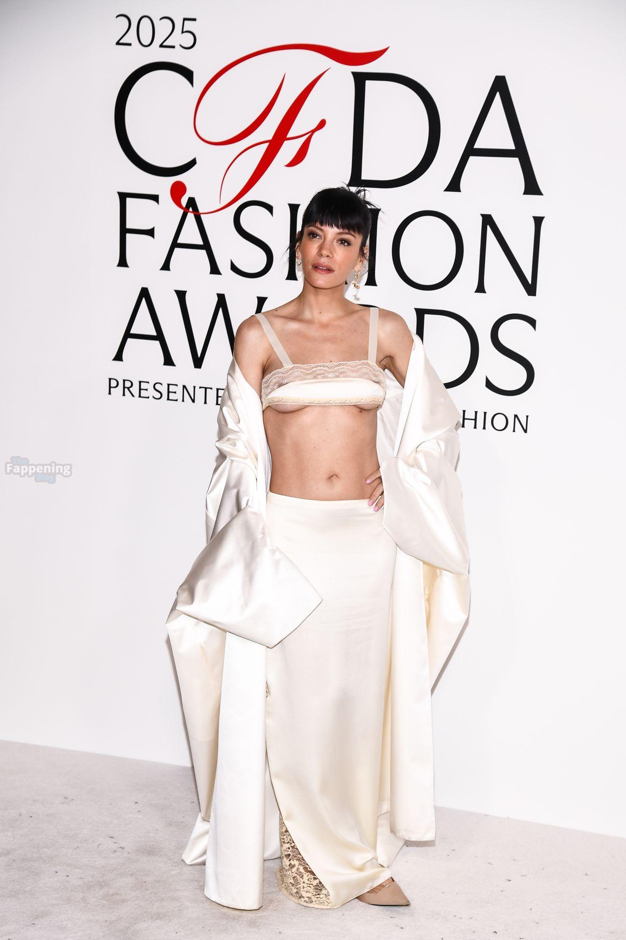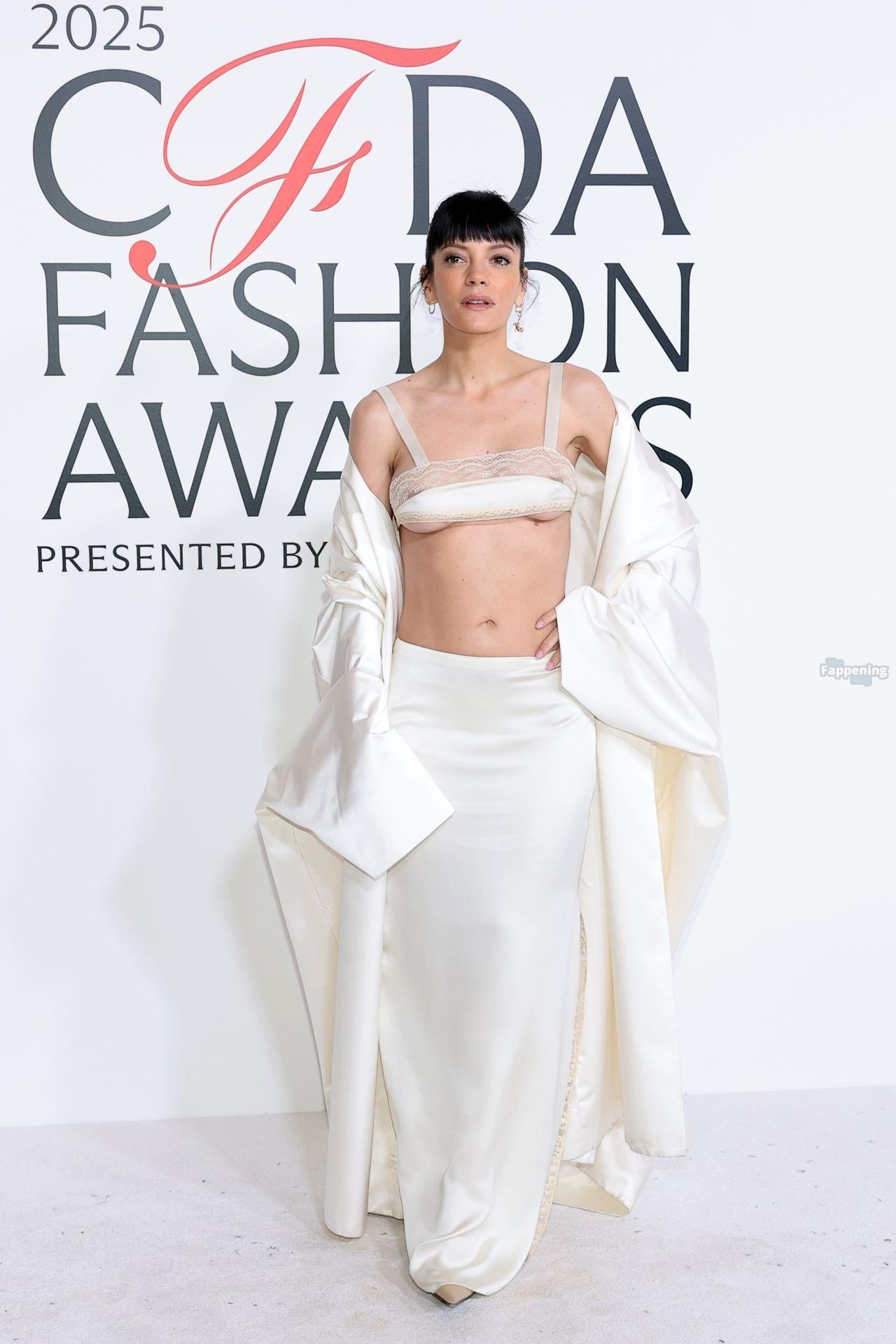 La cantante Lily Allen è stata fotografata senza reggiseno mentre camminava sul red carpet dei CFDA Fashion Awards 2025 tenutisi all’American Museum of Natural History di New York.