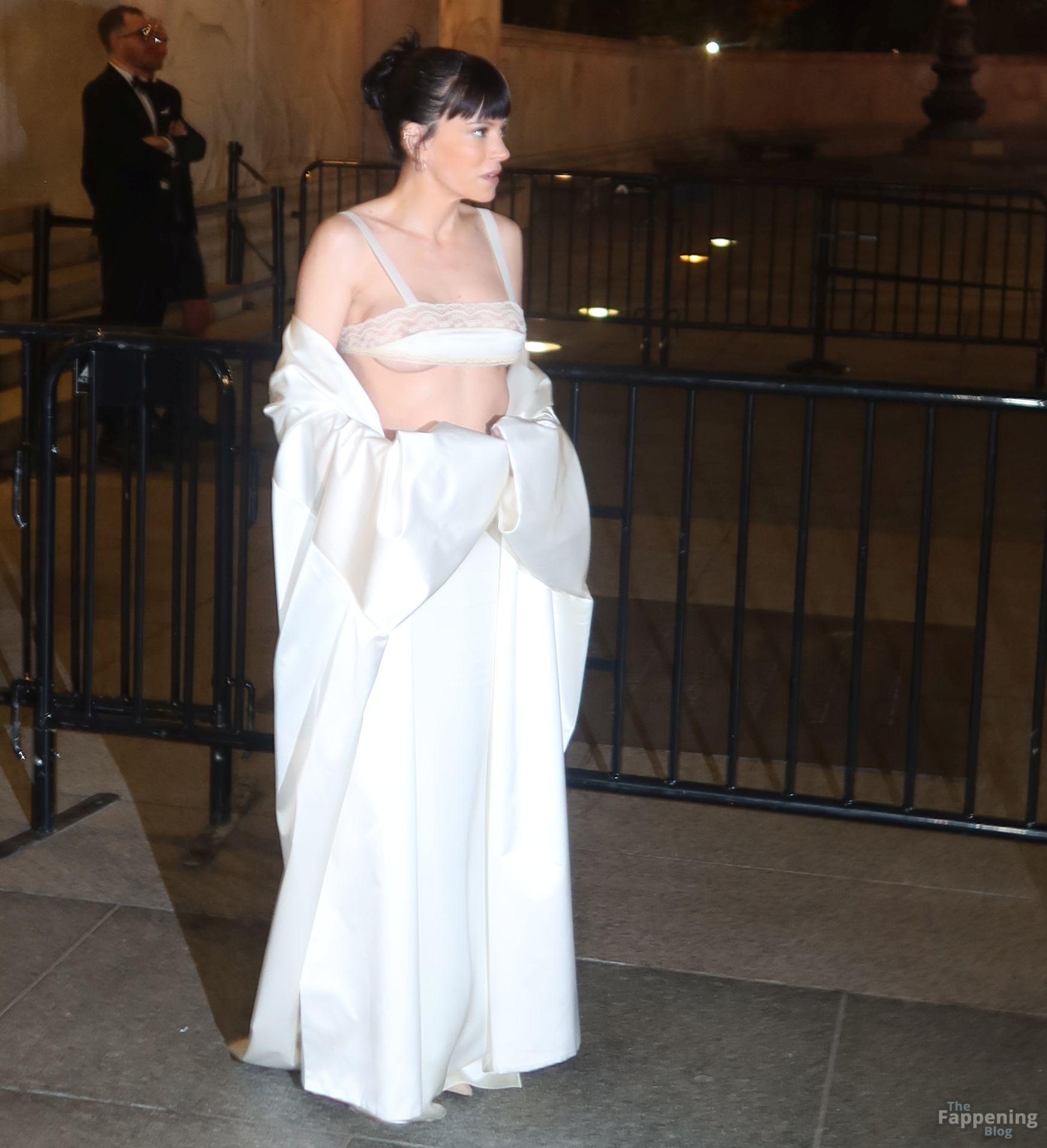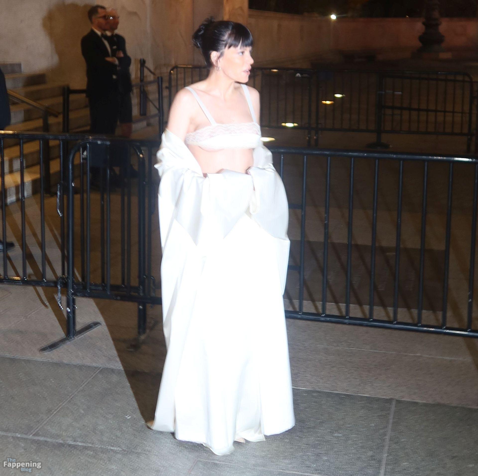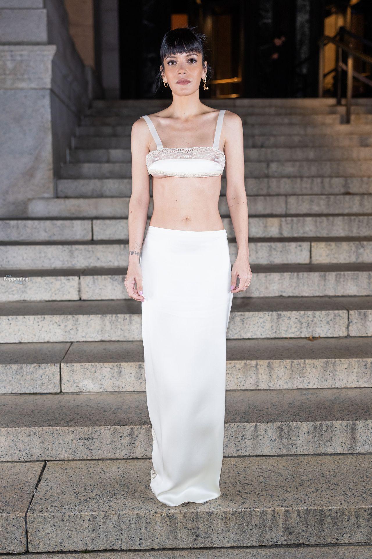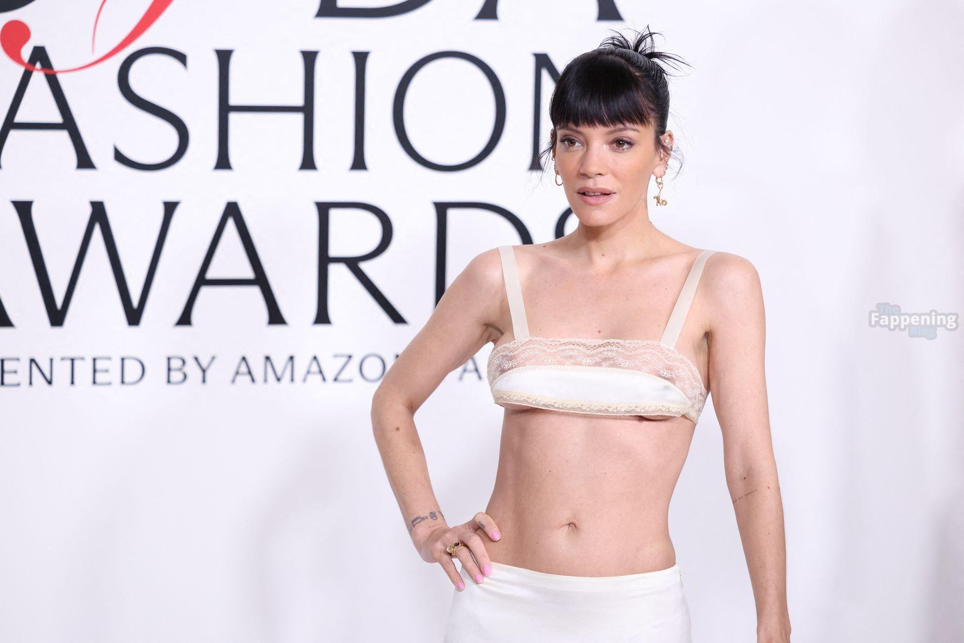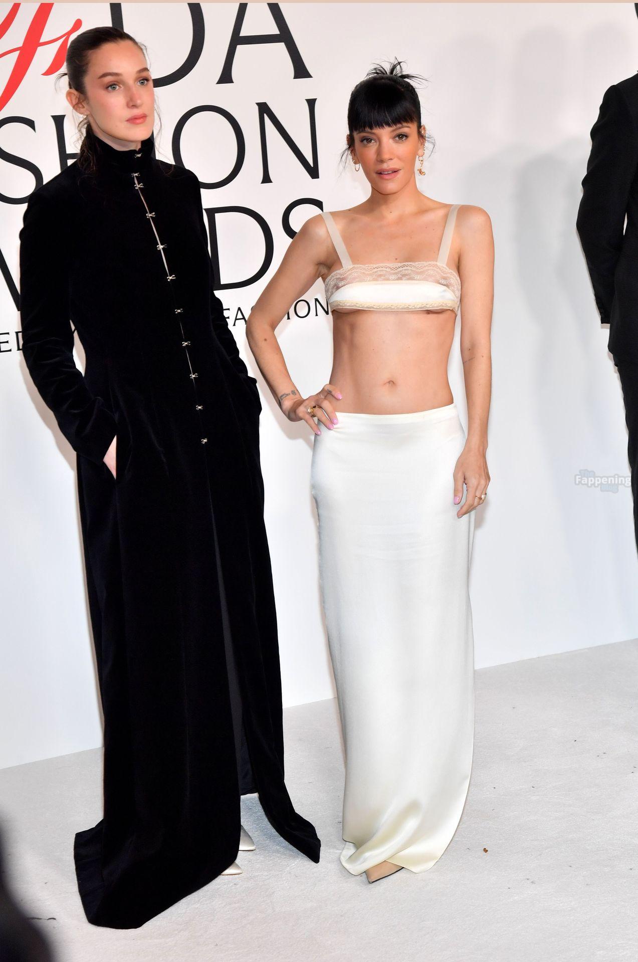 La cantante Lily Allen è stata fotografata senza reggiseno mentre camminava sul red carpet dei CFDA Fashion Awards 2025 tenutisi all’American Museum of Natural History di New York.