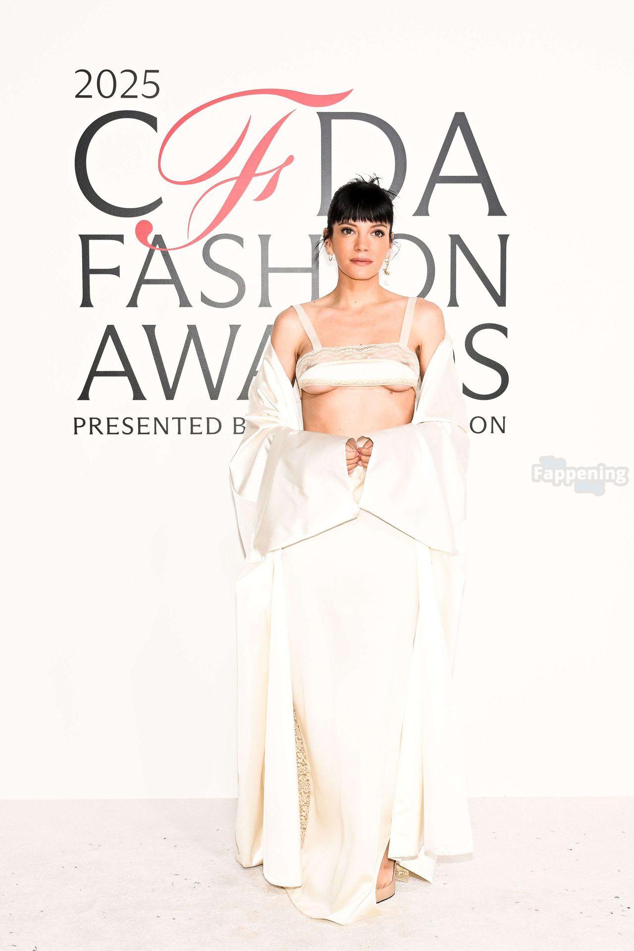 Lily Allen è apparsa senza reggiseno con un top in pizzo trasparente ai CFDA Awards 2025. La sua areola si vedeva attraverso il tessuto, quasi causando un incidente di “nip slip”.