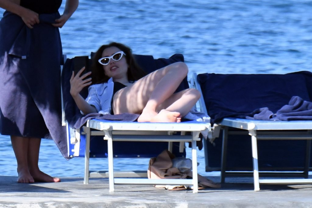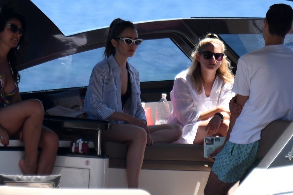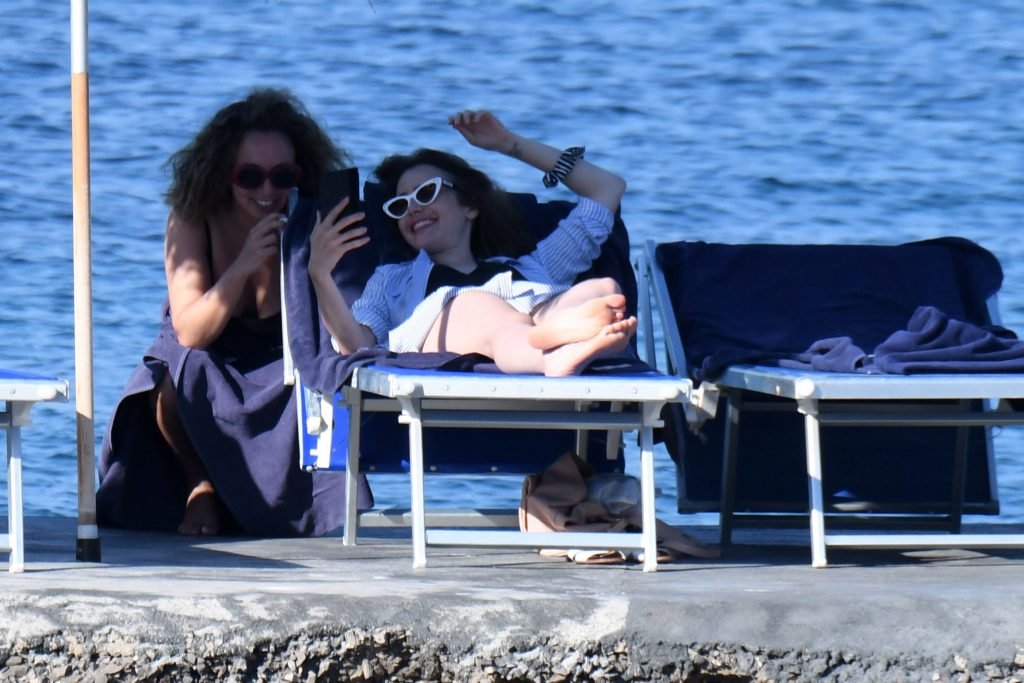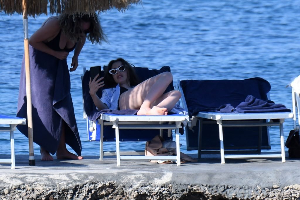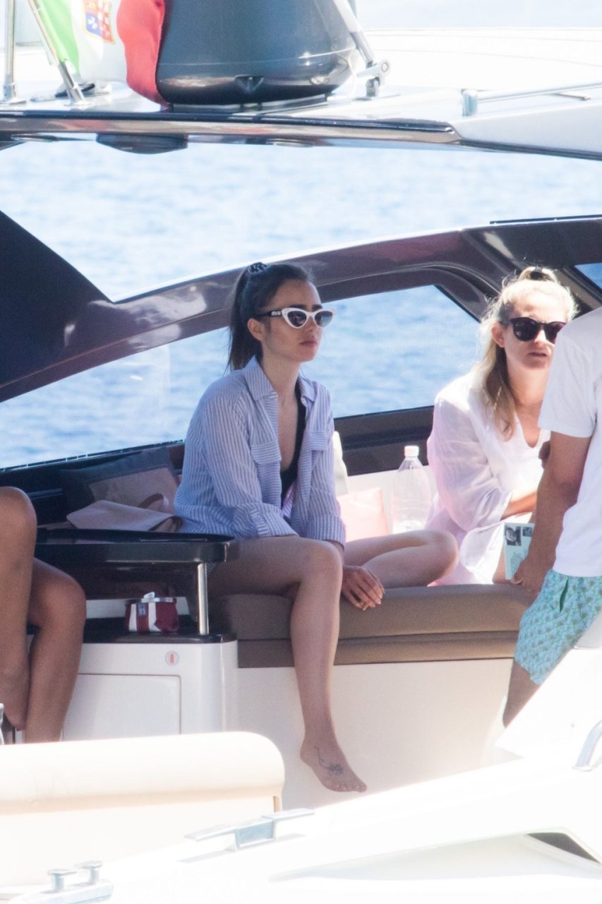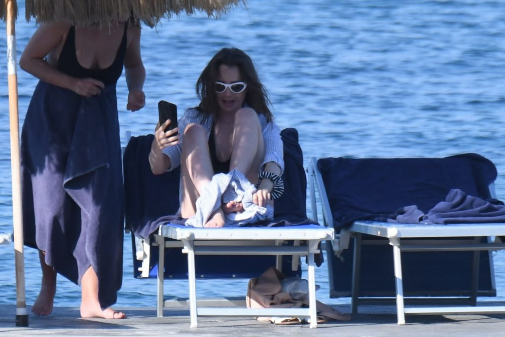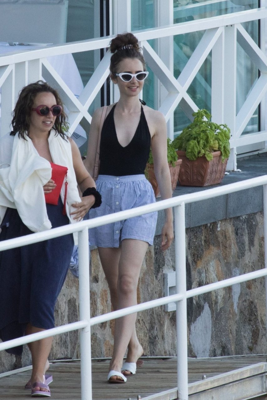 Lily Collins è stata avvistata in vacanza a Ischia, ha fatto il bagno nel mare con un costume da bagno nero. 18/07/2018.