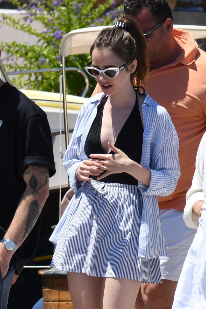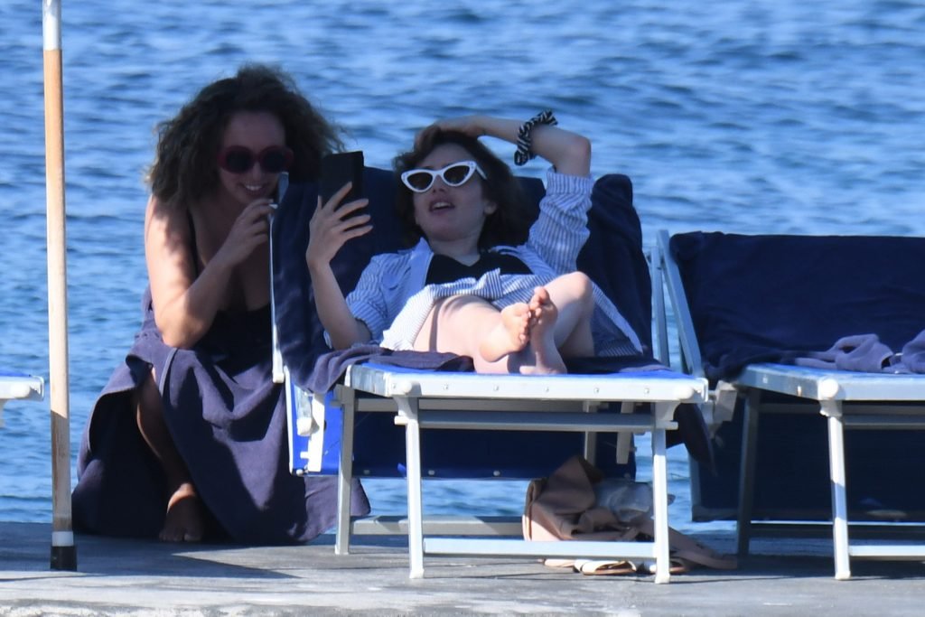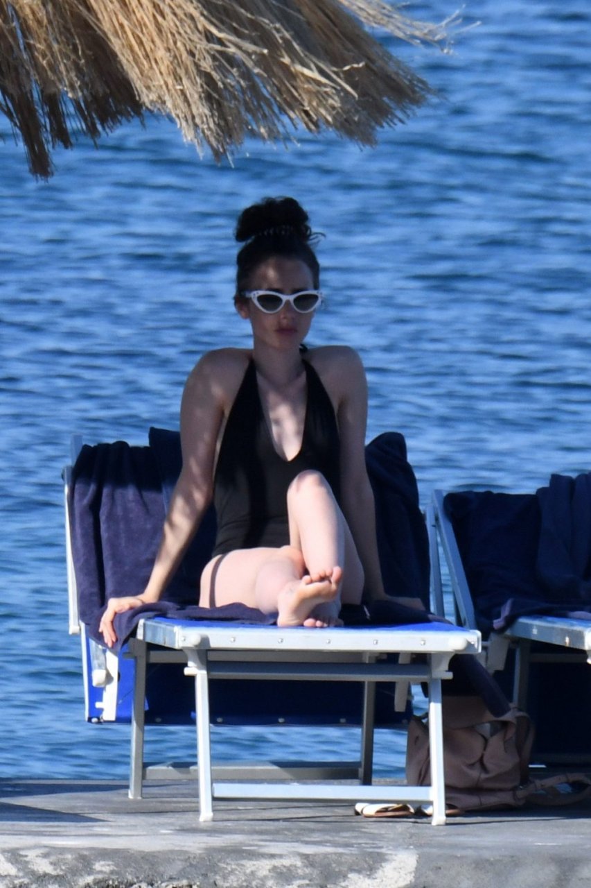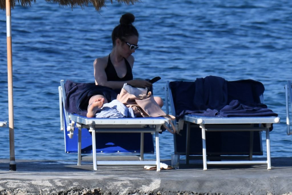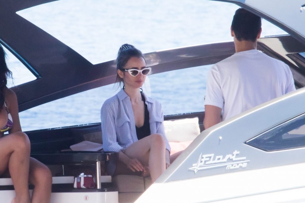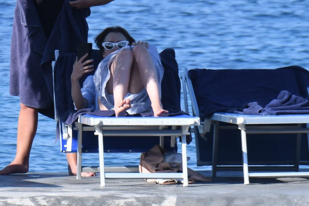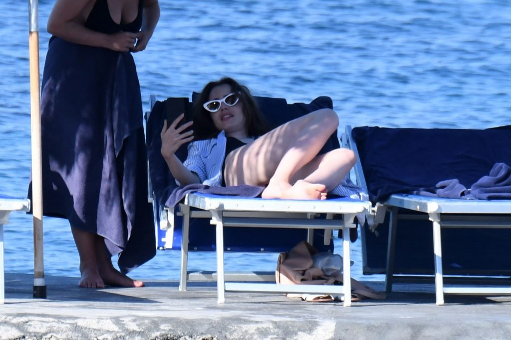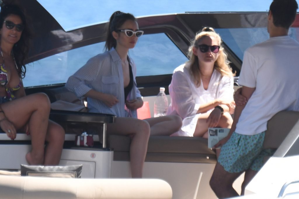 Lily Collins è stata avvistata in vacanza a Ischia, ha fatto il bagno nel mare con un costume da bagno nero. 18/07/2018.