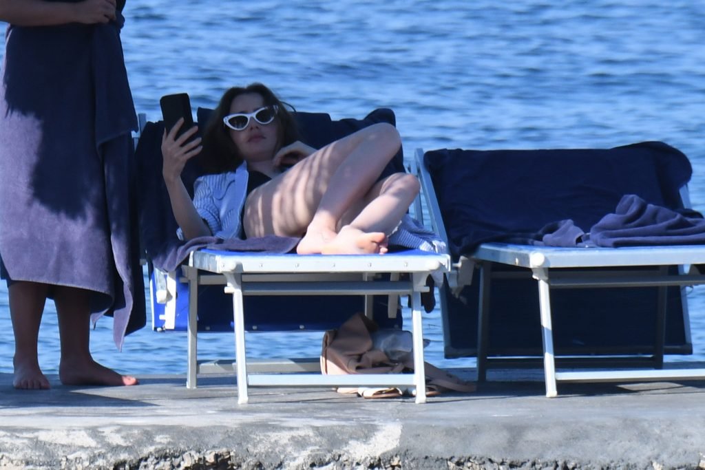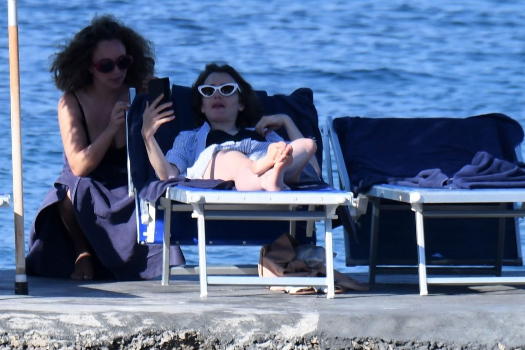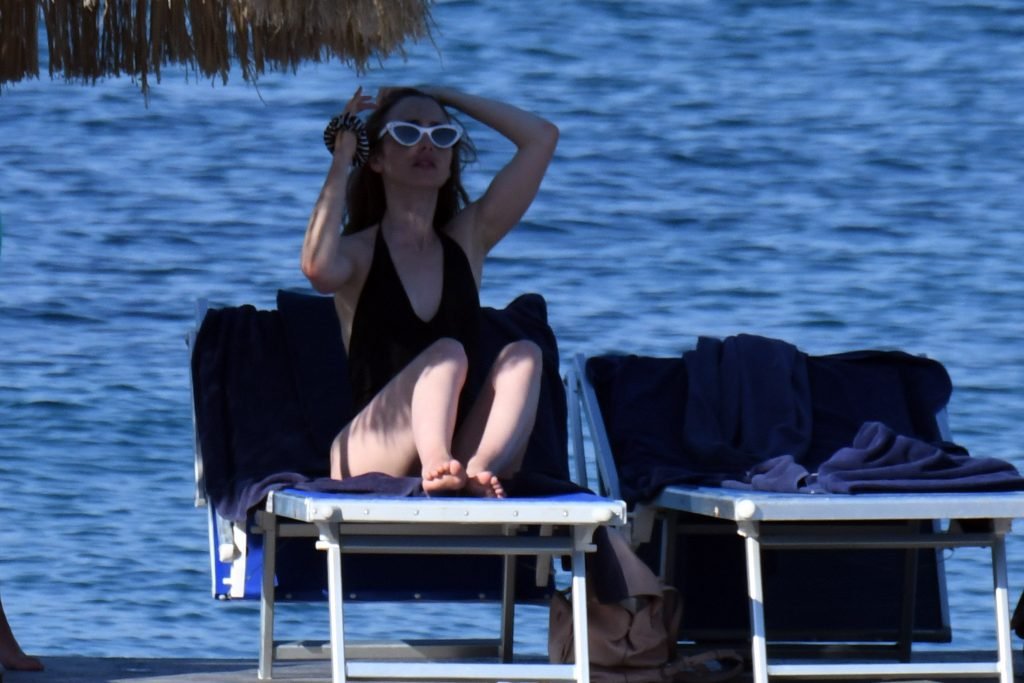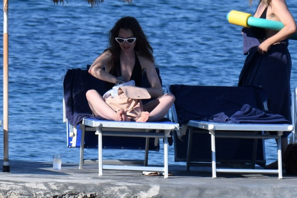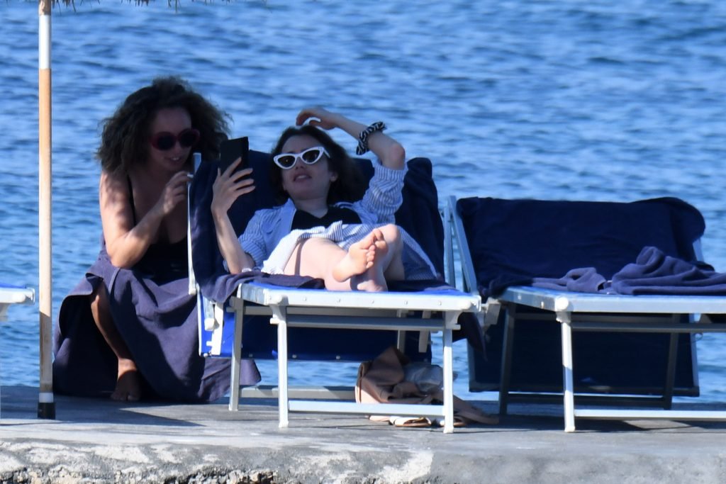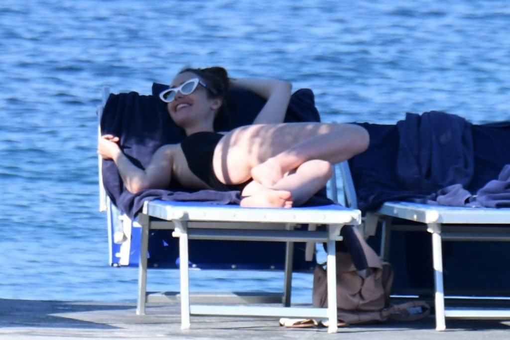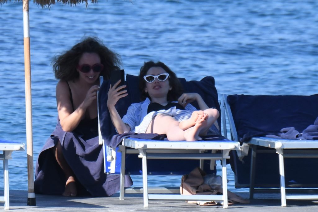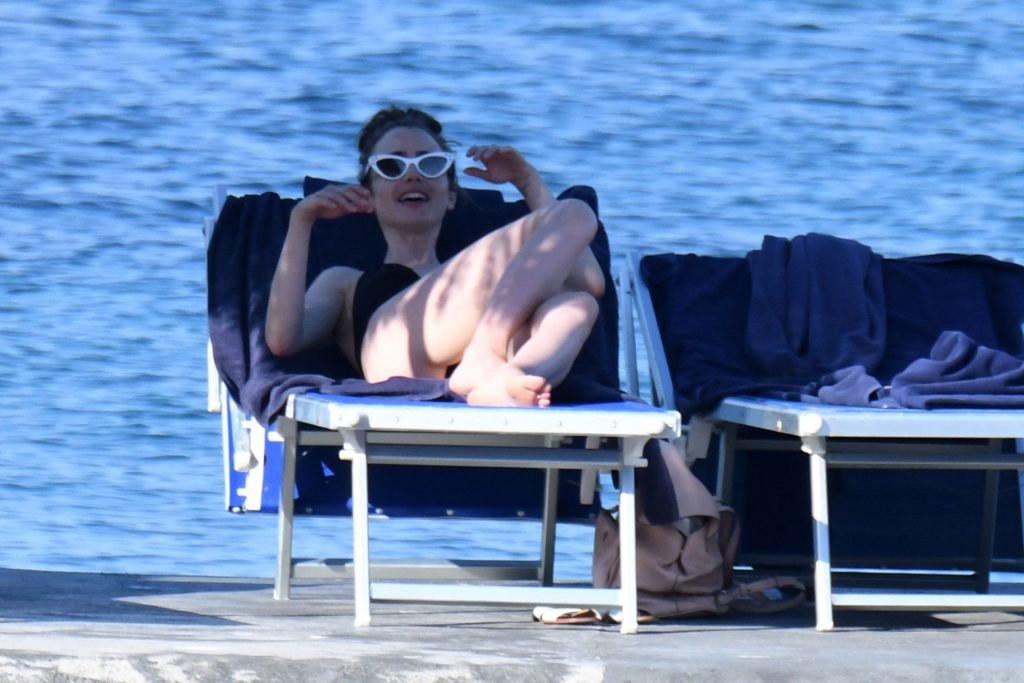 Lily Collins è stata avvistata in vacanza a Ischia, ha fatto il bagno nel mare con un costume da bagno nero. 18/07/2018.