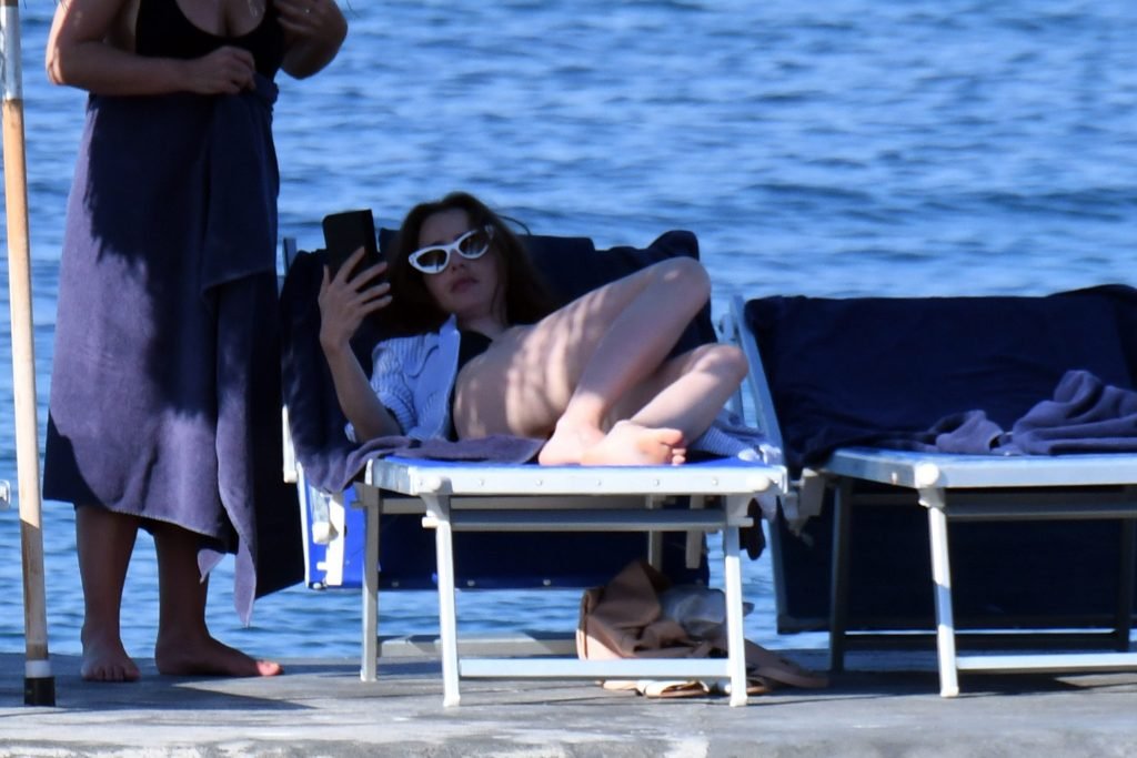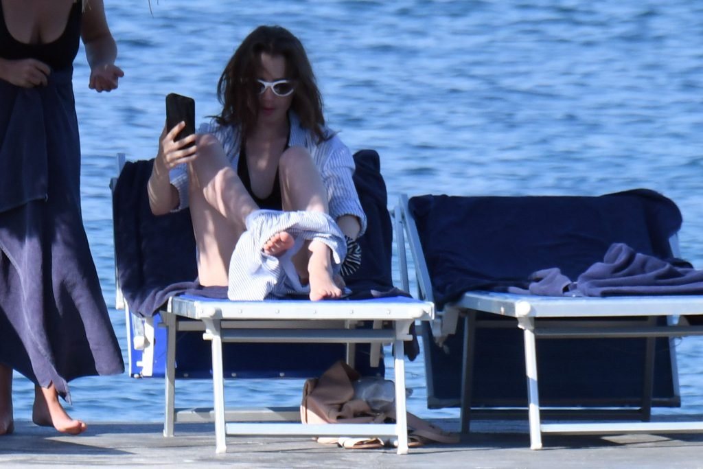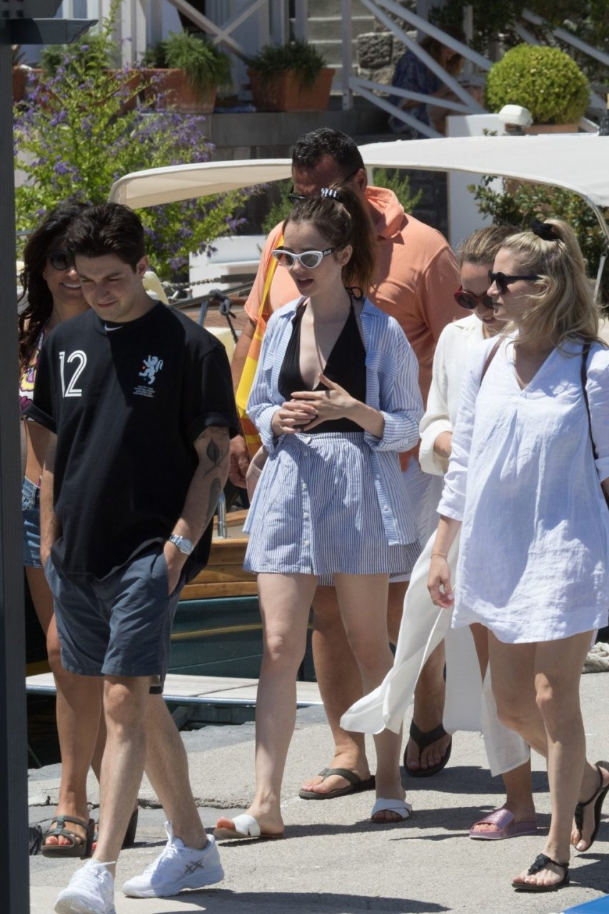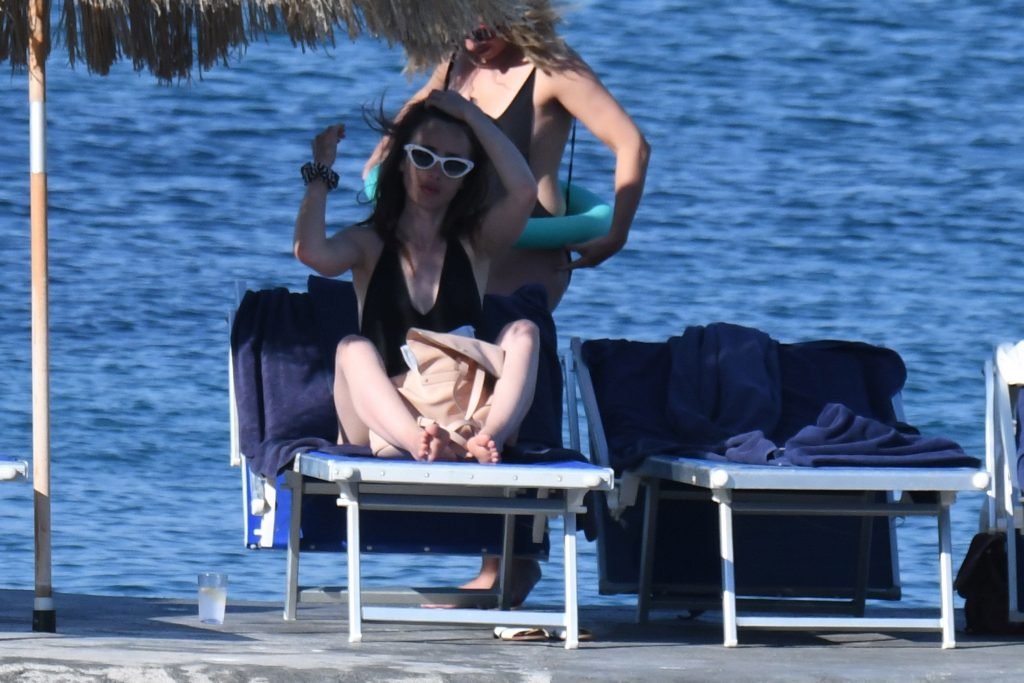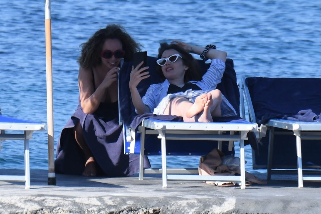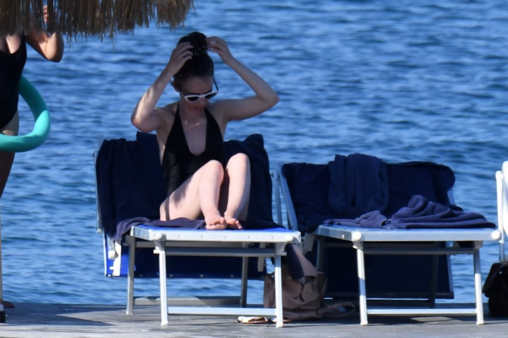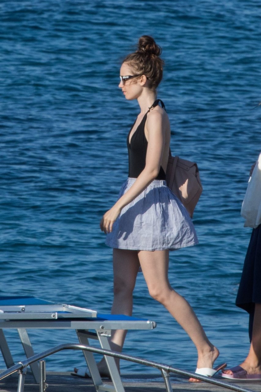 Lily Collins è stata avvistata in vacanza a Ischia, ha fatto il bagno nel mare con un costume da bagno nero. 18/07/2018.