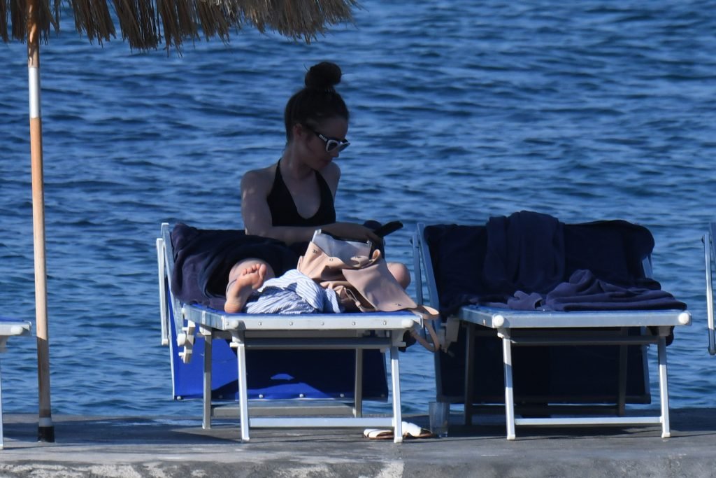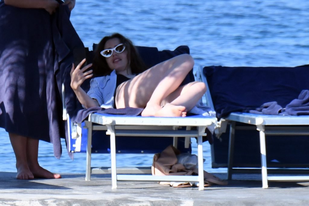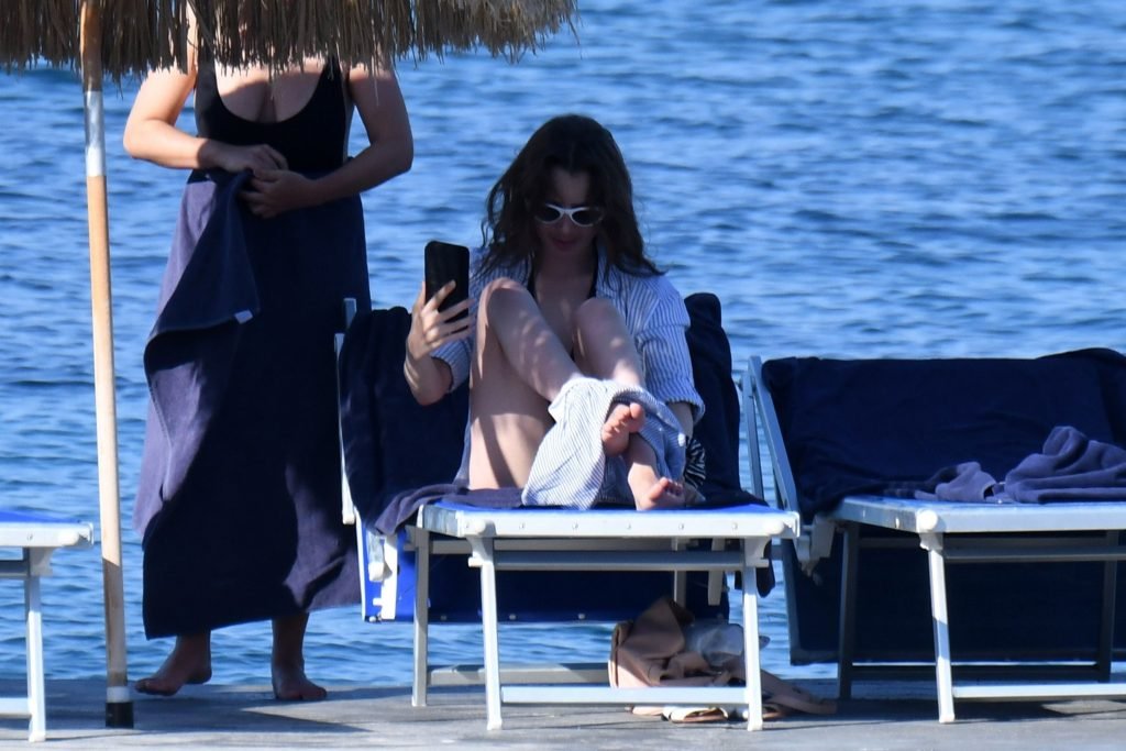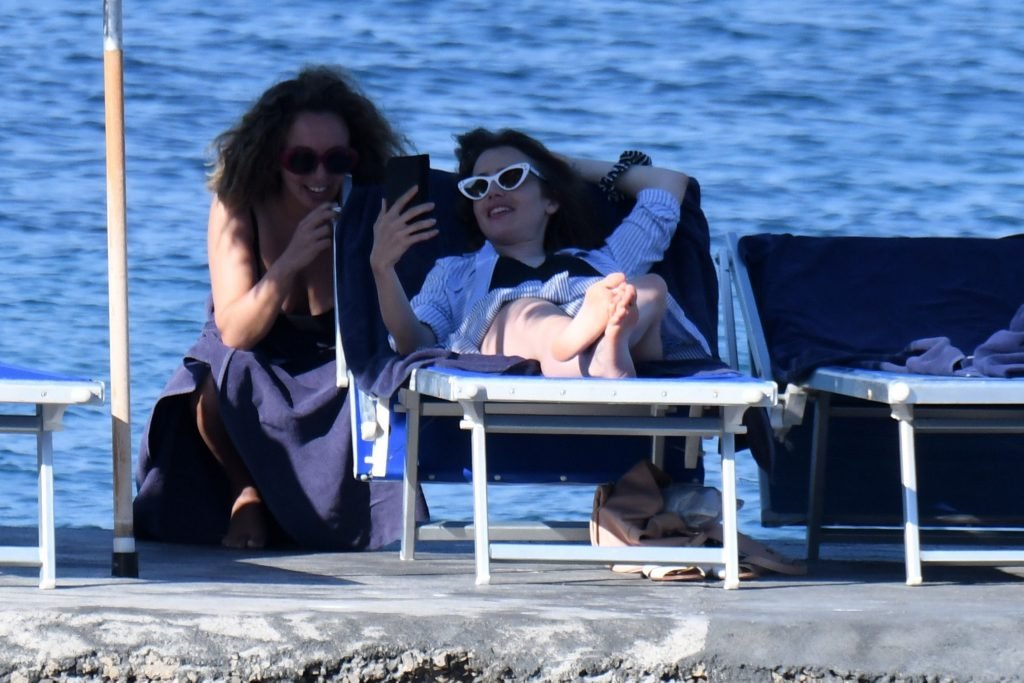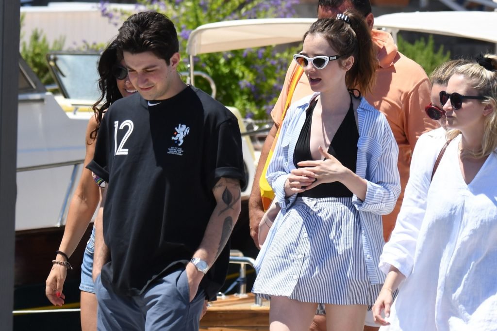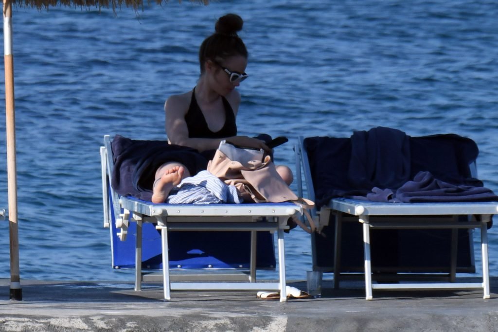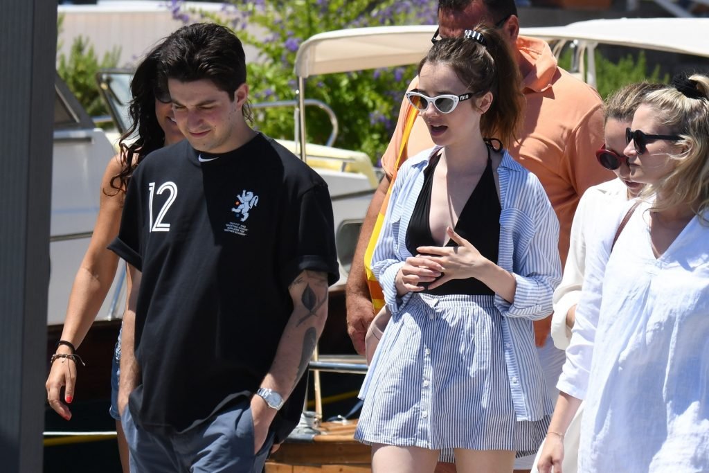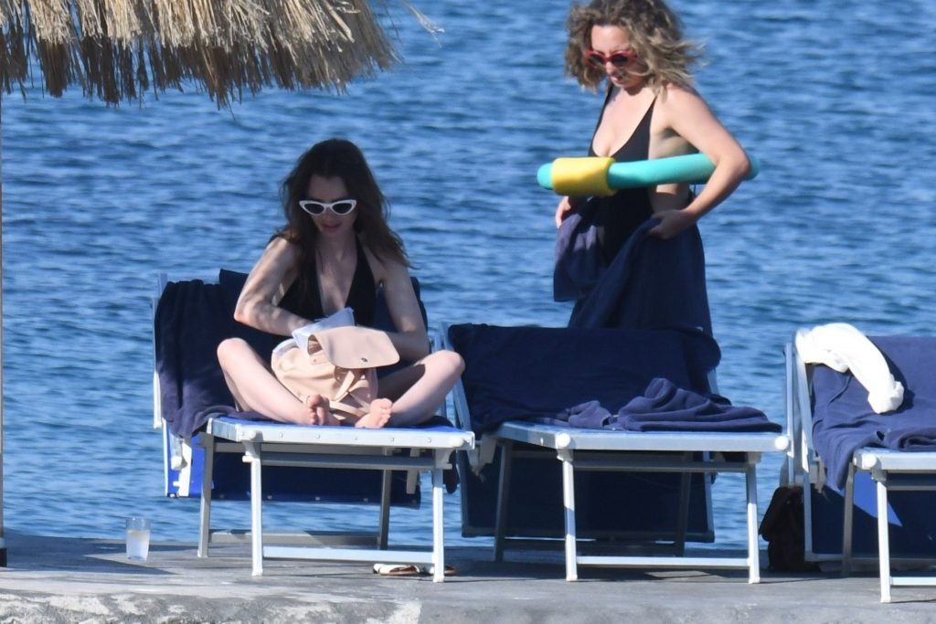 Lily Collins è stata avvistata in vacanza a Ischia, ha fatto il bagno nel mare con un costume da bagno nero. 18/07/2018.