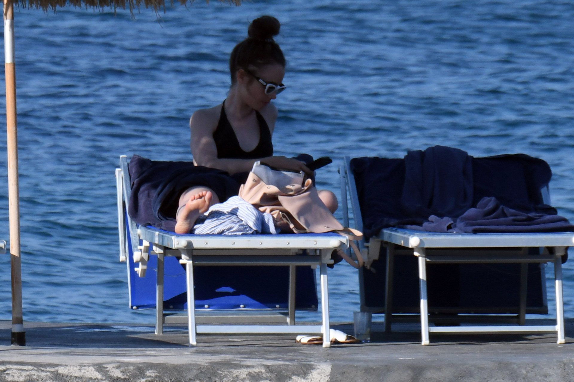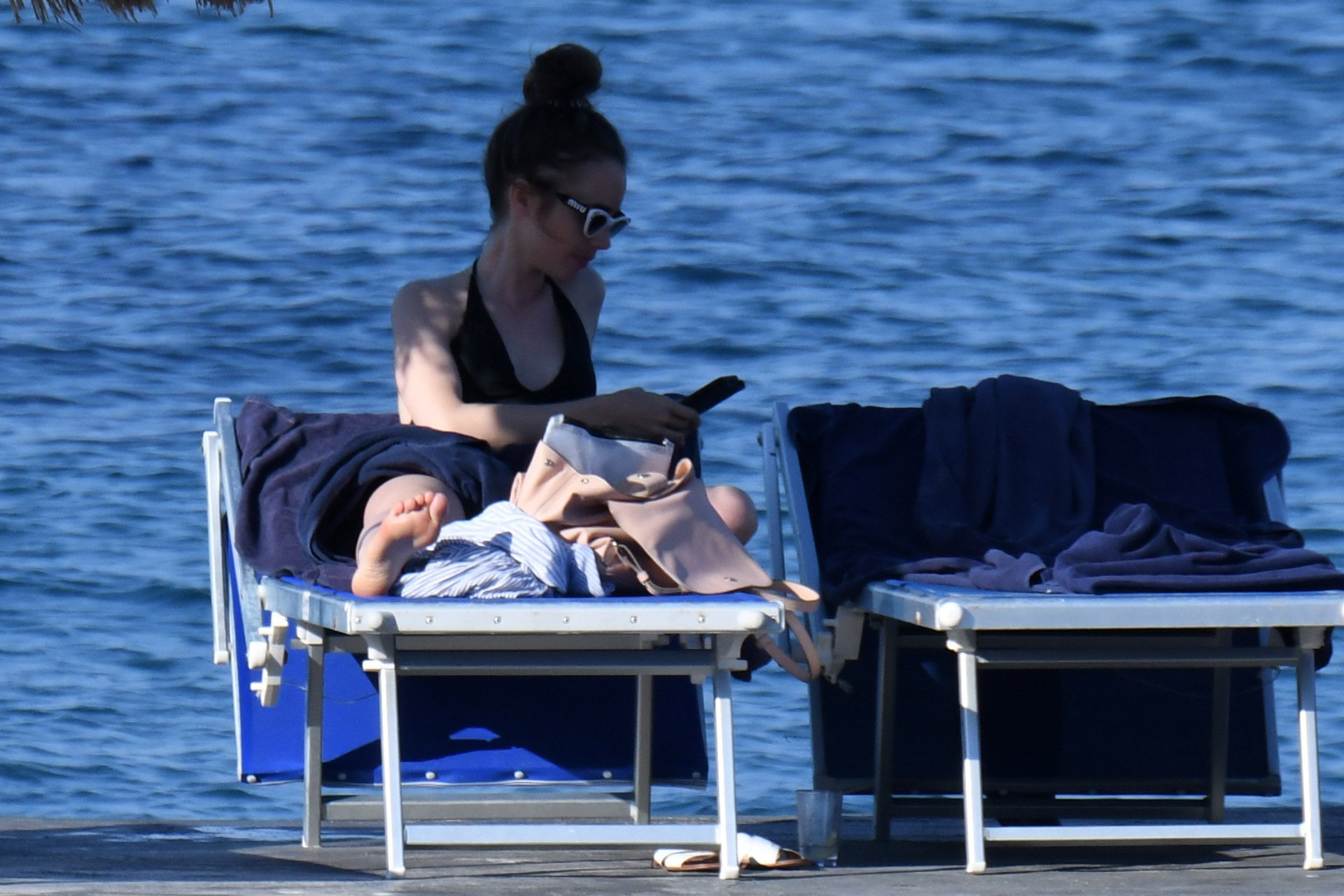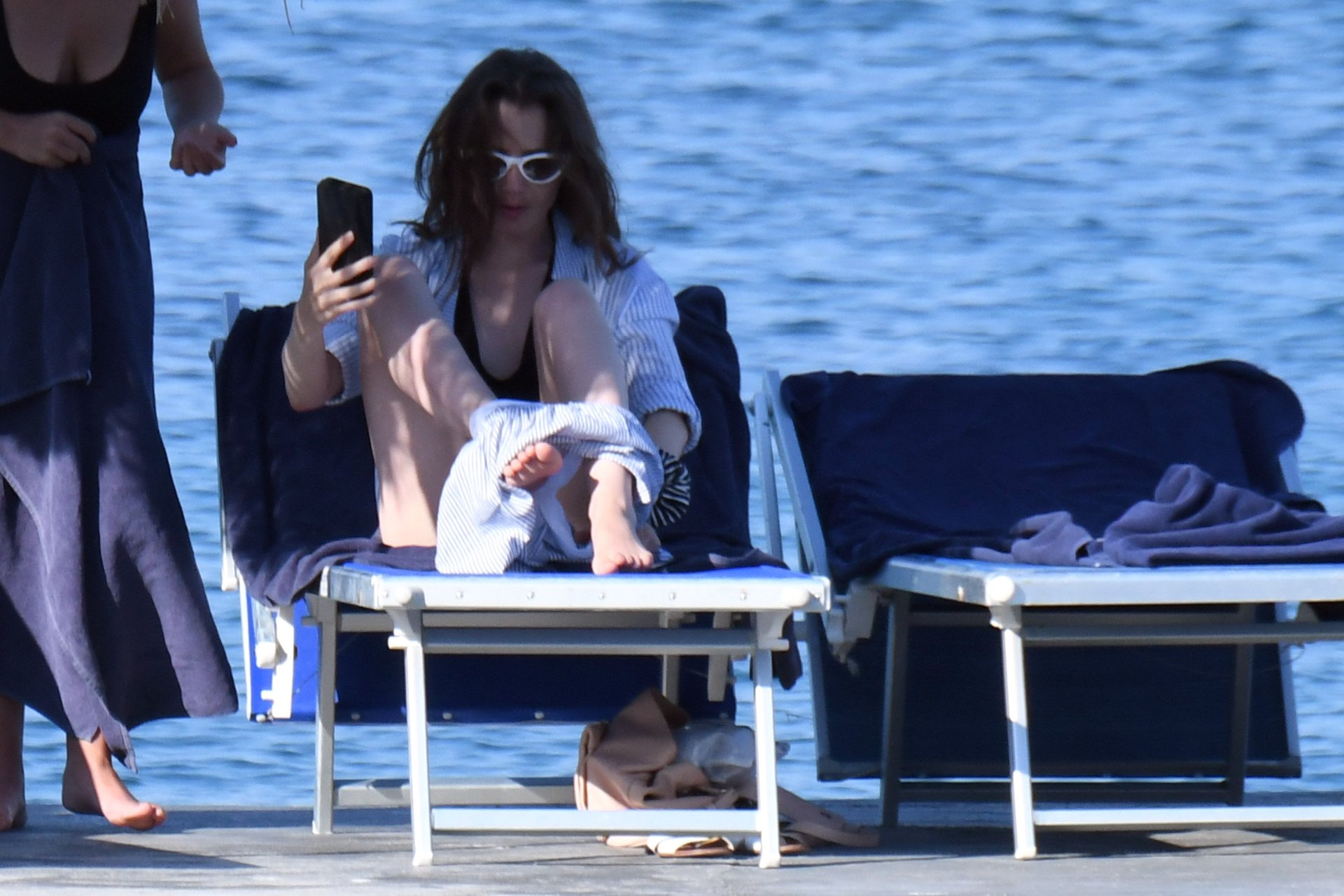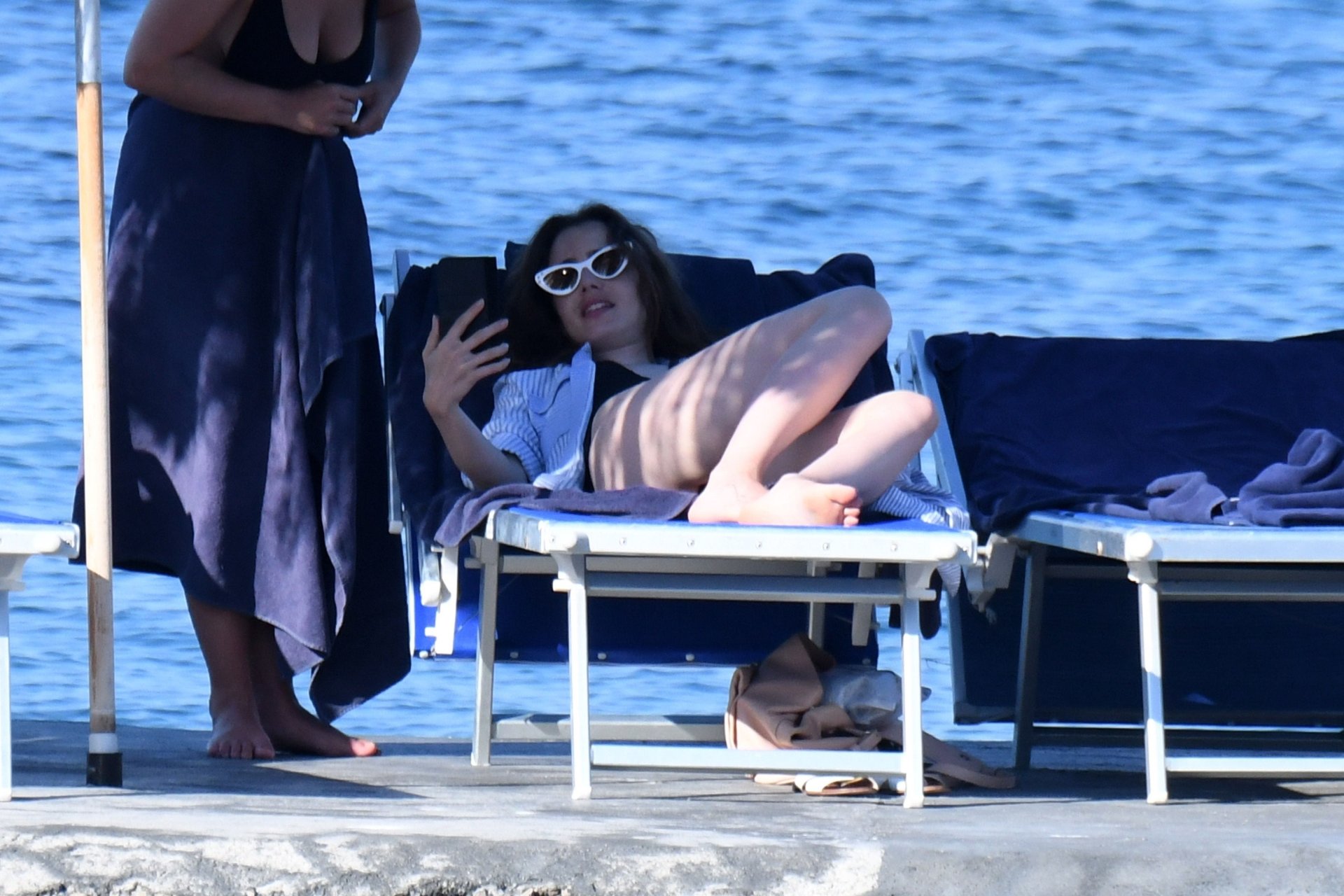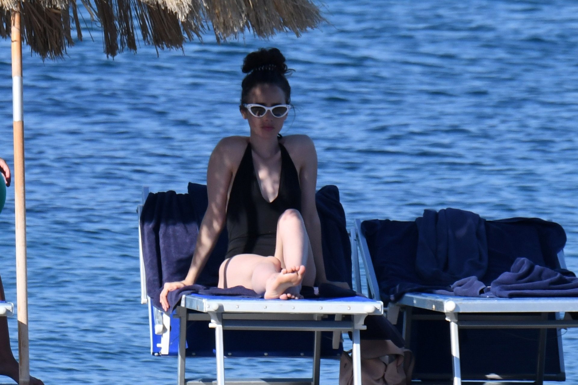 Lily Collins è stata avvistata in vacanza a Ischia, ha fatto il bagno nel mare con un costume da bagno nero. 18/07/2018.
