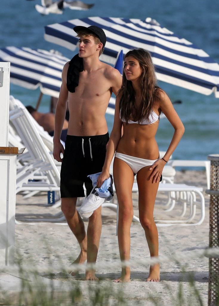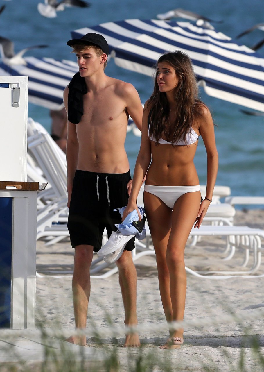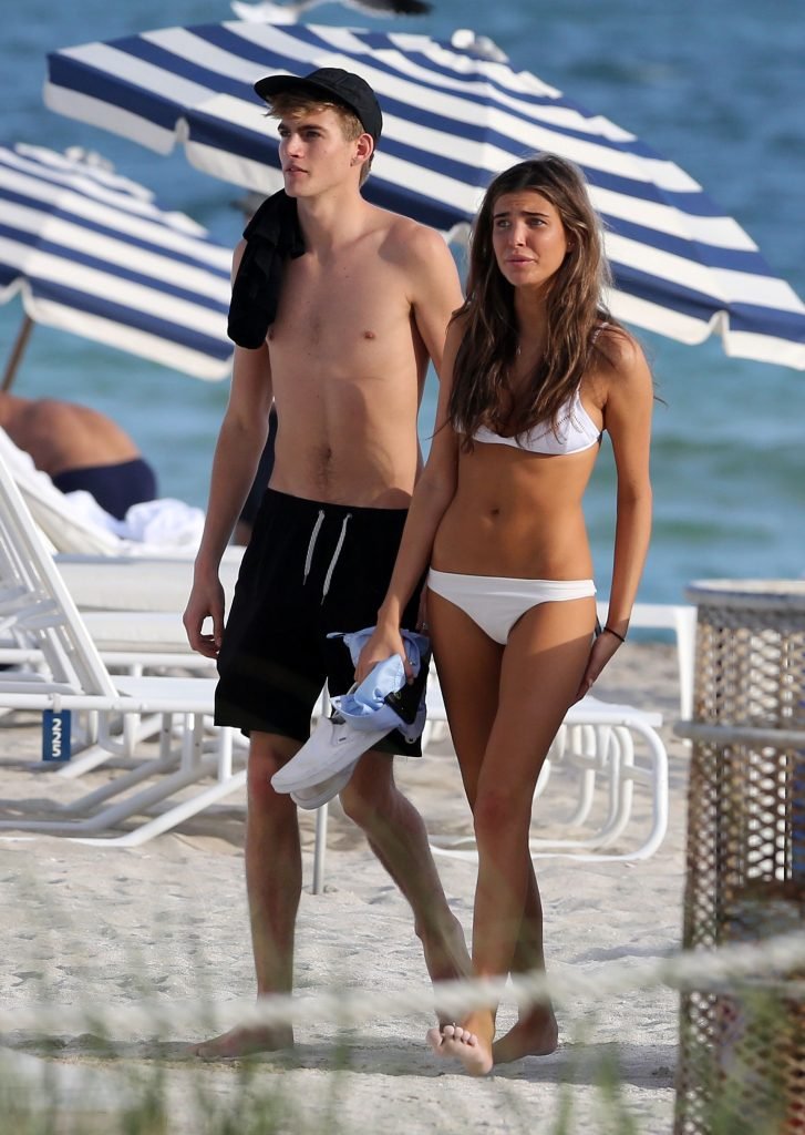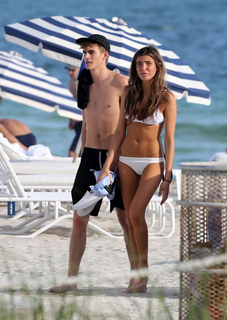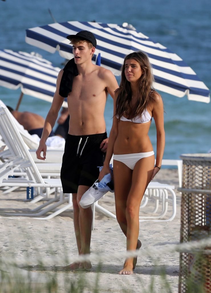 Presley Gerber si rilassa con la sua fidanzata in bikini Lily Moulton sulla spiaggia di Miami, 12/07/2017.