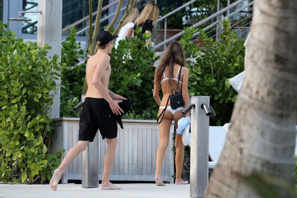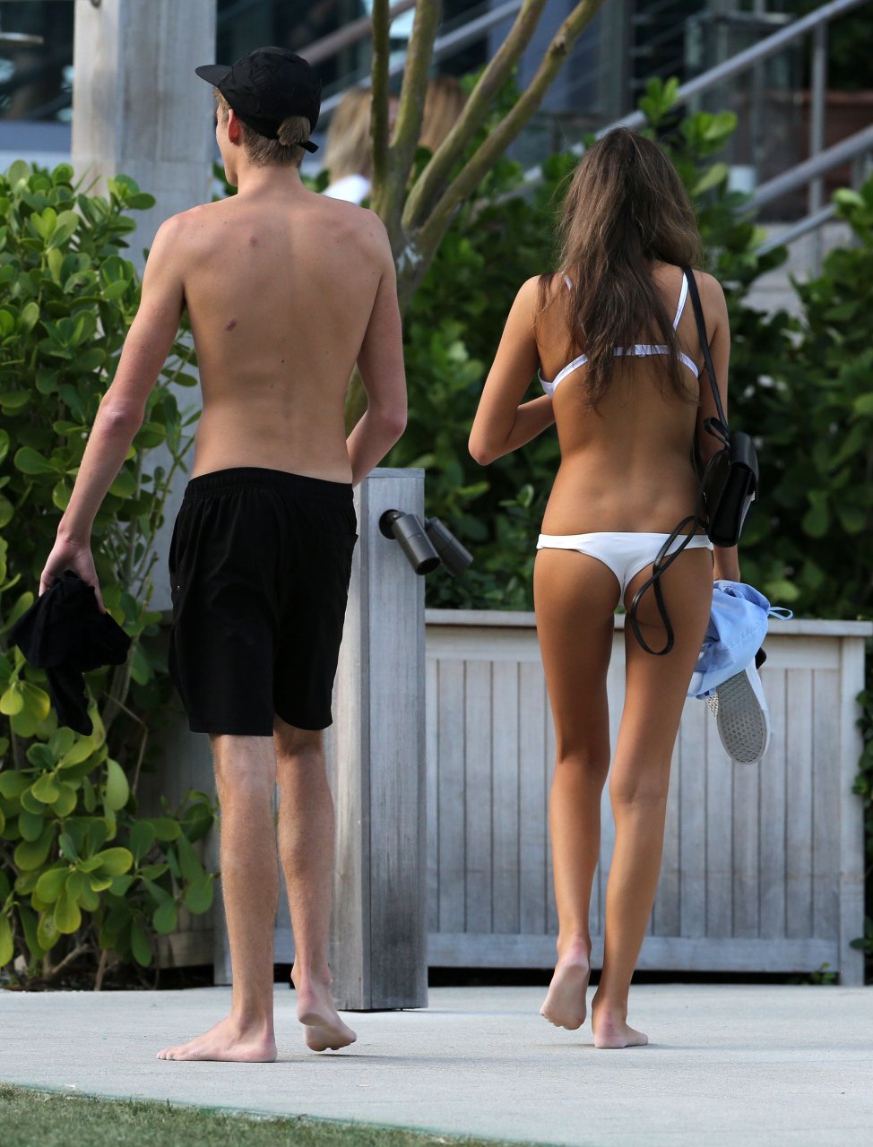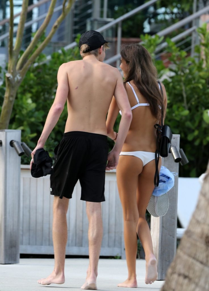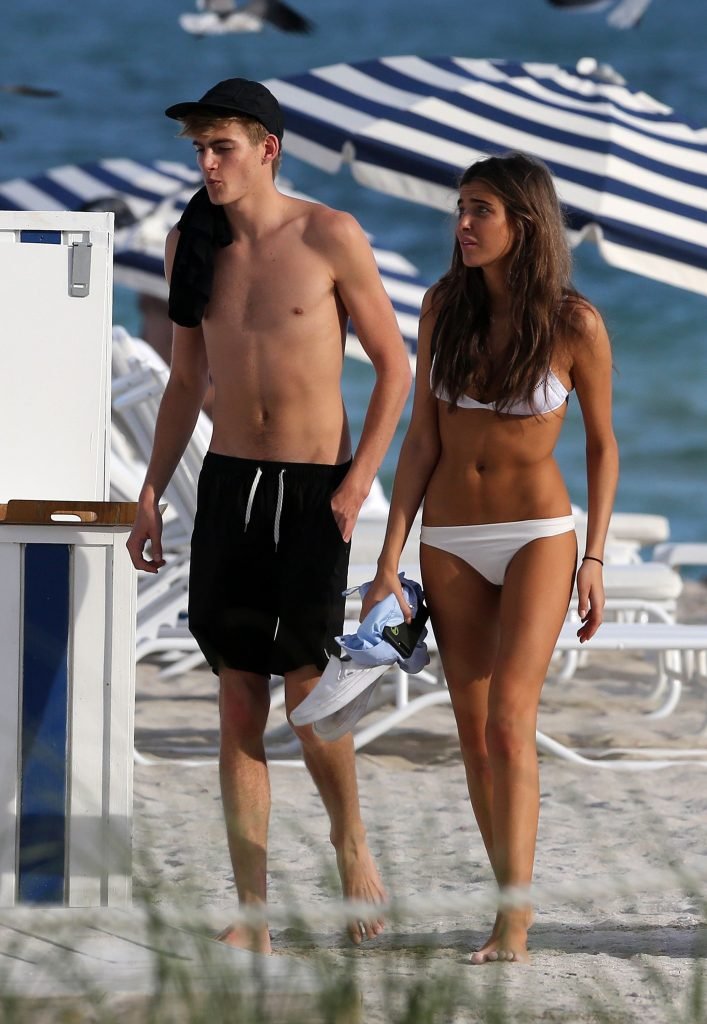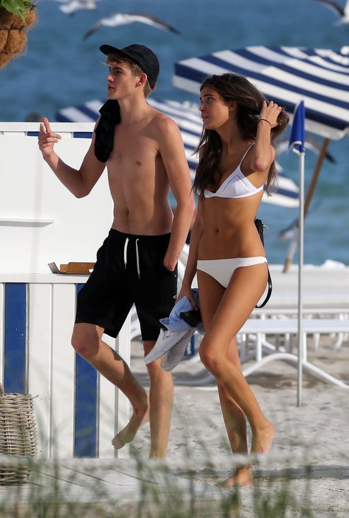 Presley Gerber si rilassa con la sua fidanzata in bikini Lily Moulton sulla spiaggia di Miami, 12/07/2017.