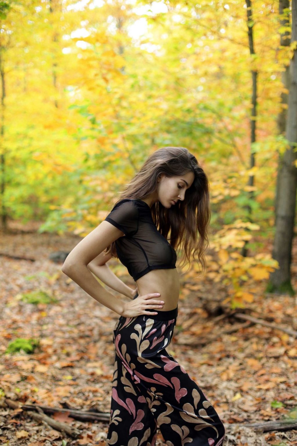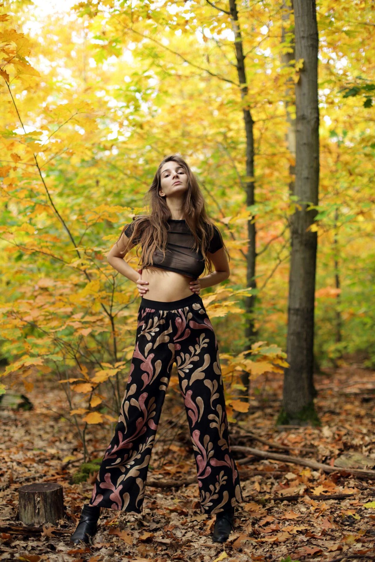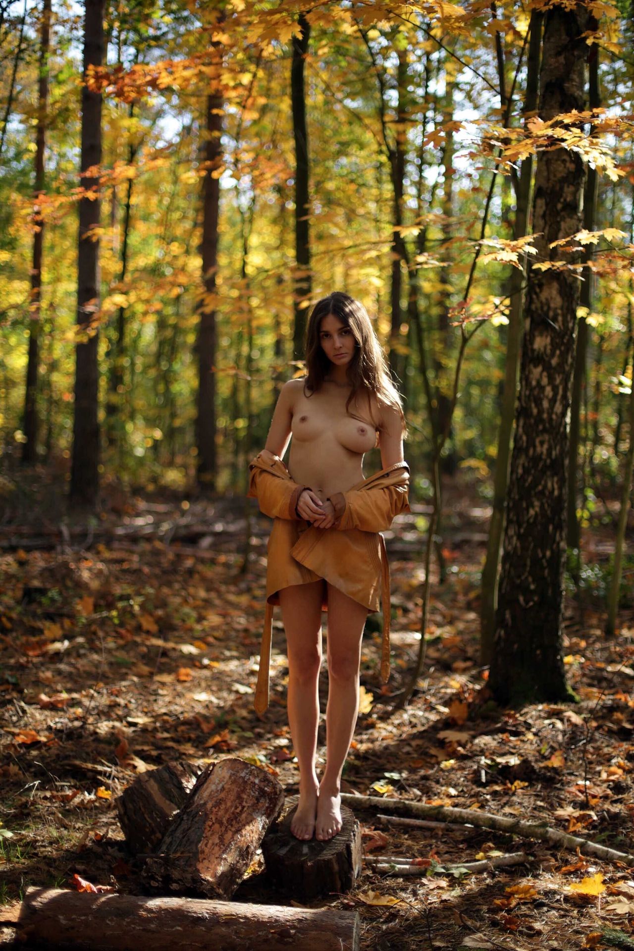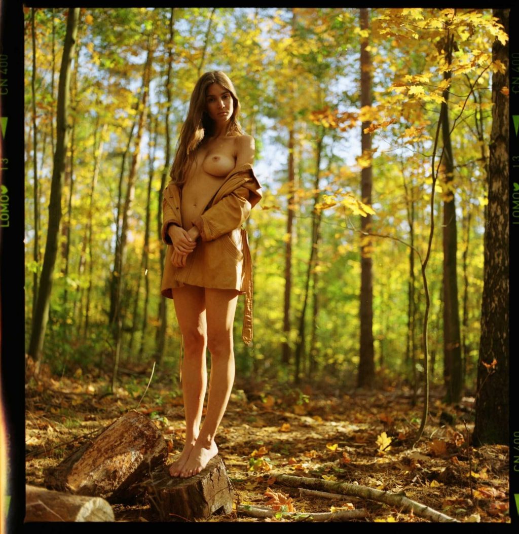 Model Lina Lorenza ha impreziosito la bellissima foresta autunnale con il suo corpo nudo naturale in un nuovo servizio fotografico di Maria Kotylevskaja (2019).