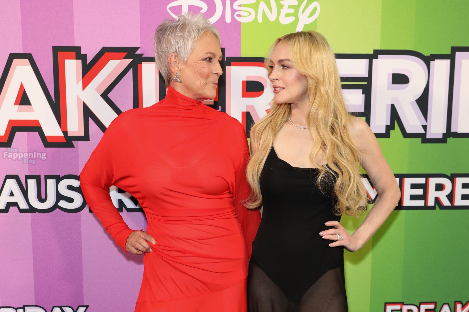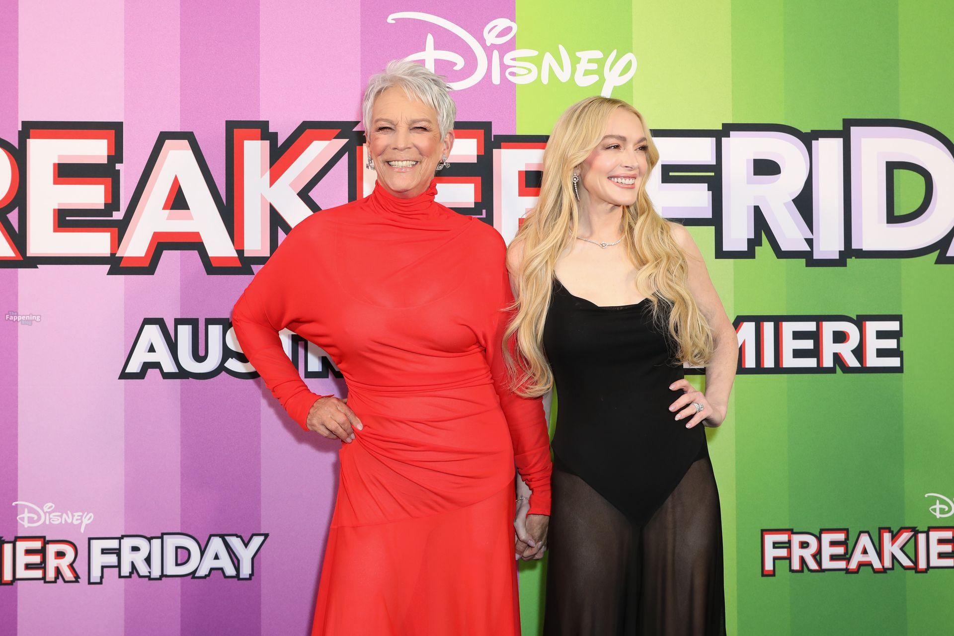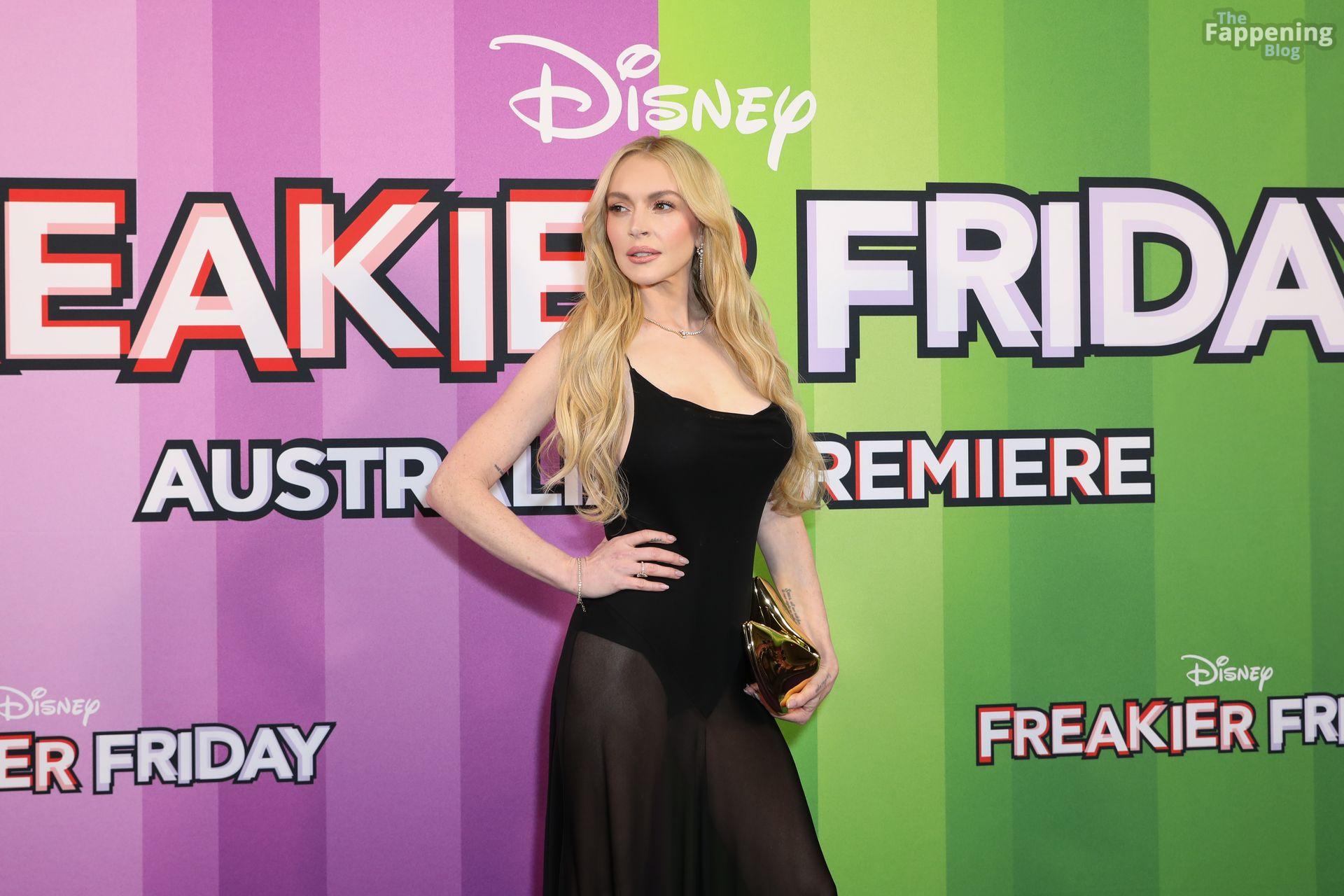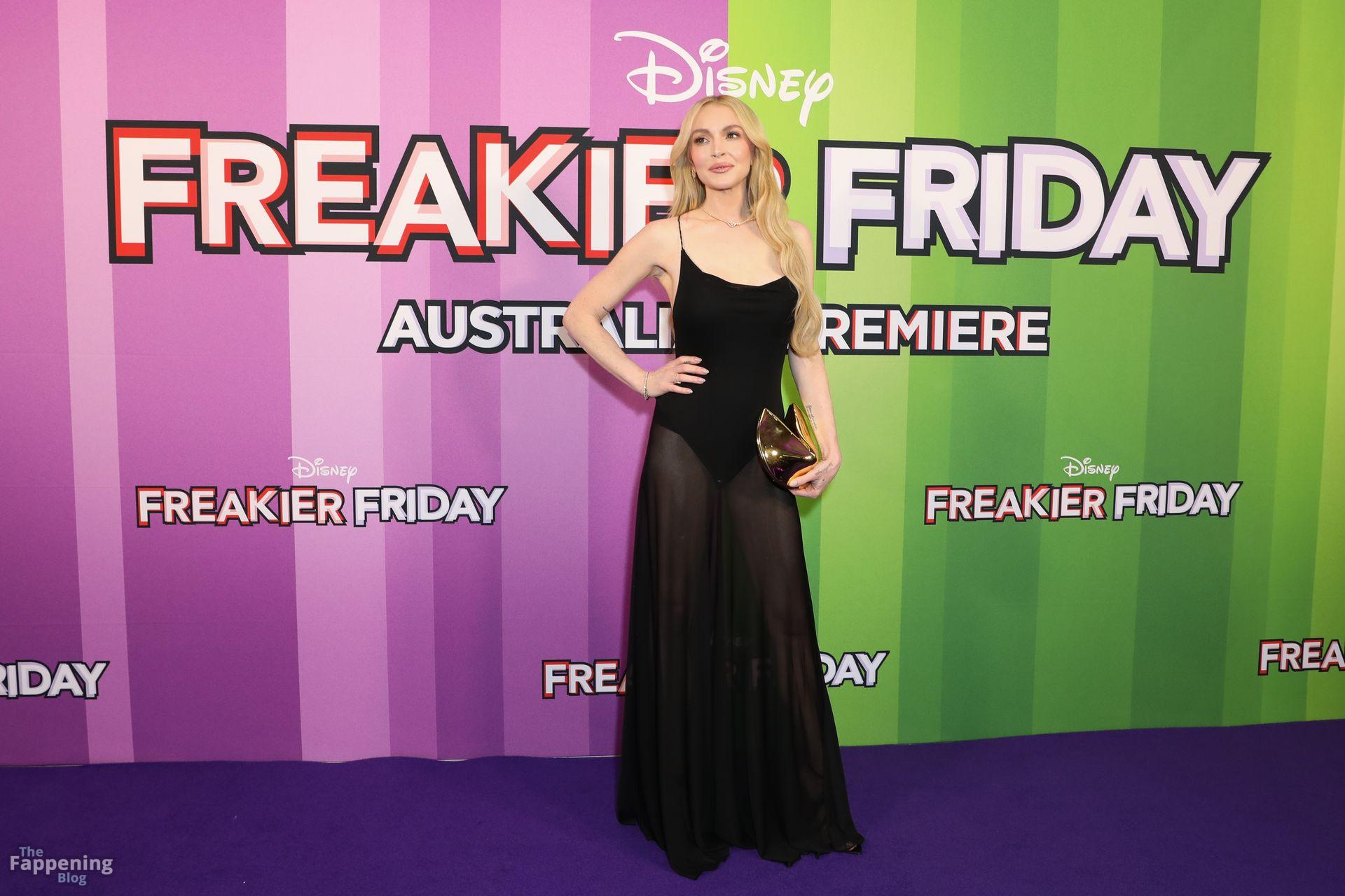 Lindsay Lohan è sexy in un abito nero trasparente alla prima di “Freakier Friday” (149 foto)
