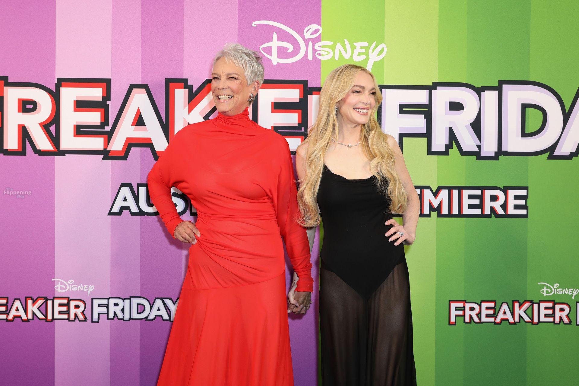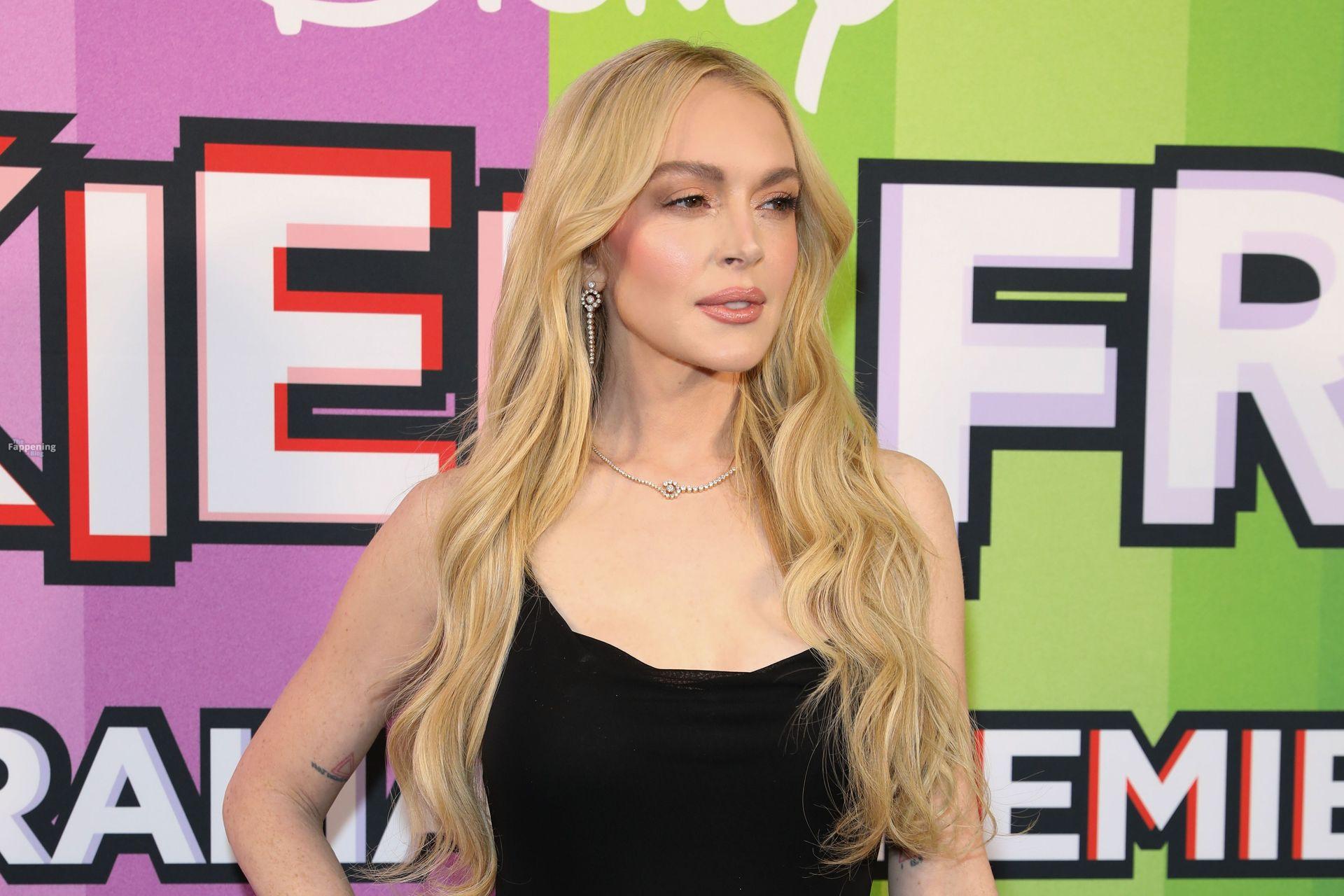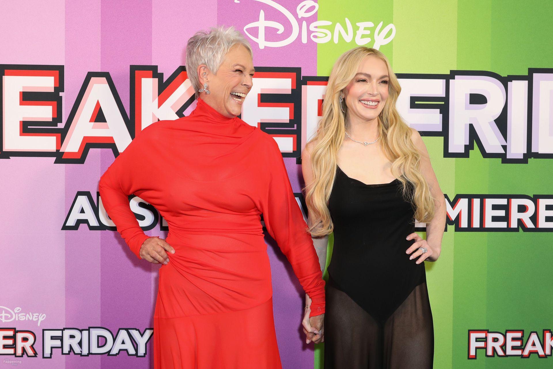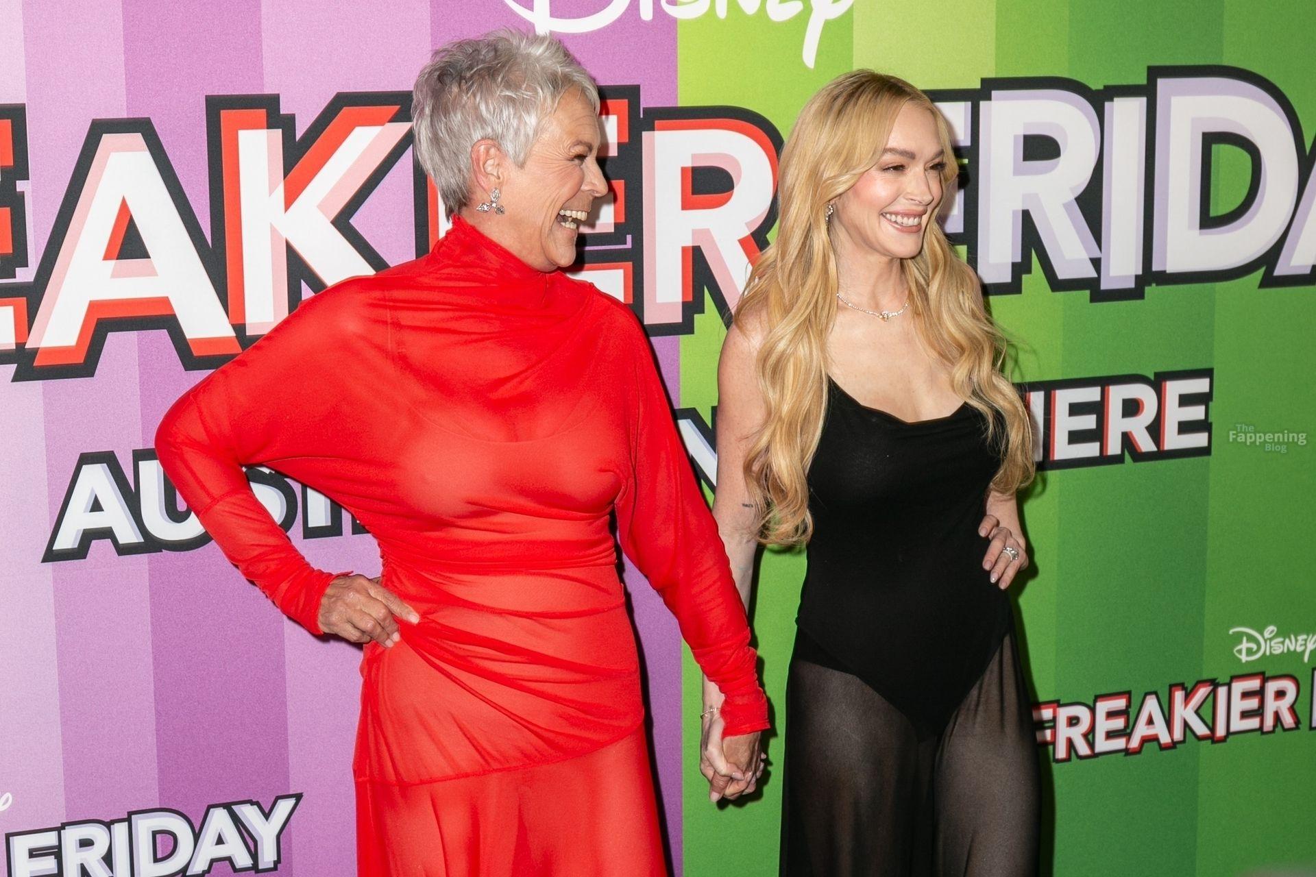 Lindsay Lohan è sexy in un abito nero trasparente alla prima di “Freakier Friday” (149 foto)