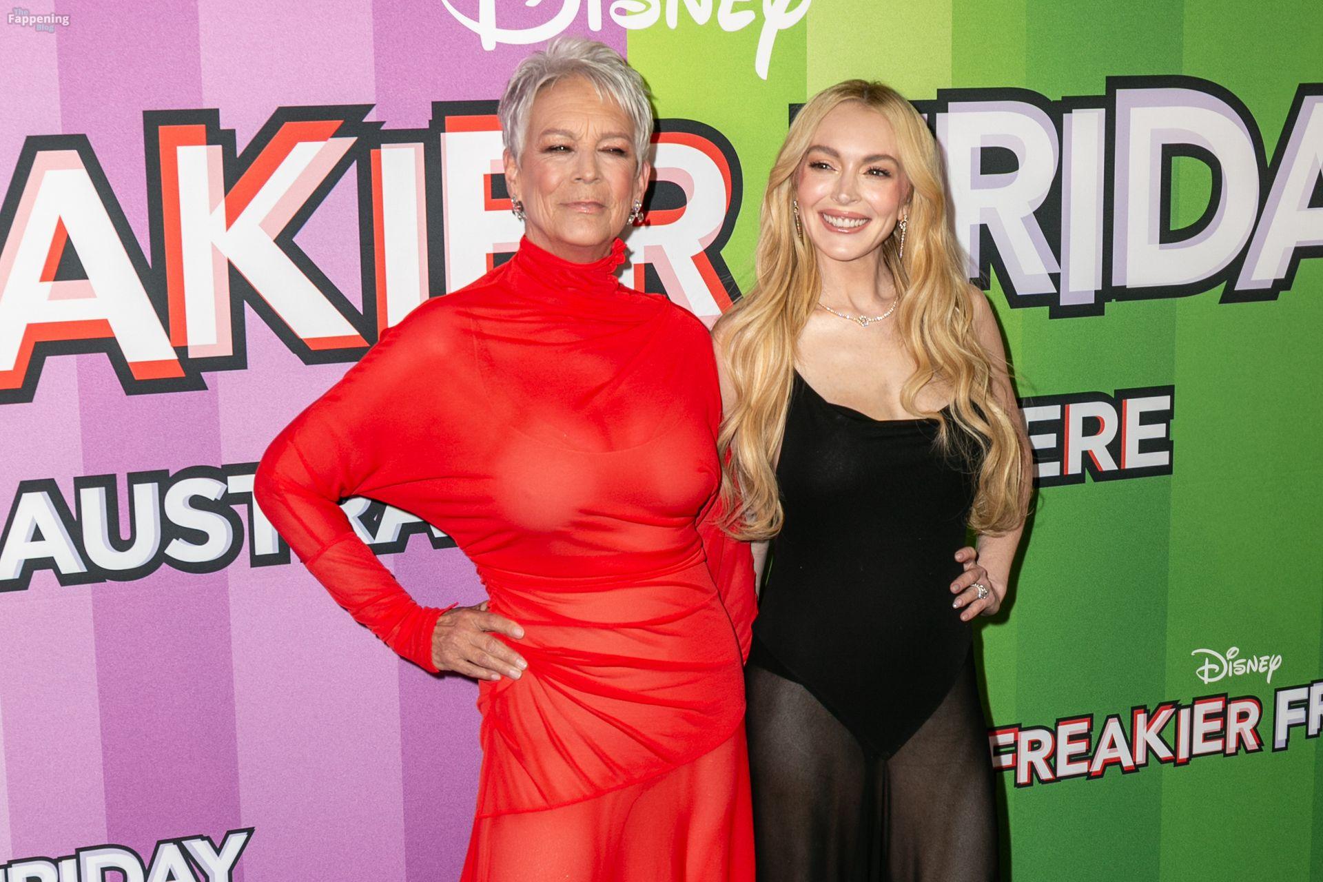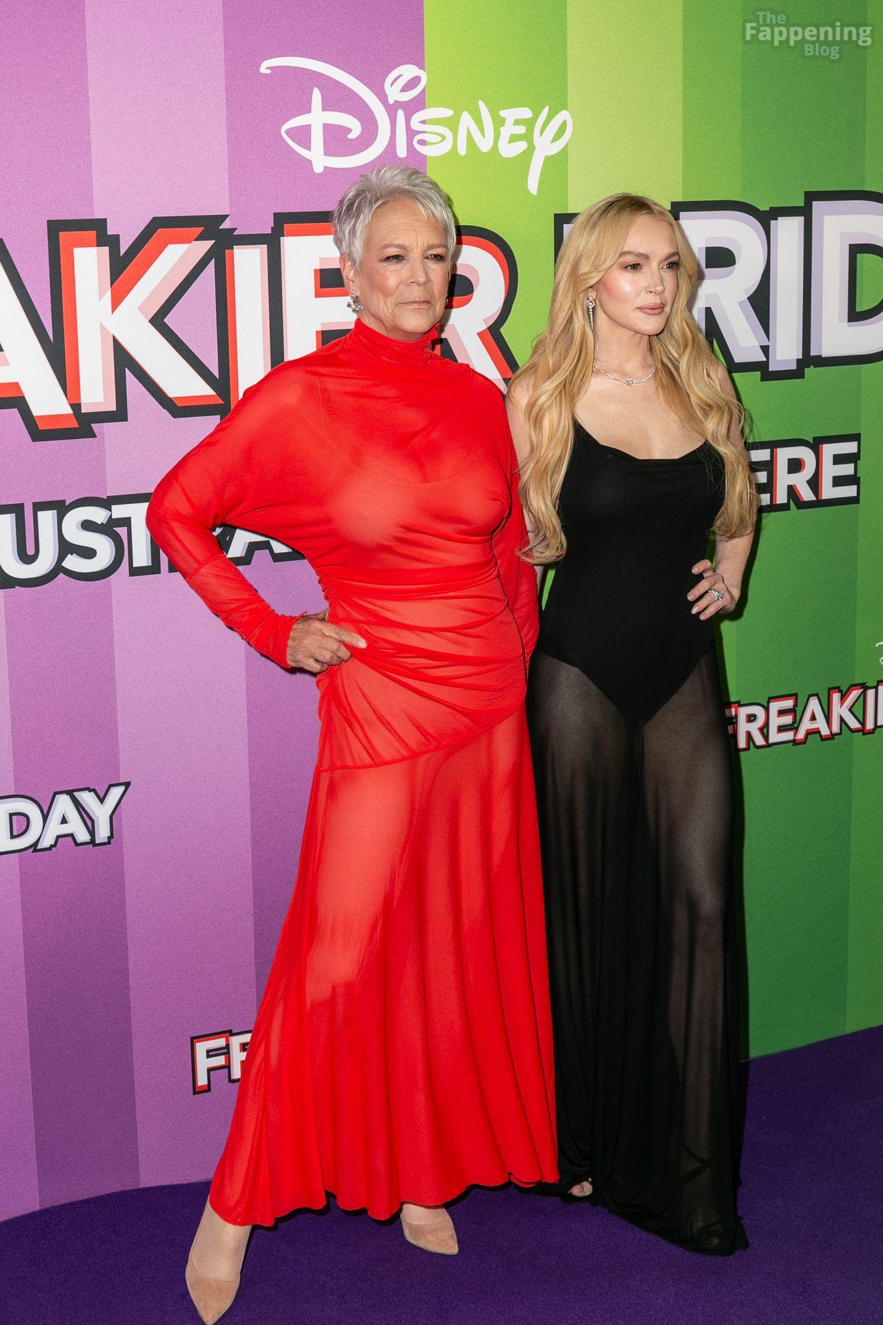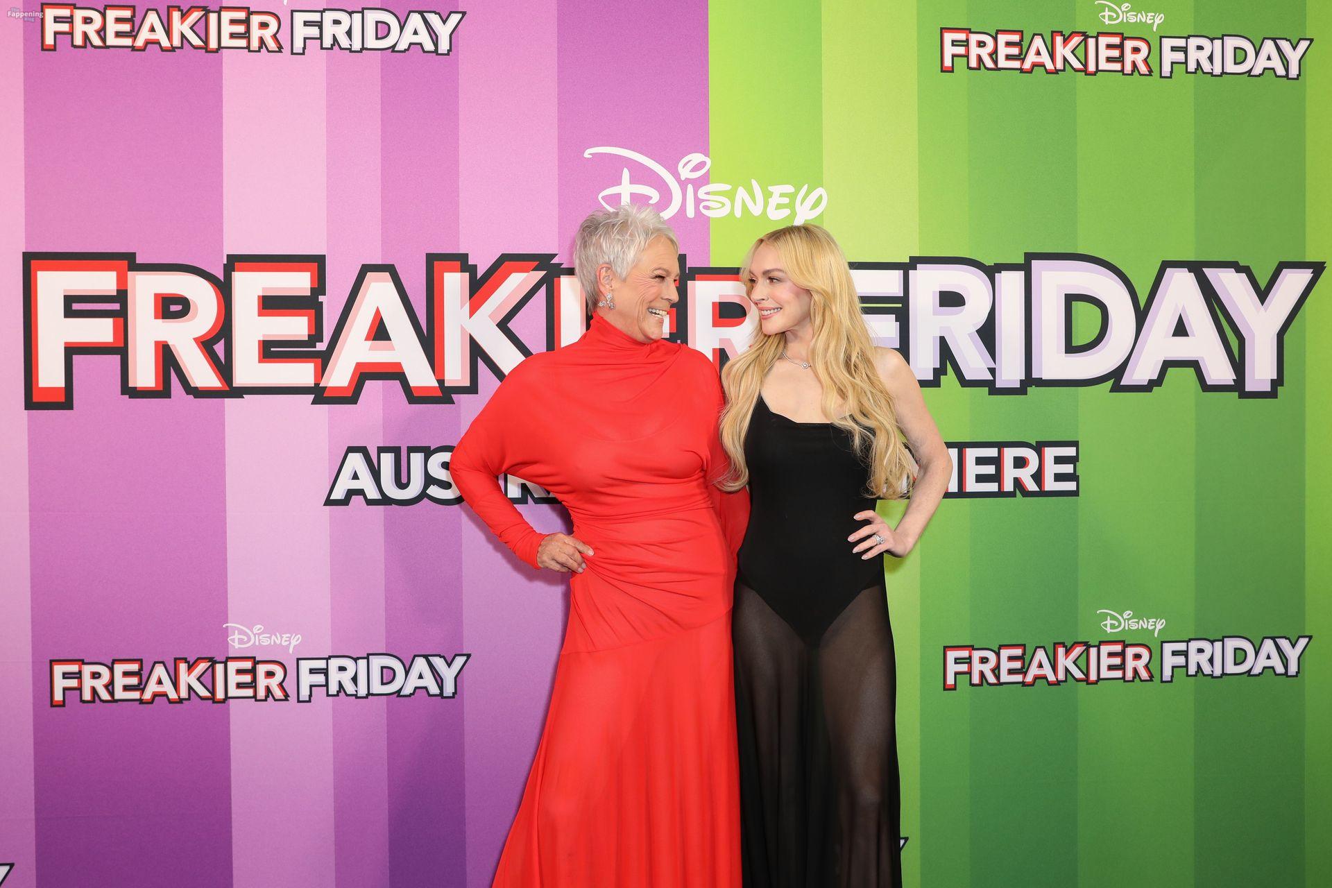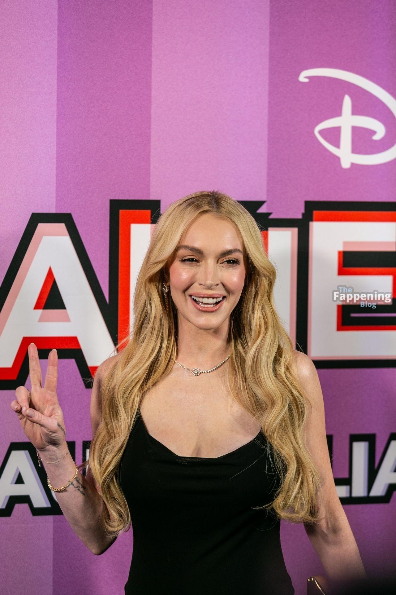 Lindsay Lohan è sexy in un abito nero trasparente alla prima di “Freakier Friday” (149 foto)