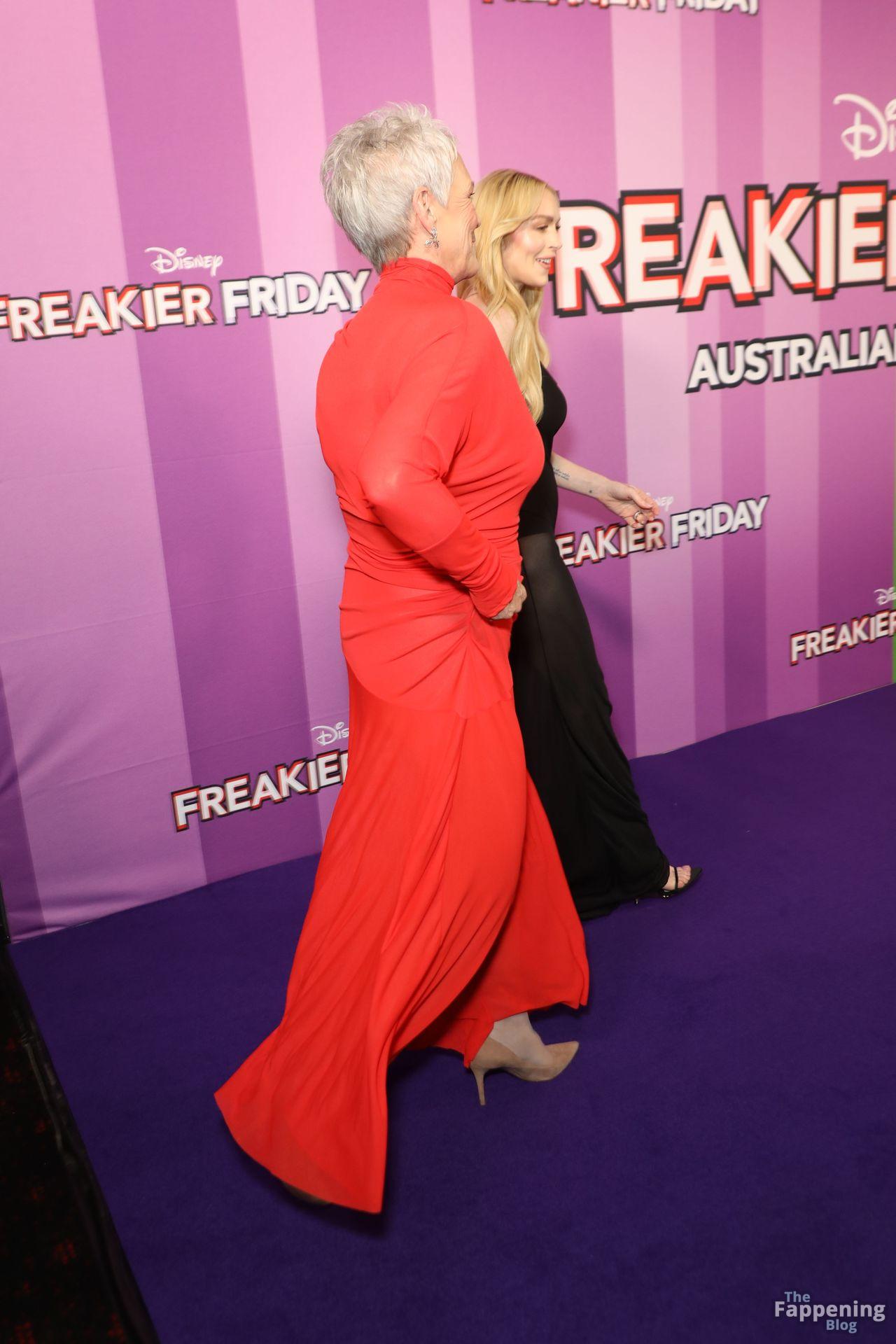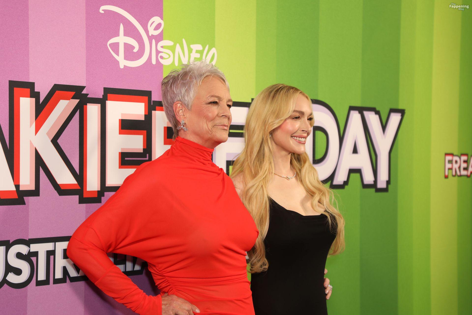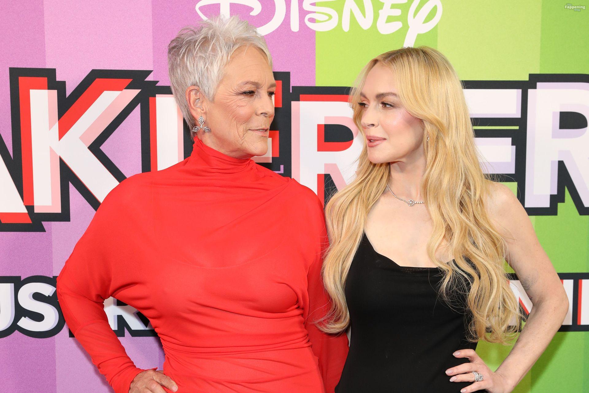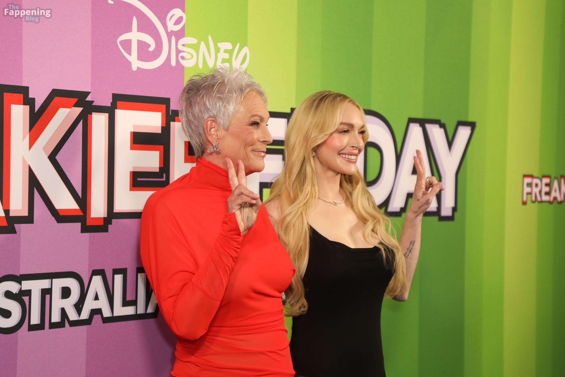 Lindsay Lohan è sexy in un abito nero trasparente alla prima di “Freakier Friday” (149 foto)