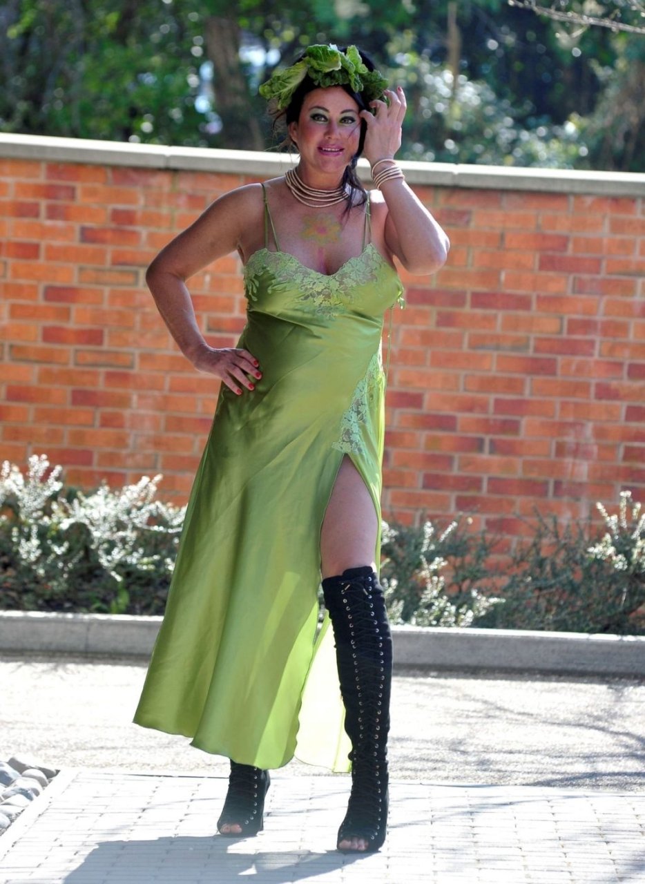 L’ex star di “Big Brother” Lisa Appleton vestita tutta di verde con sexy stivali al ginocchio mentre mostra la pelle mentre si dirige ad Aintree per il Ladies Day a Liverpool, 04/05/2019.