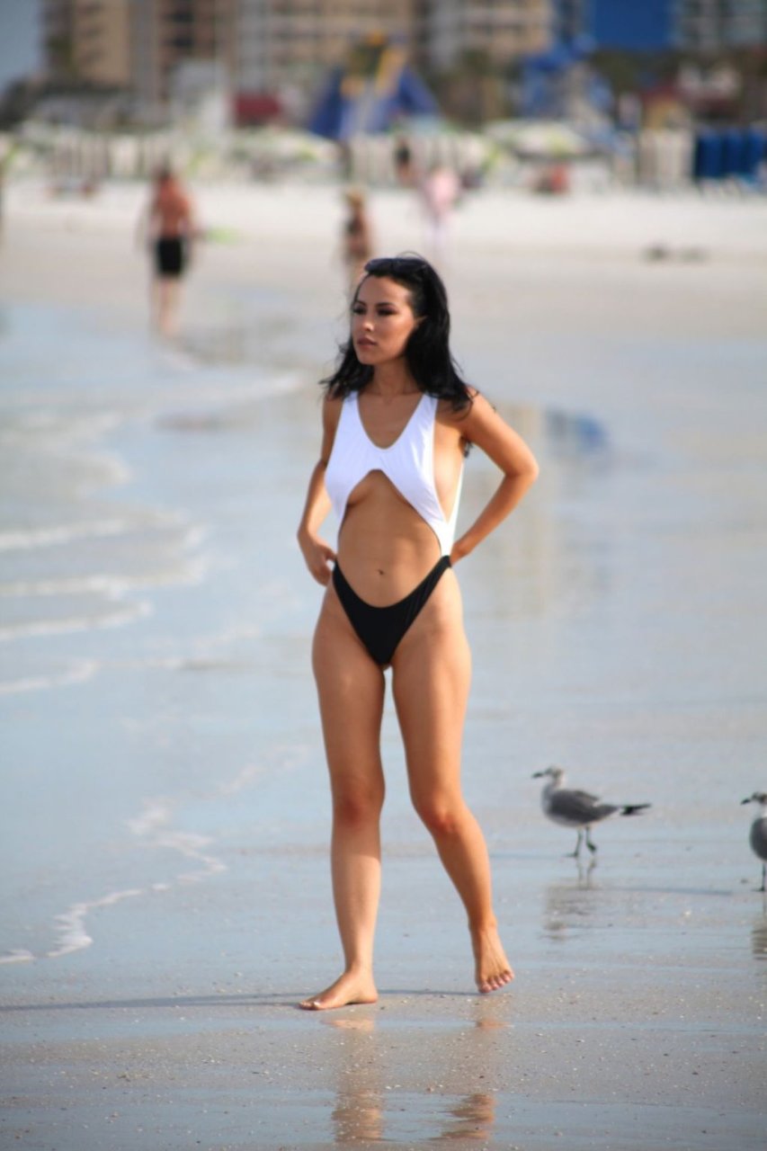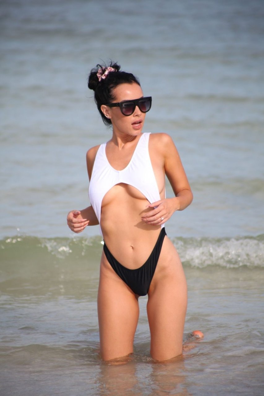 Ex reginetta di bellezza diventata designer di bikini e fashion blogger, Lisa Opie ha stupito i bagnanti con il suo costume intero appena accennato. La star tonica ha scattato molti selfie mentre si godeva il sole e le onde sulla spiaggia a Miami, 11/09/2018.
