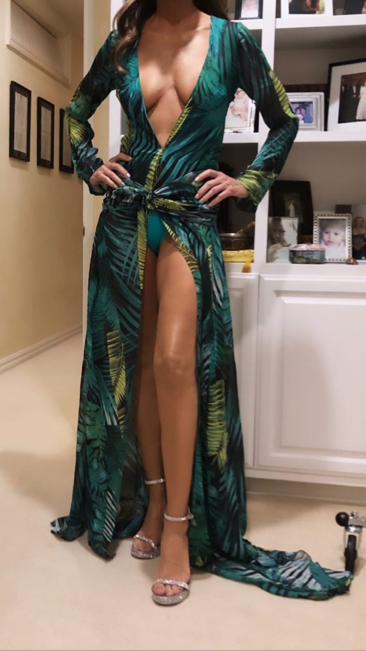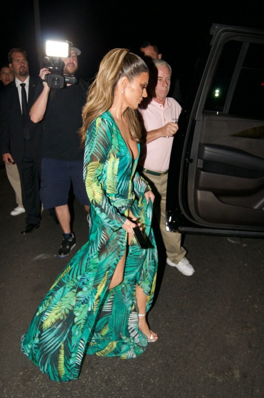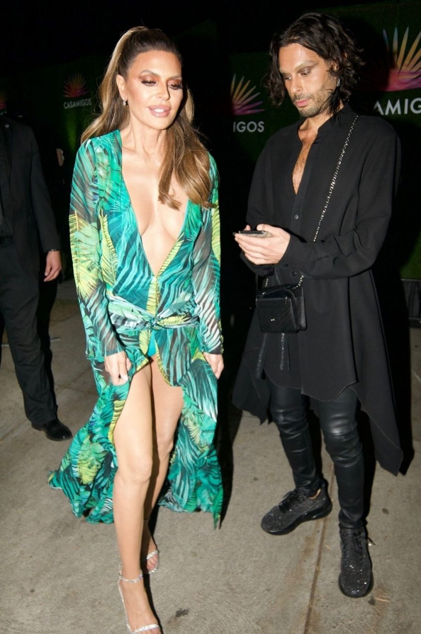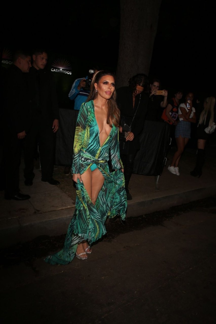 Leggy star della realtà Lisa Rinna si traveste da JLo, indossando un vestito verde con una scollatura profonda, mostrando le sue mutandine per la festa di Halloween Casamigos a Beverly Hills, 25/10/2019.
