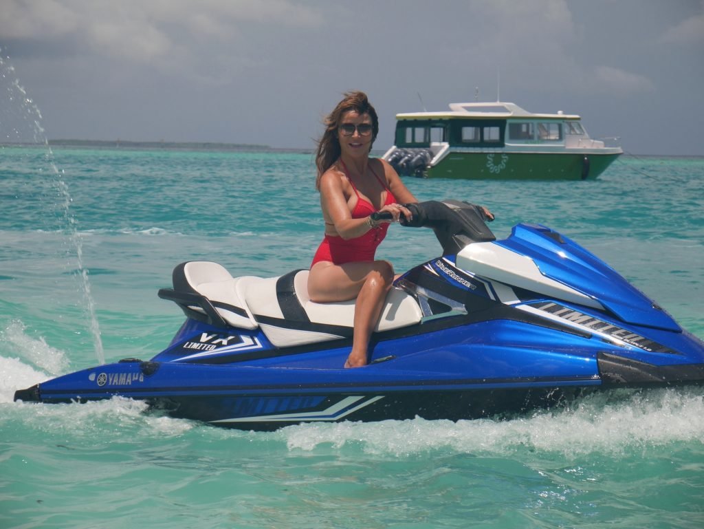 Lizzie Cundy è stata vista al Sun Siyam Iru Fushi Resort alle Maldive, 09/10/2018. È riuscita a ritagliarsi un po’ di tempo per rilassarsi a bordo piscina e si è divertita un po’ con un jetski.