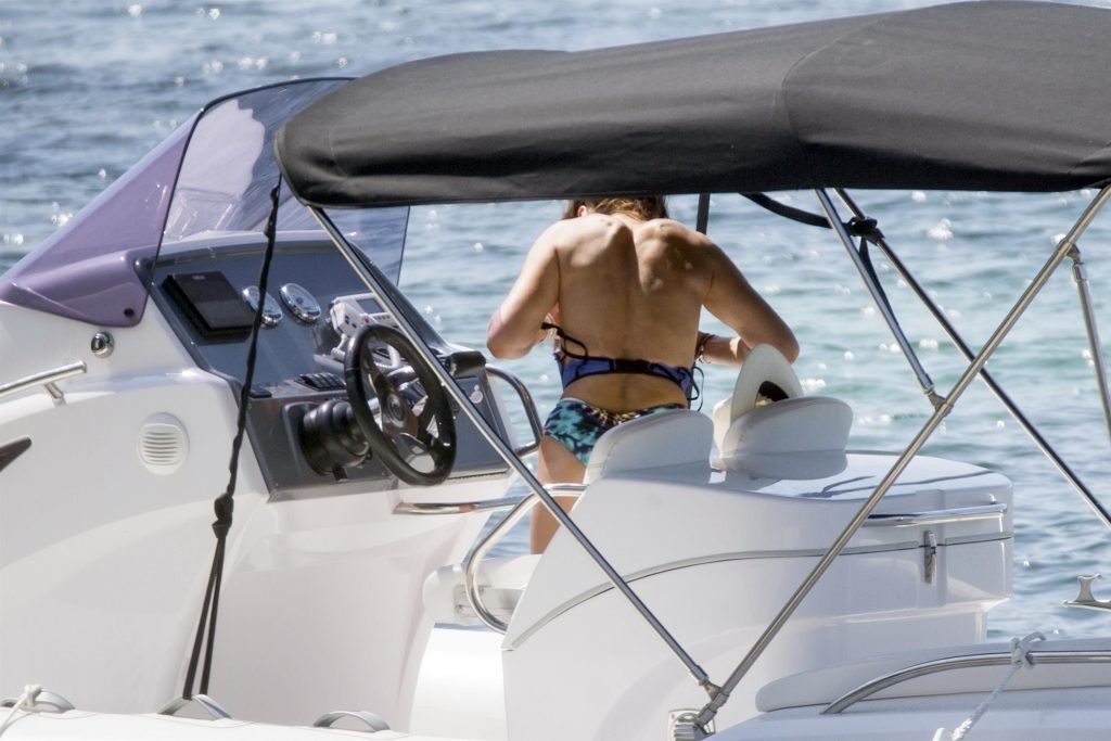 La star inglese della TV Lizzie Cundy si gode la sua vacanza sulla spiaggia a Maiorca, 08/06/2017.