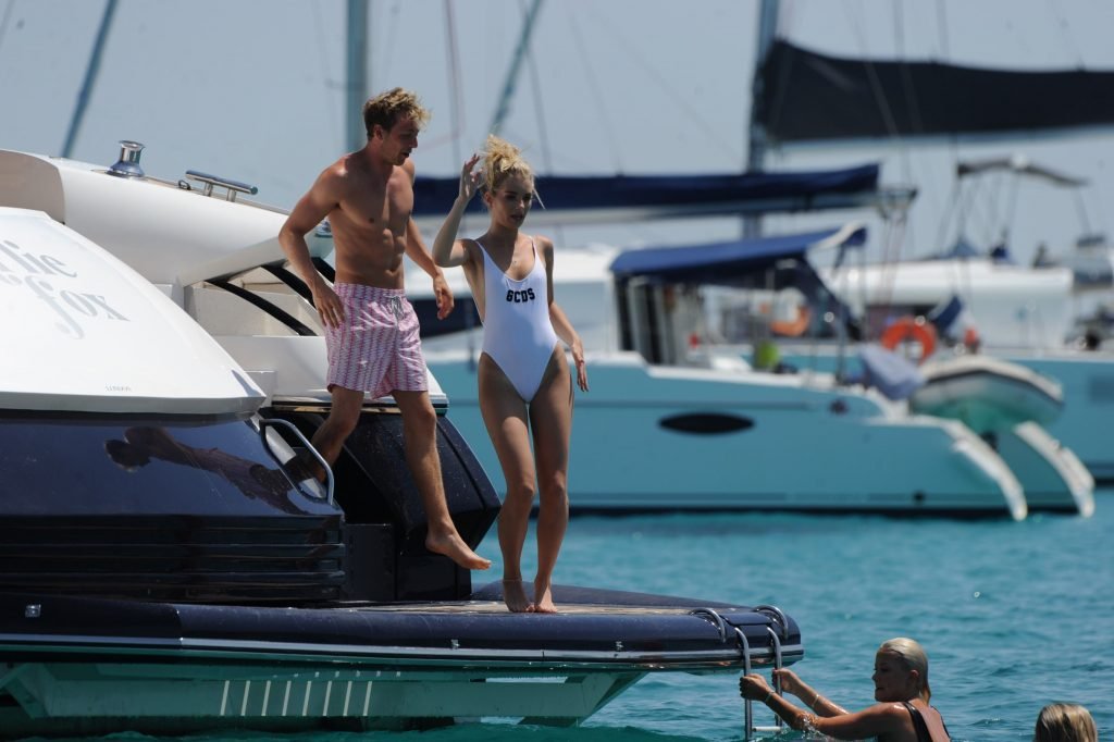 Lottie Moss, Emily Blackwell e altre ragazze festeggiano il compleanno di Frankie Gaff su uno yacht a Formentera, 16/06/2017. Charlotte Moss è una modella e sorella minore di Kate Moss di Londra. Età: 19 anni.