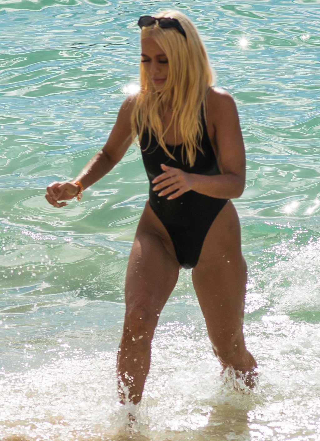 La sorella di Louis Tomlinson, Lottie, è stata avvistata sulla spiaggia a Barbados mentre si gode le vacanze con un costume da bagno a perizoma, 01/04/2020.