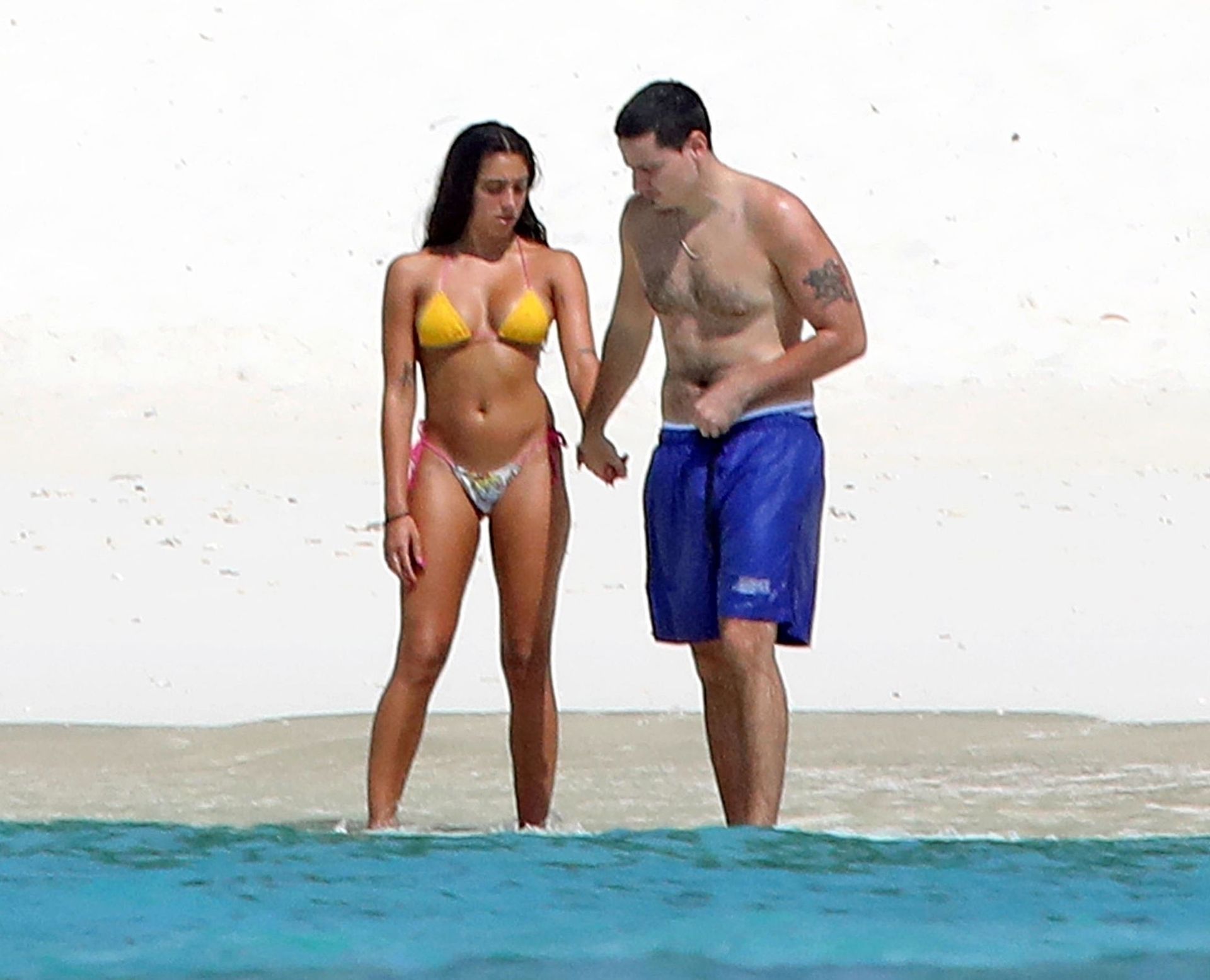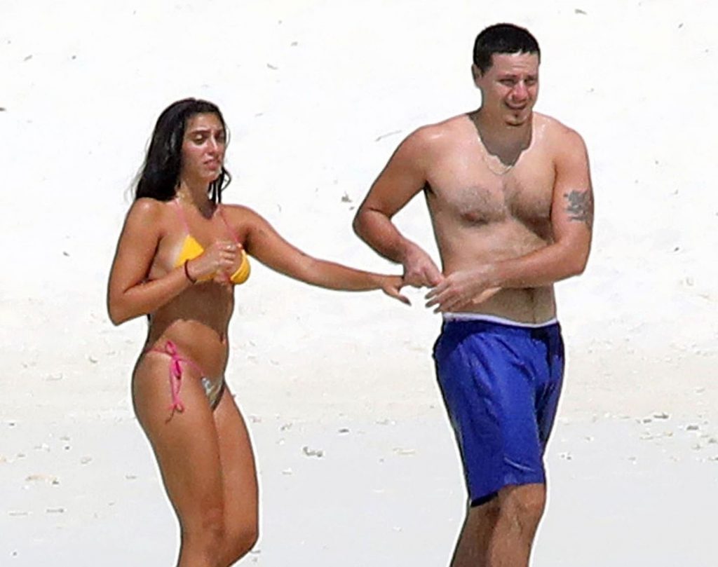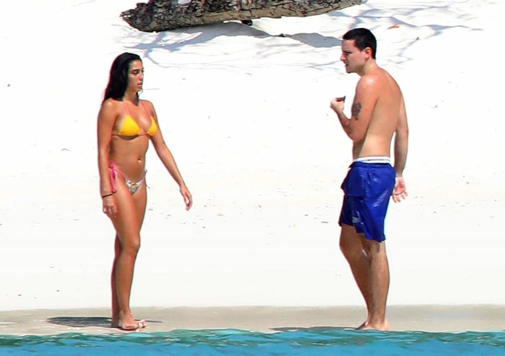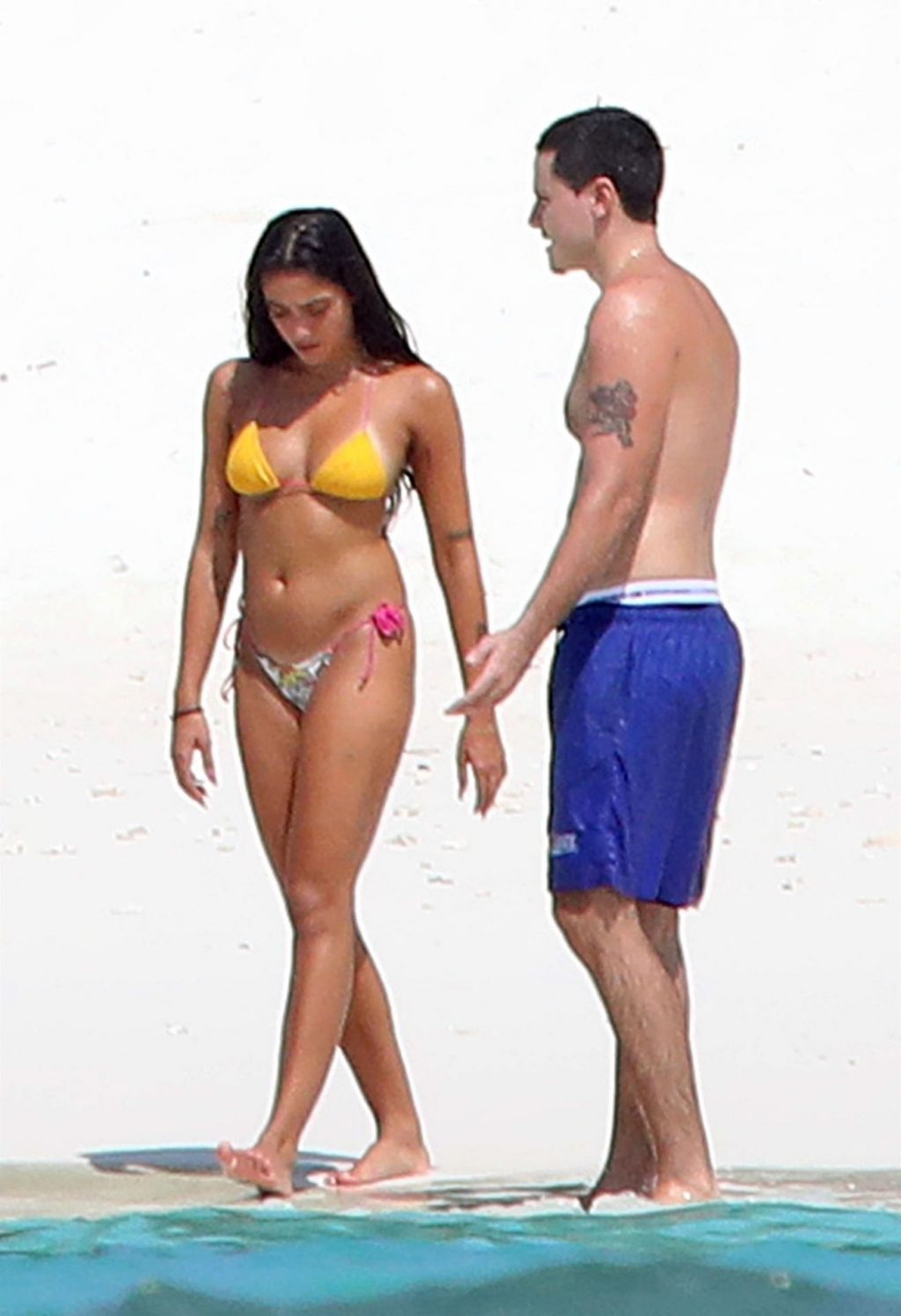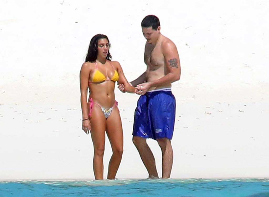 La 23enne ha brillato sotto il sole a 30 gradi indossando il suo piccolo bikini succinto, ma le foto mostrano Lourdes con una serie di espressioni preoccupate mentre si avvicinava con timore al mare insieme al suo fidanzato, Jonathan Puglia.