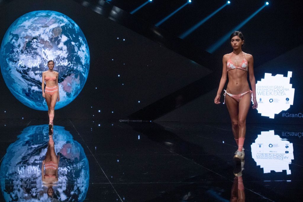 La modella snella Lucia Rivera è stata fotografata sulla passerella a Banana Moon, Chaxi Canarias, Diazar, Elena Morales, Gonzales, Guillermina Baeza, Maldito Sweets, Ory, Pomenline, Roman Peralta, e che ama gli spettacoli durante la Swimwear Fashion Week – Maspalomas, Gran Canaria, Isole Canarie, 10/04/2019.