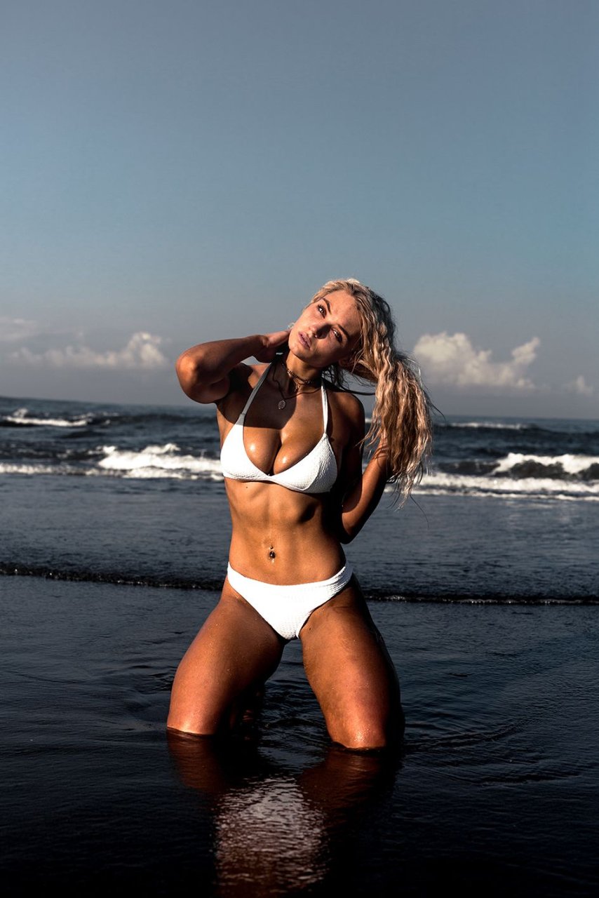 La concorrente di “Love Island” Lucie Donlan infiamma con un bikini bianco a Bali, Indonesia (2019). La surfista di 21 anni di Newquay ha posato per le foto glamour nude (coperte) all’inizio di quest’anno, prima della sua apparizione nel reality show.