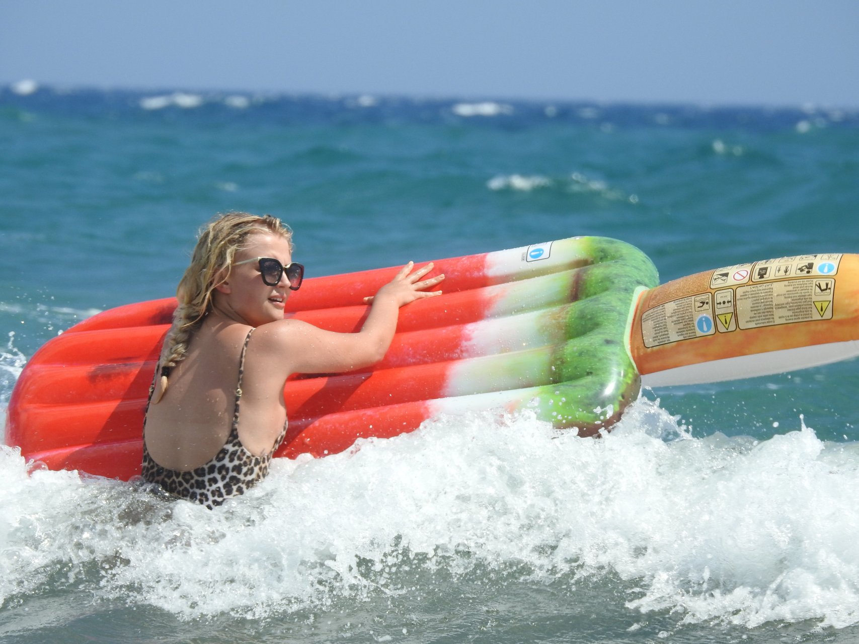 Coronation Street star Lucy Fallon si diverte tra le onde con un costume da bagno leopardato. L’attrice ventiduenne giocava con gonfiabili mentre era accompagnata dal fidanzato Tom Leech a Cipro.