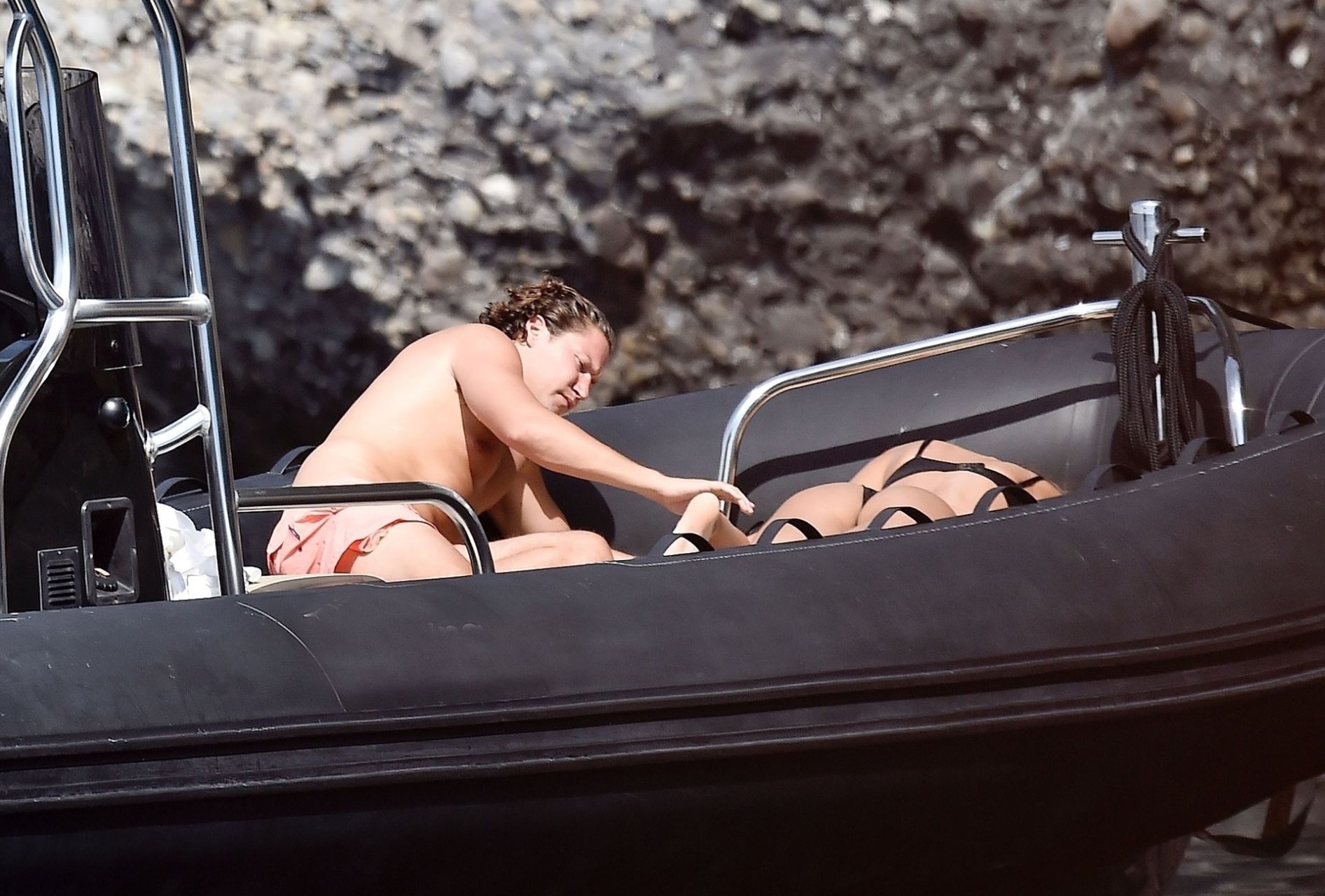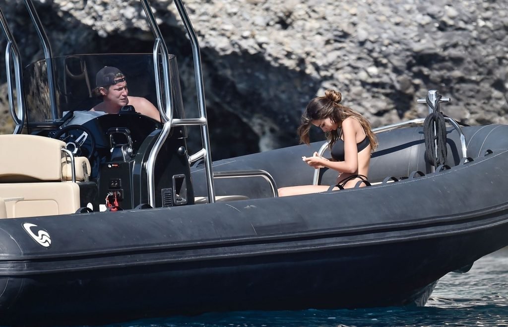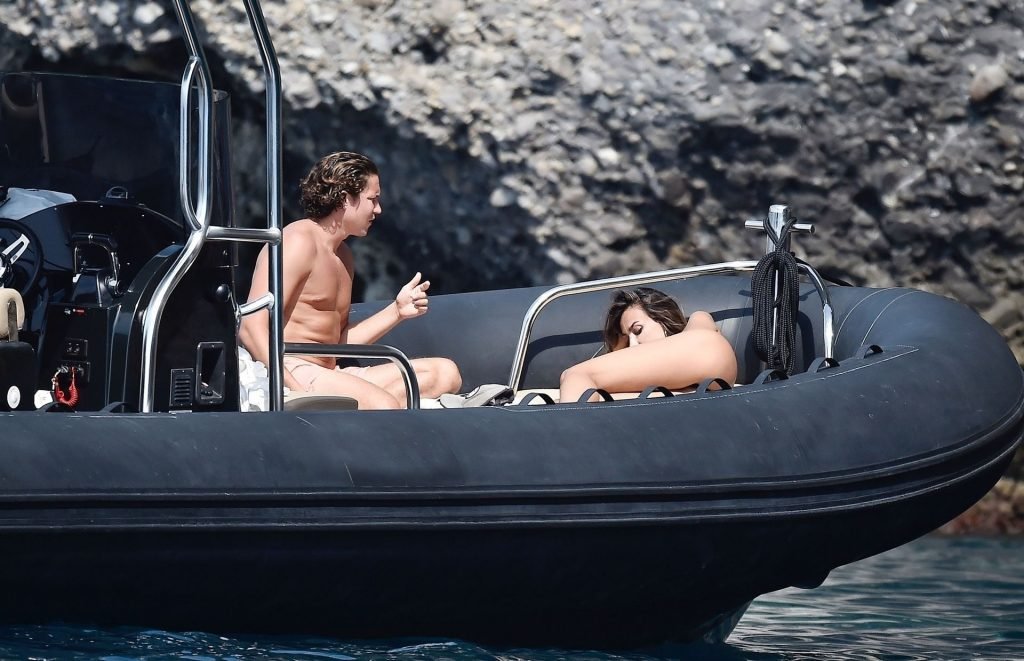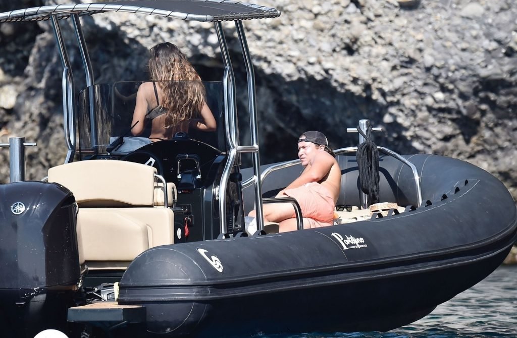 La coppia si gode il caldo sole italiano prendendo il sole sulla loro barca in mezzo al mare. La sexy Madalina ha mostrato il suo corpo ben tonico da spiaggia nel suo piccolo bikini nero mentre Vito era a torso nudo, entrambi abbronzandosi.