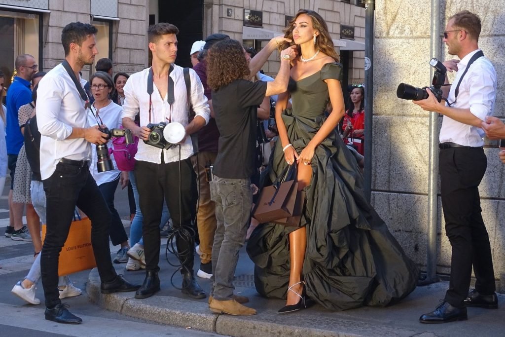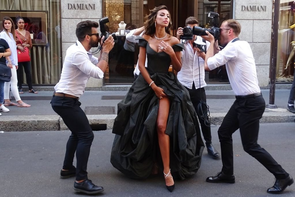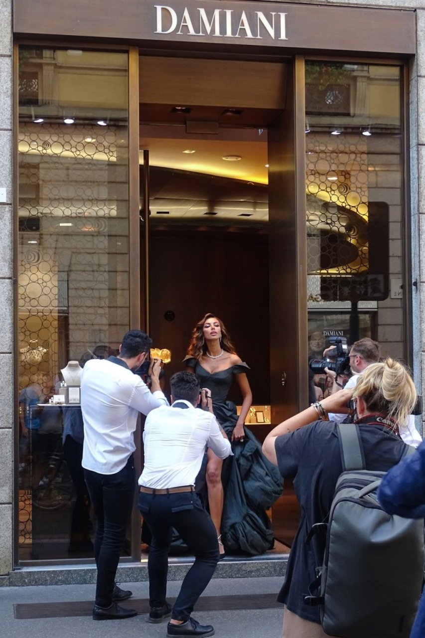 Modella e attrice rumena Madalina Diana Ghenea gira una pubblicità per “Damiani gioielleria” in via Monte Napoleone a Milano, 07/12/2019.
