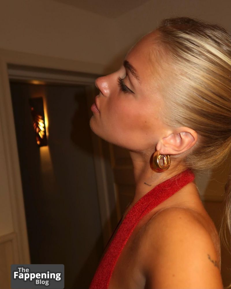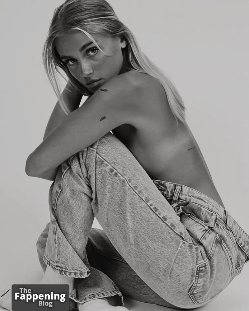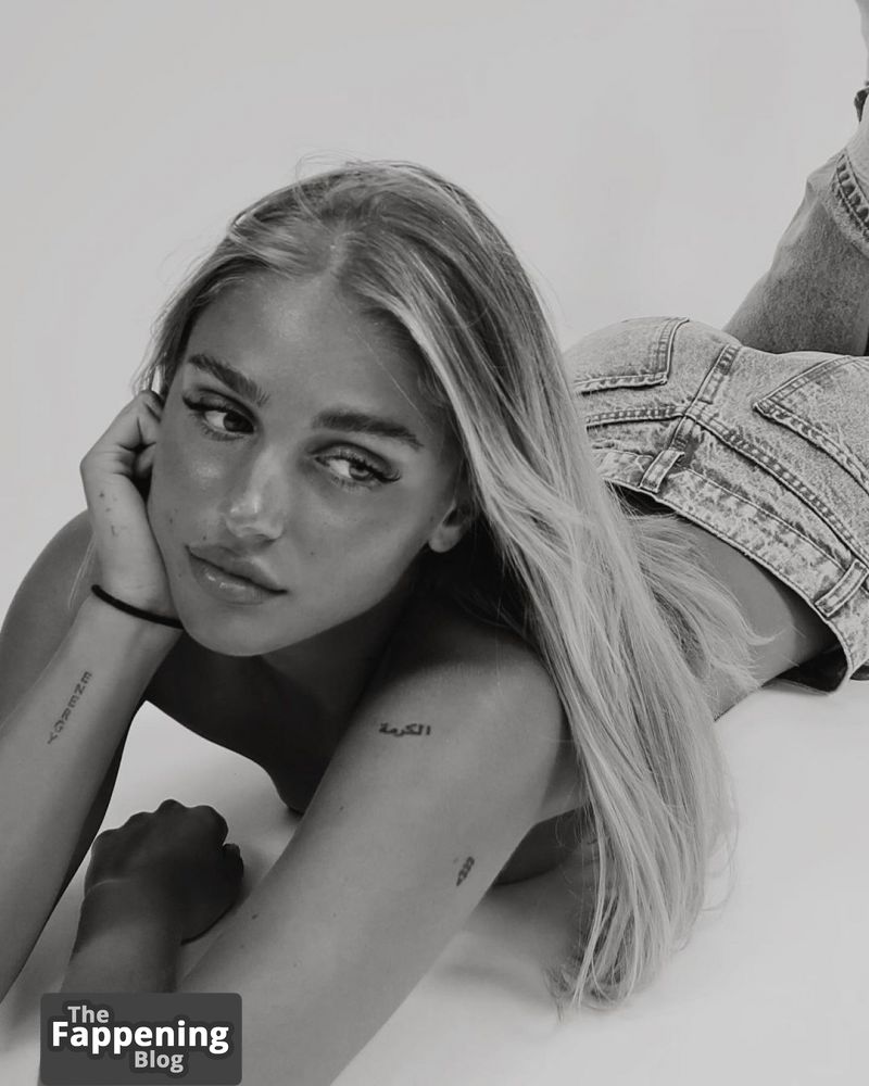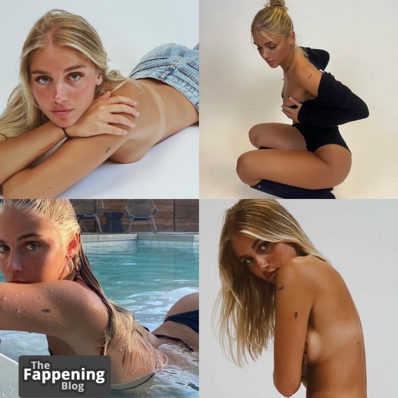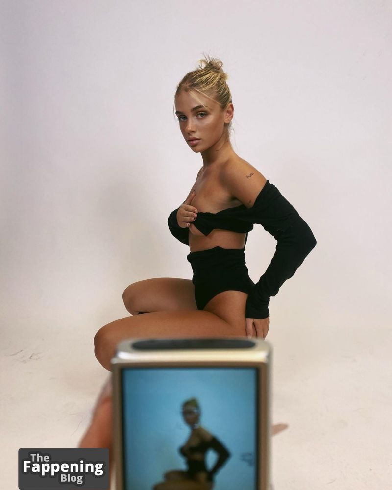 La collezione fotografica di Madelyn Francesca adotta un approccio audace ed esplicito, con scatti a seno nudo che mostrano il suo ipnotico décolleté e la scollatura senza reggiseno che accentua il suo generoso busto.